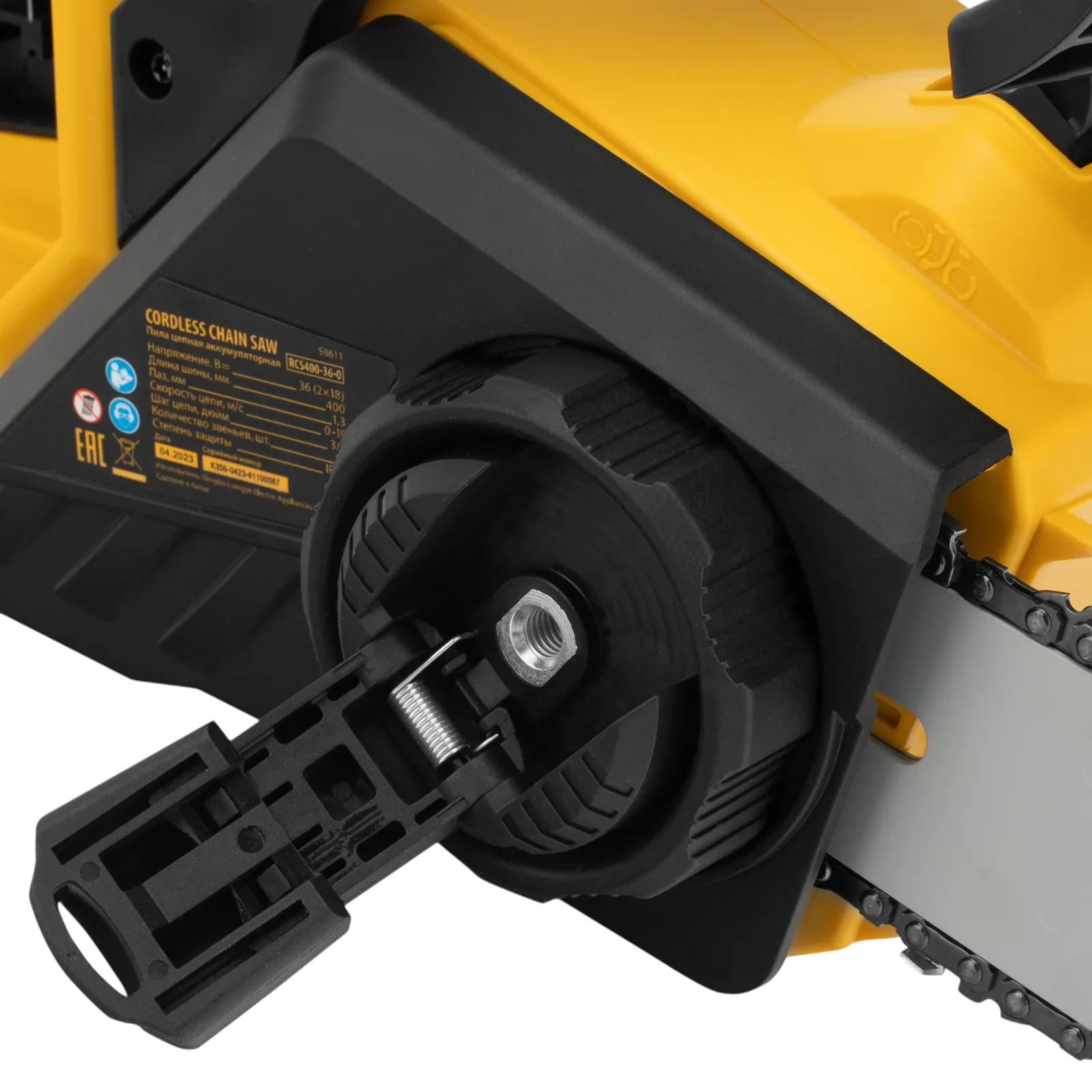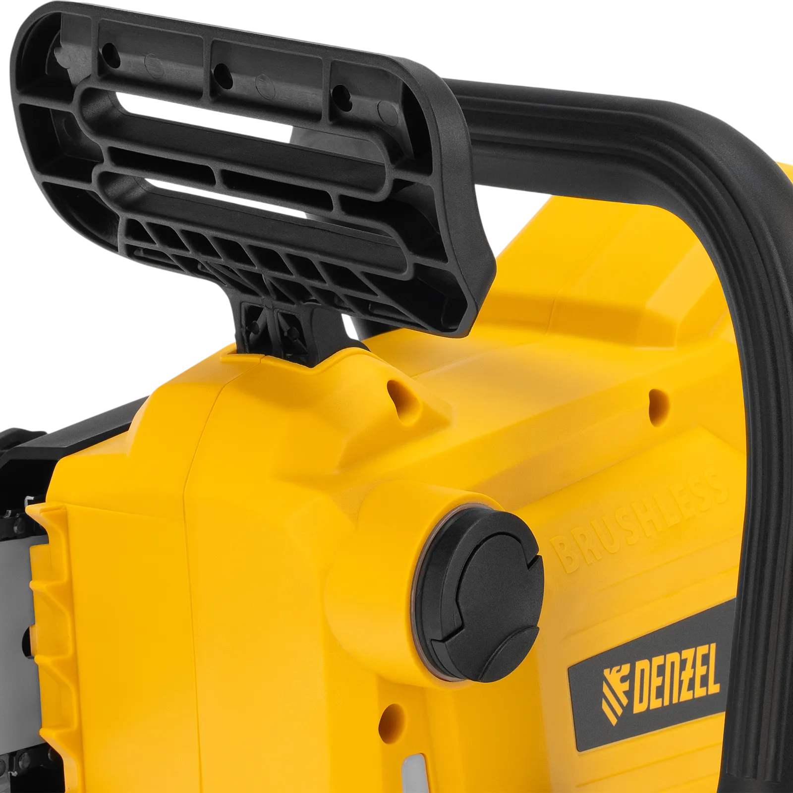 Аккумуляторная цепная пила Denzel RCS400-36-0 58611 с шиной длиной 400 мм работает от 2 Li-ion аккумуляторов общим напряжением 36 В и предназначена для валки деревьев, распила древесины, заготовки дров и выполнения прочих хозяйственных работ. Ультрасовременный бесщеточный двигатель обеспечивает вращение цепи со скоростью 19 м/c, превосходит щеточные аналоги по мощности, надежности и неприхотливости в обслуживании. Инструмент хорошо сбалансирован, при работе его не ведет в стороны, что позволяет выполнять более ровные и чистые надпилы, а также работать в ограниченном пространстве.