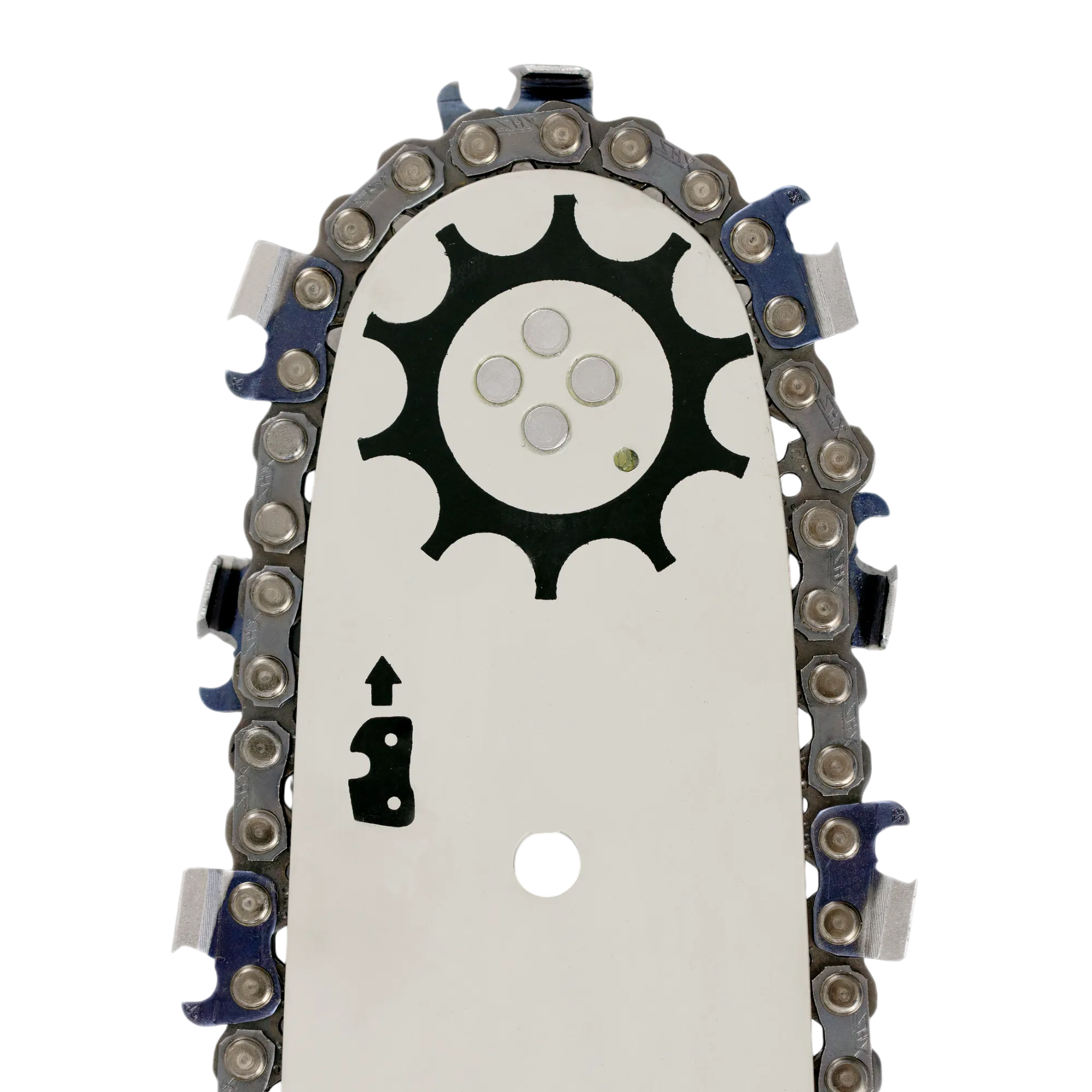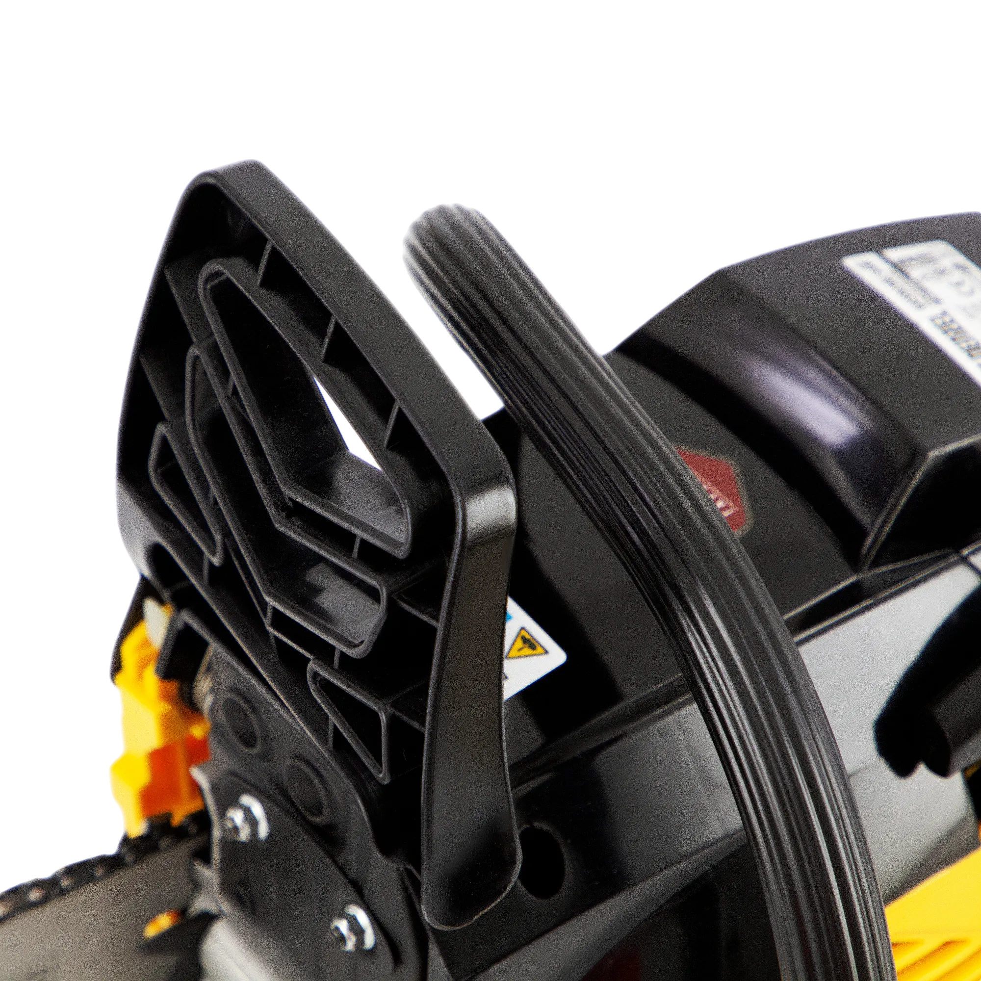 - Безопасность пользователя — специальный щиток и автоматический тормоз цепи уменьшают риск получения травм при отскоке пилы, также предусмотрена защита от случайного пуска.