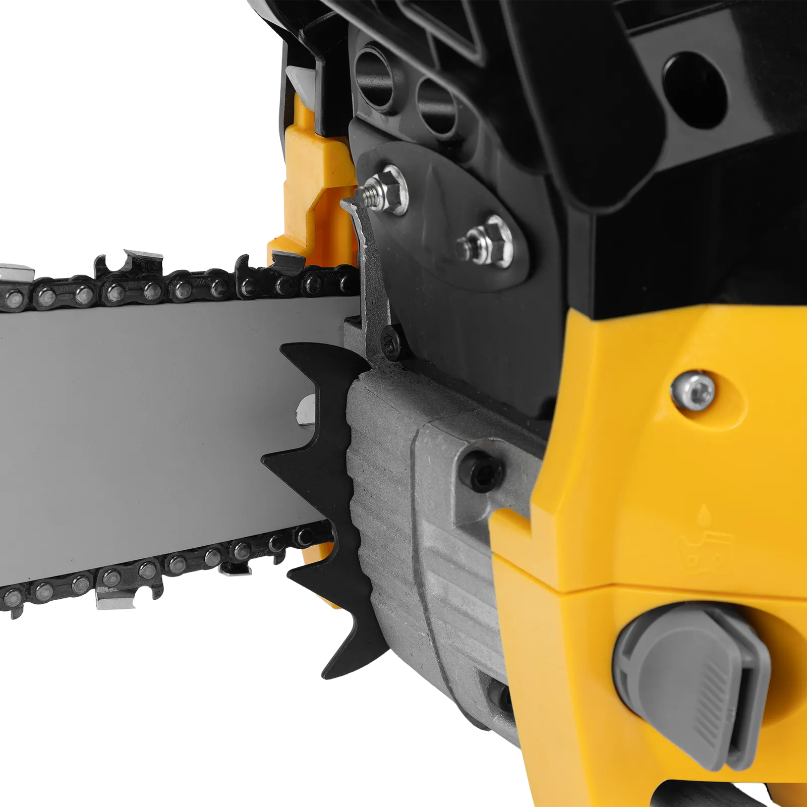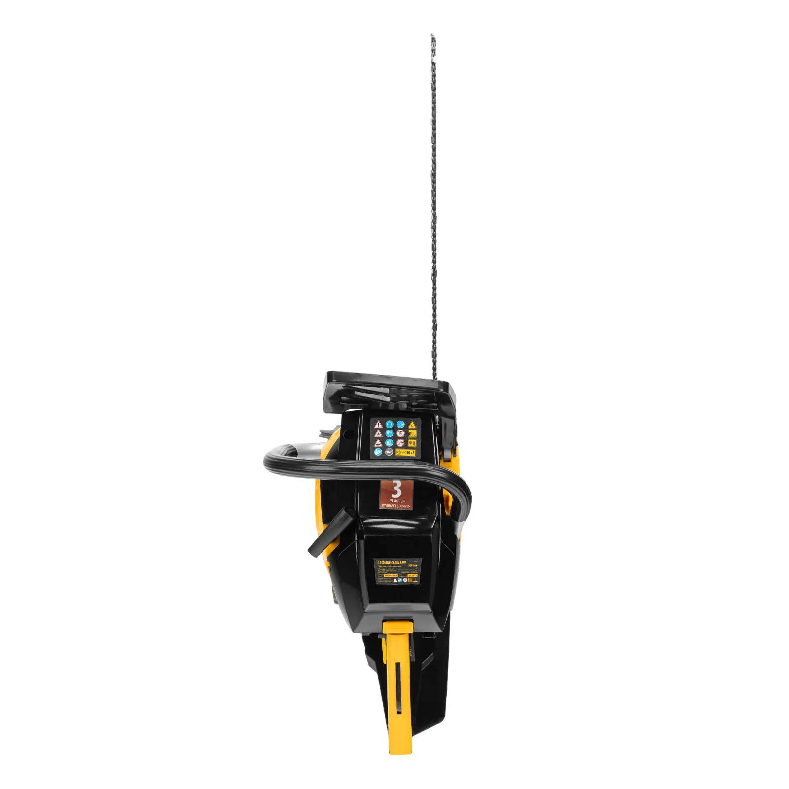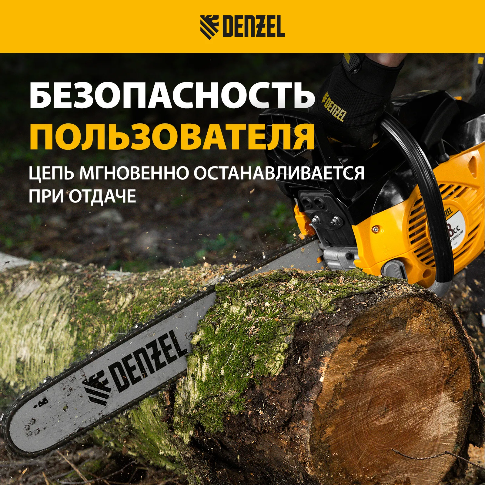- Безопасность пользователя — усиленный щиток и автоматический тормоз цепи уменьшают риск получения травм при отскоке пилы, также предусмотрена защита от случайного пуска.