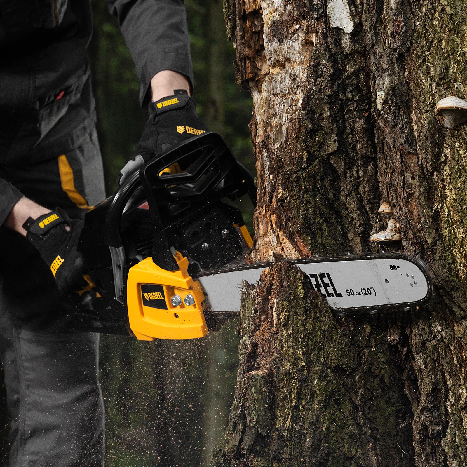 - Высококачественное исполнение — хромированный цилиндр, закаленный коленвал, облегченный поршень и свеча зажигания Bosch значительно повышают ресурс пилы.