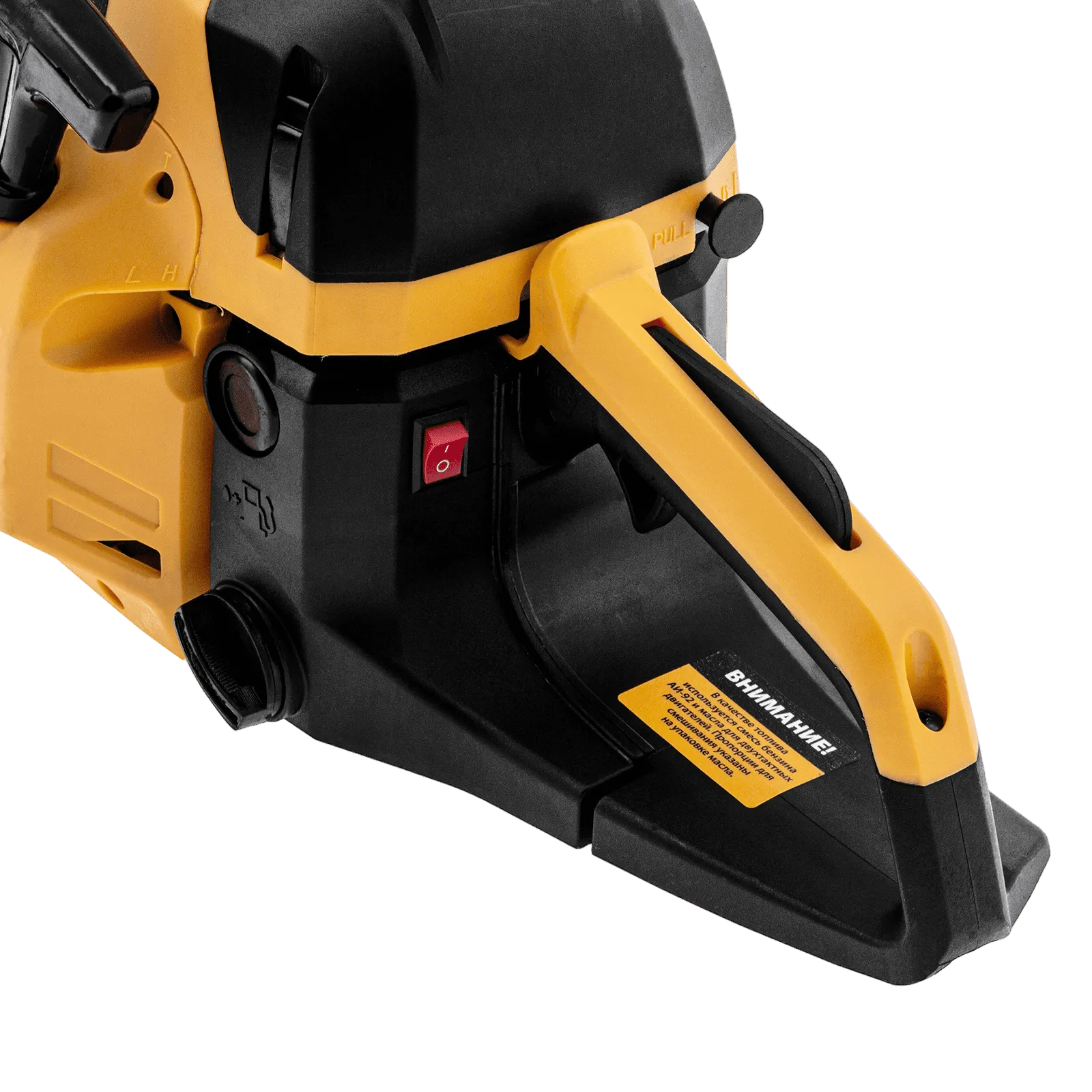 - Полный комплект поставки — инструменты для обслуживания, свечной ключ и емкость для приготовления топливной смеси прилагаются к пиле.
