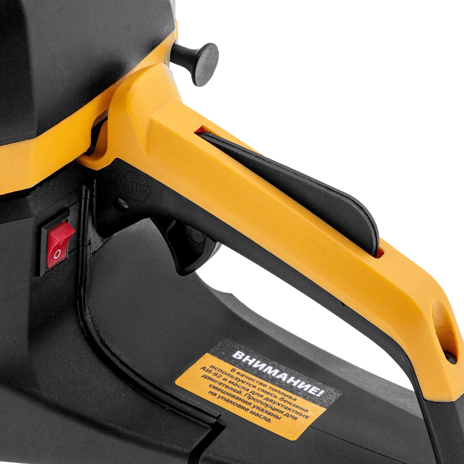 - Полный комплект поставки — инструменты для обслуживания, свечной ключ и емкость для приготовления топливной смеси прилагаются к пиле.