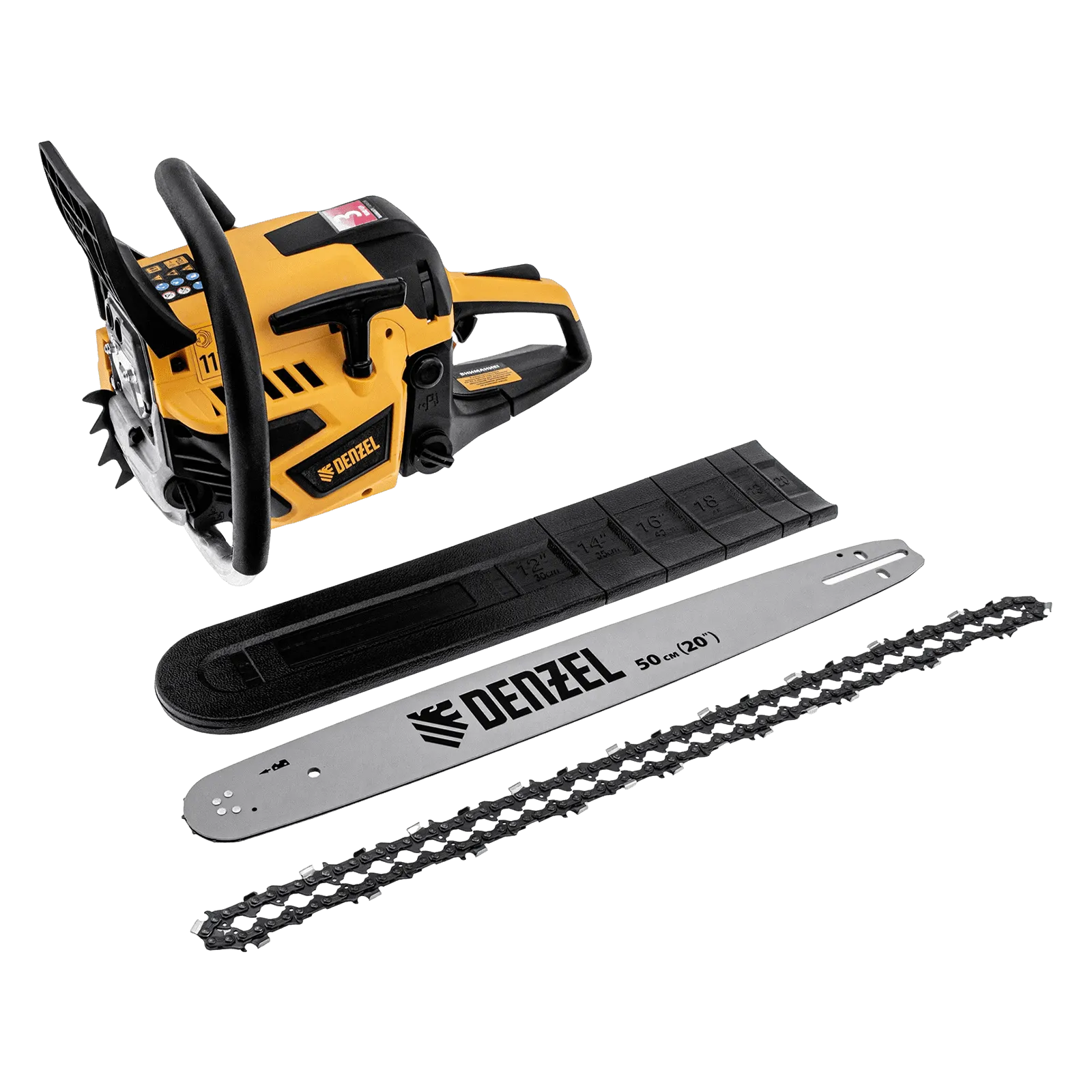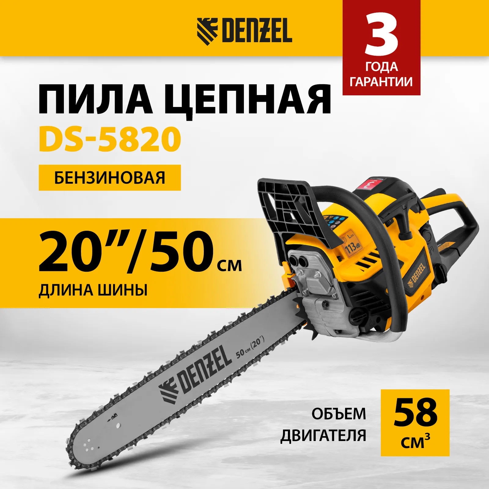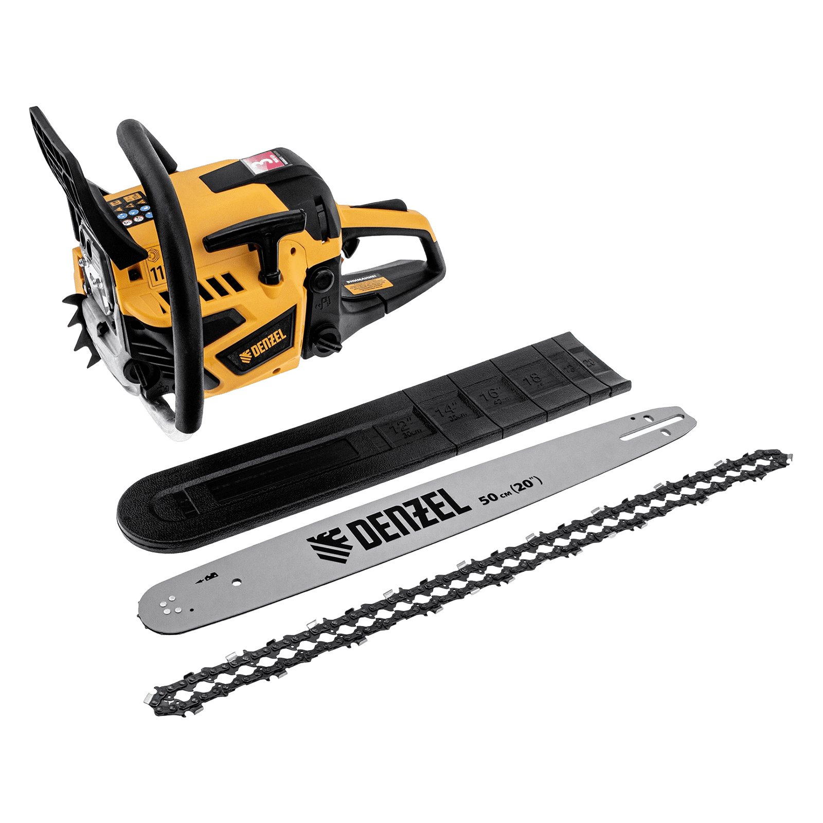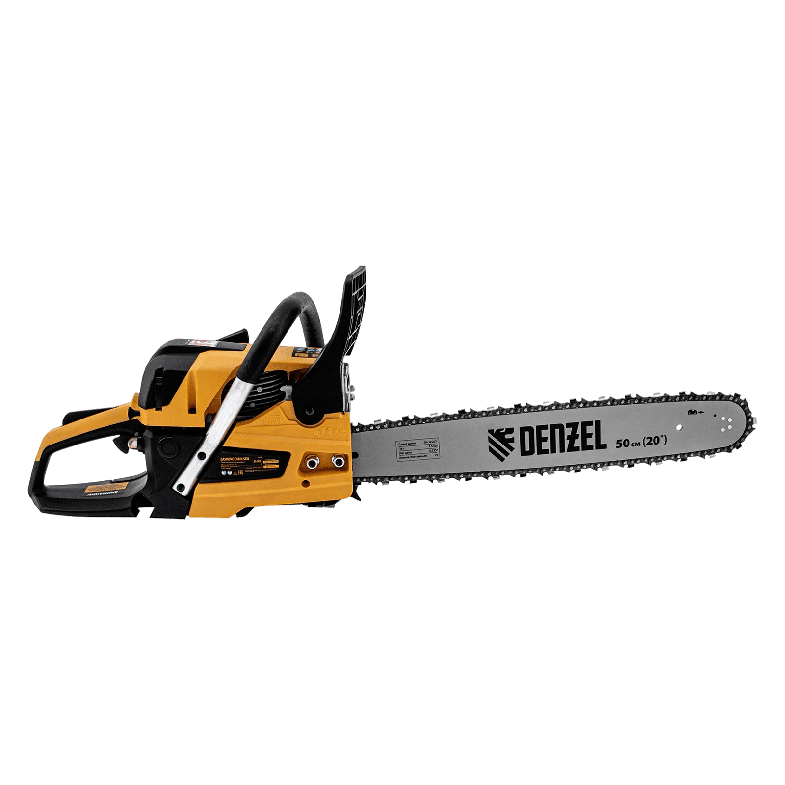 Пила цепная бензиновая Denzel DS-5820 95238 мощностью 3,6 л.с. оснащена двигателем объемом 58 см3 и поставляется с высокопроизводительной пильной гарнитурой: шиной длиной 50 см, цепью с 76 звеньями шагом 0,325" и пазом 1,5 мм. Используется для заготовки дров, распиловки древесины, при проведении ремонтных, строительных и садовых работ. Мощный и экономичный двухтактный двигатель позволяет эффективно и быстро решать поставленные задачи.