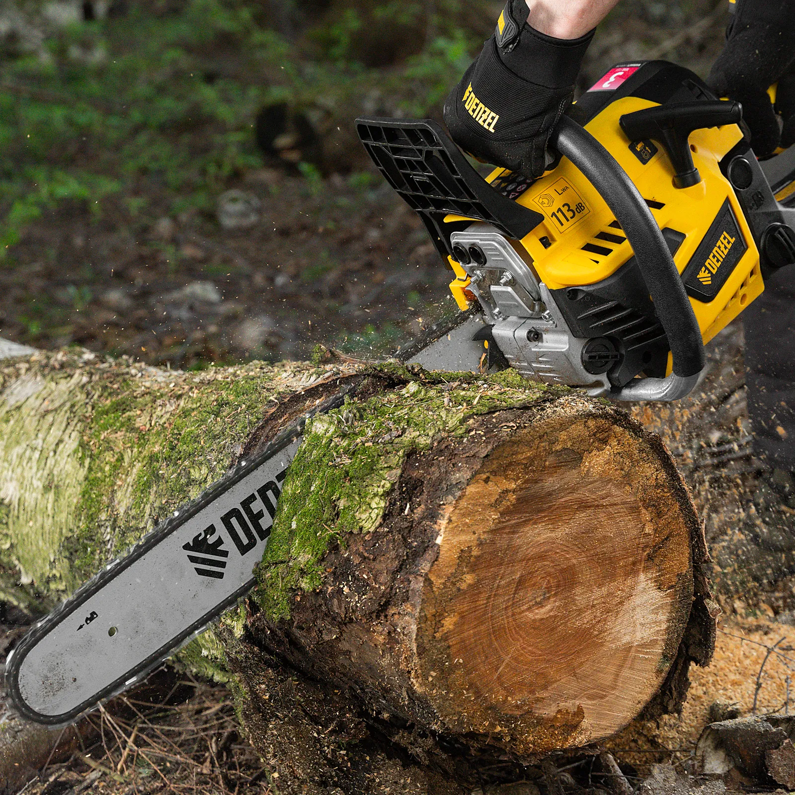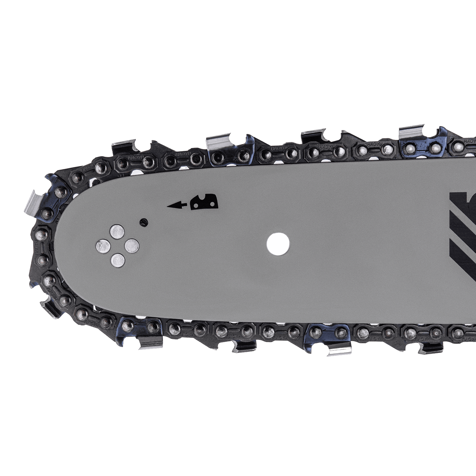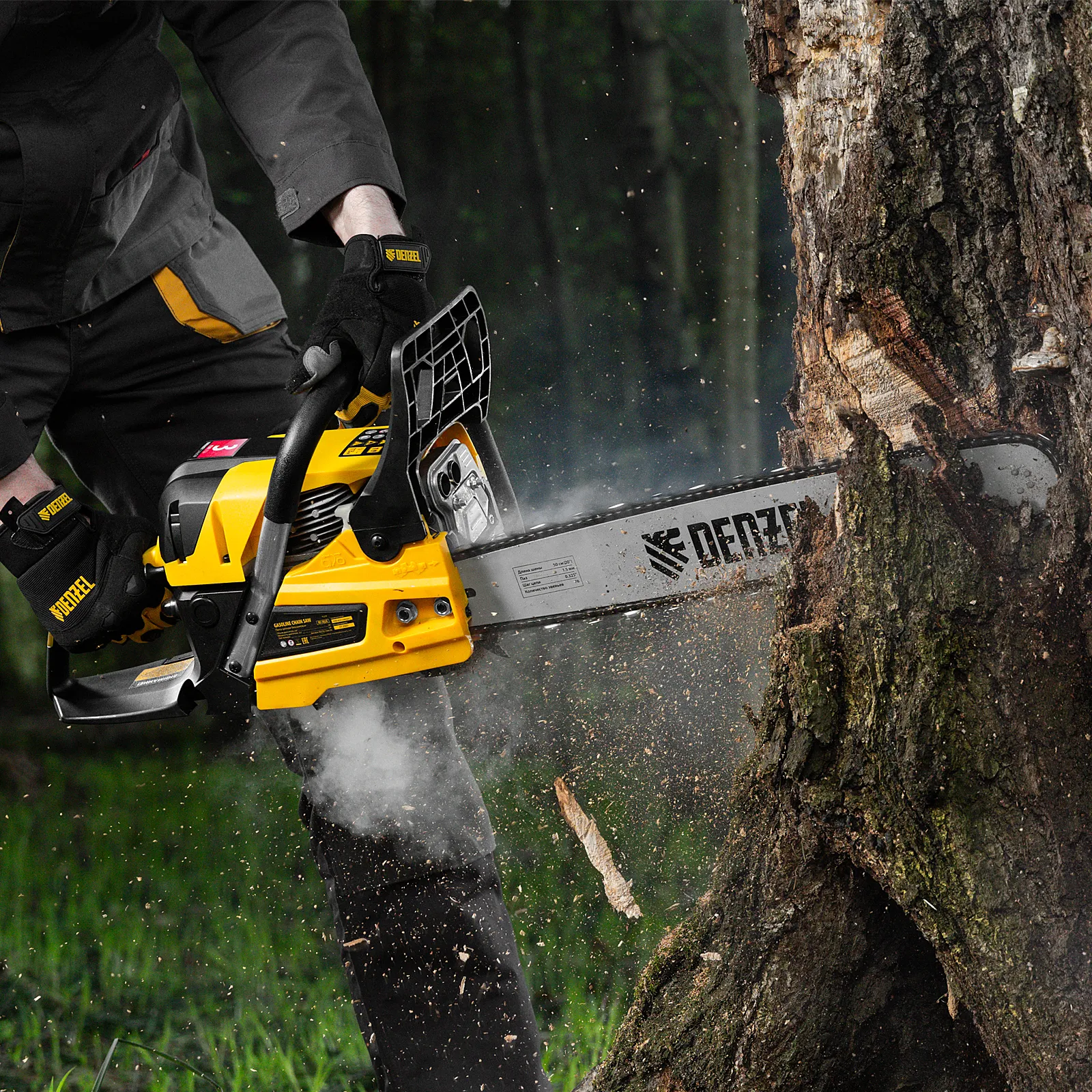 - Безопасная работа — блокировка от случайного запуска и моментальное срабатывание тормоза цепи при отскоке пилы снижают вероятность получения травм.