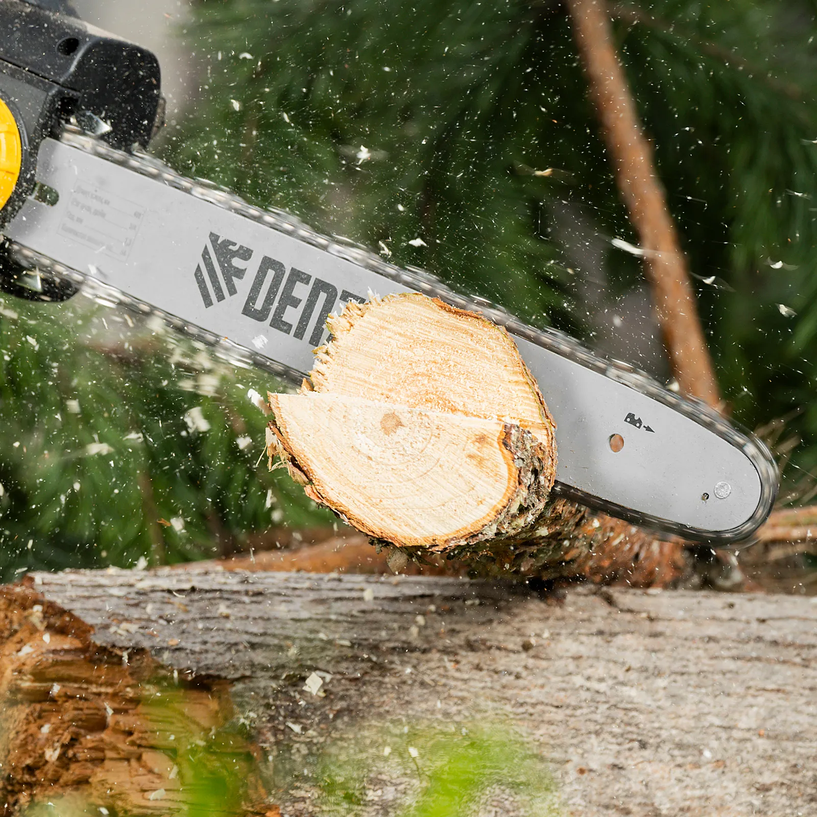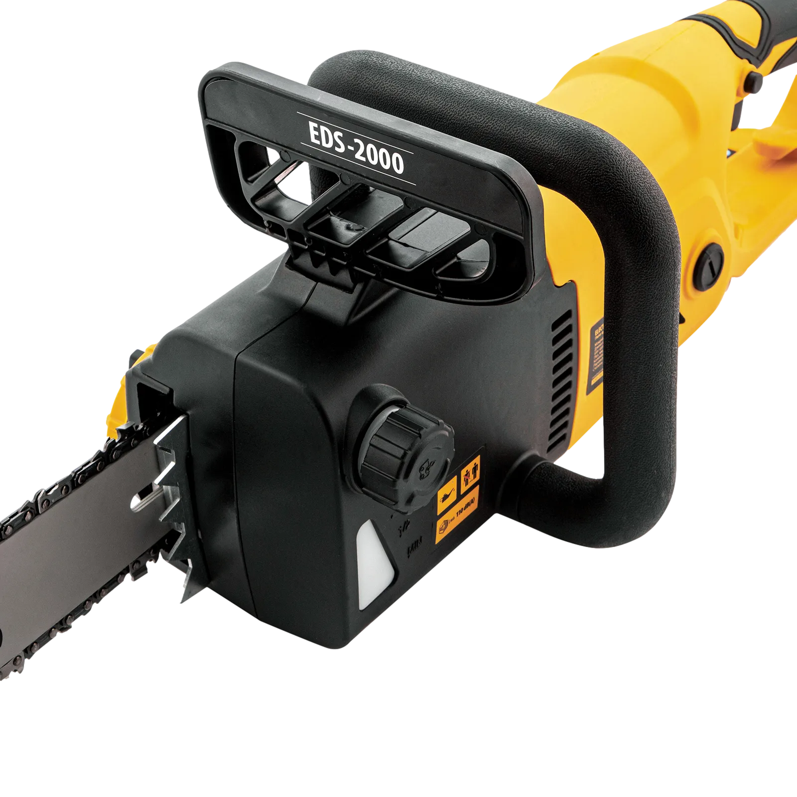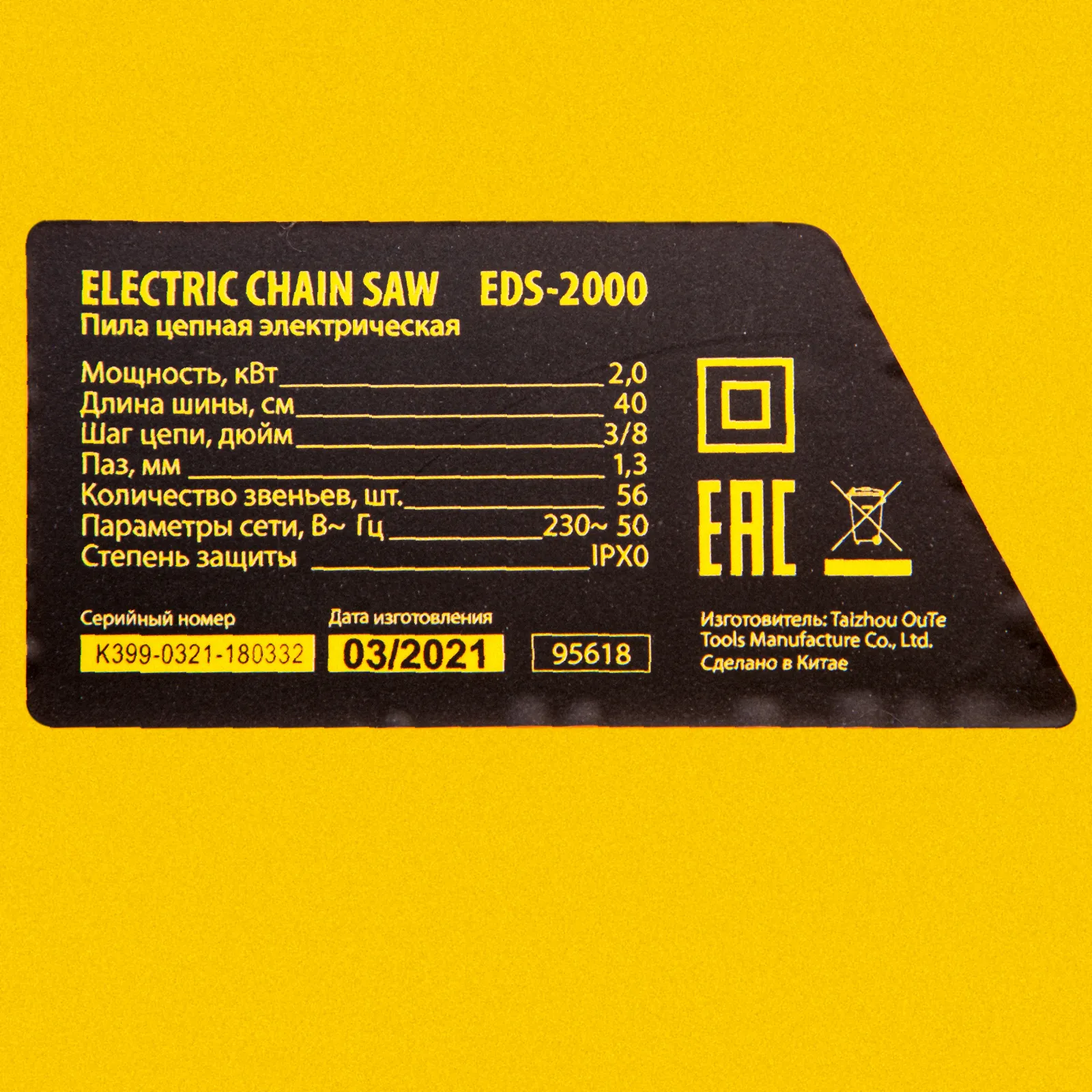 Электрическая цепная пила Denzel EDS-2000 95618 оснащена двигателем мощностью 2 кВт, поставляется вместе с шиной длиной 40 см (шаг 3/8", паз 1,3 мм, 56 звеньев). Инструмент обеспечивает выполнение таких задач, как ремонт, строительство, заготовка дров, облагораживание придомовой территории, работа в небольшой мастерской.