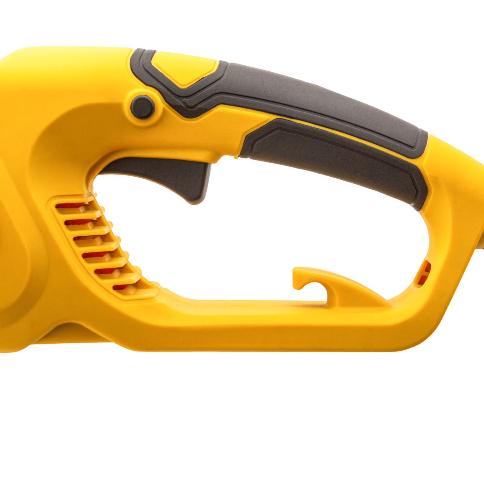 - Кожух 2 в 1 — двигатель закрыт от внешних повреждений и эффективно охлаждается благодаря вентиляционным отверстиям, не перегреваясь при длительной эксплуатации.