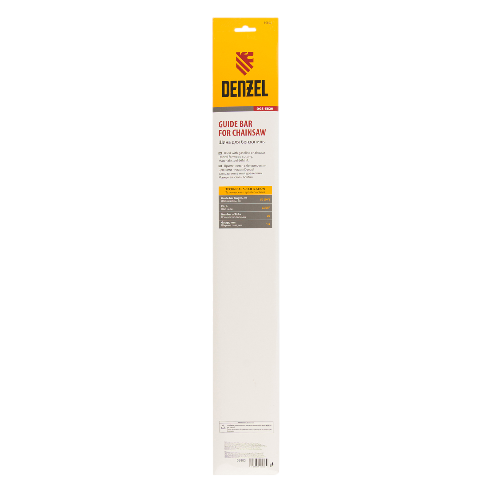Шина Denzel 59803 длиной 50 см (20″), с шириной паза 1,5 мм, предназначена для установки цепи с 76 звеньями и шагом 0,325″, совместима с бензопилой Denzel DGS-5820. Оптимальна для работы с древесиной мягких и средних пород. Позволяет использовать бензопилу для распиловки бревен, срезания веток, валки деревьев, формирования кровли дома, строительства веранды, бани и т. д.