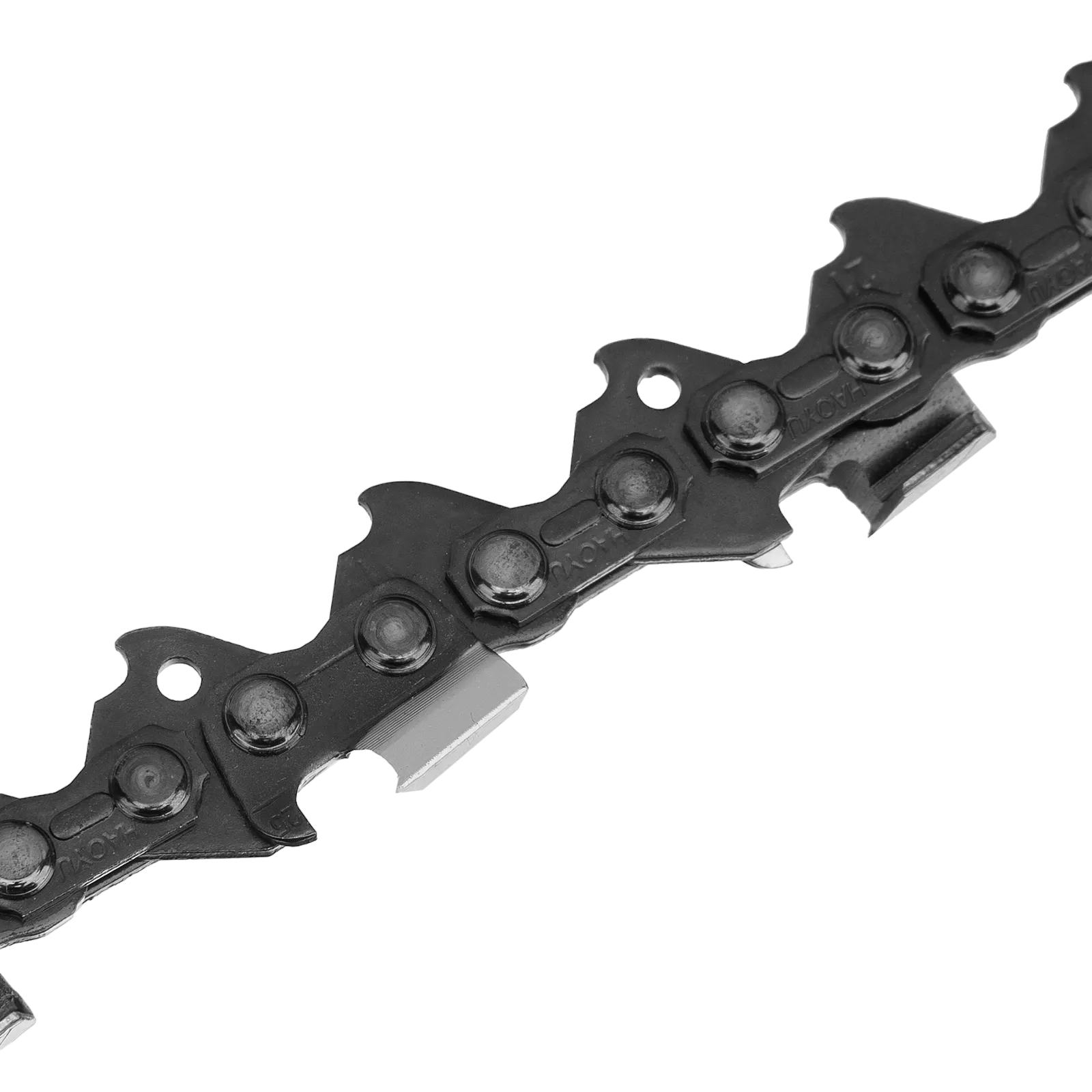 - Высокая прочность и долговечность — цепь из легированной стали выдерживает ударные нагрузки, устойчива к коррозии и может применяться даже для распиловки льда.