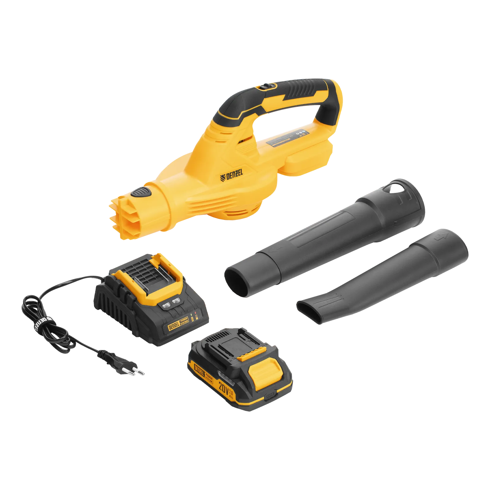 - Полная комплектация — воздуходувка поставляется с аккумулятором и зарядным устройством, поэтому полностью готова к эксплуатации.