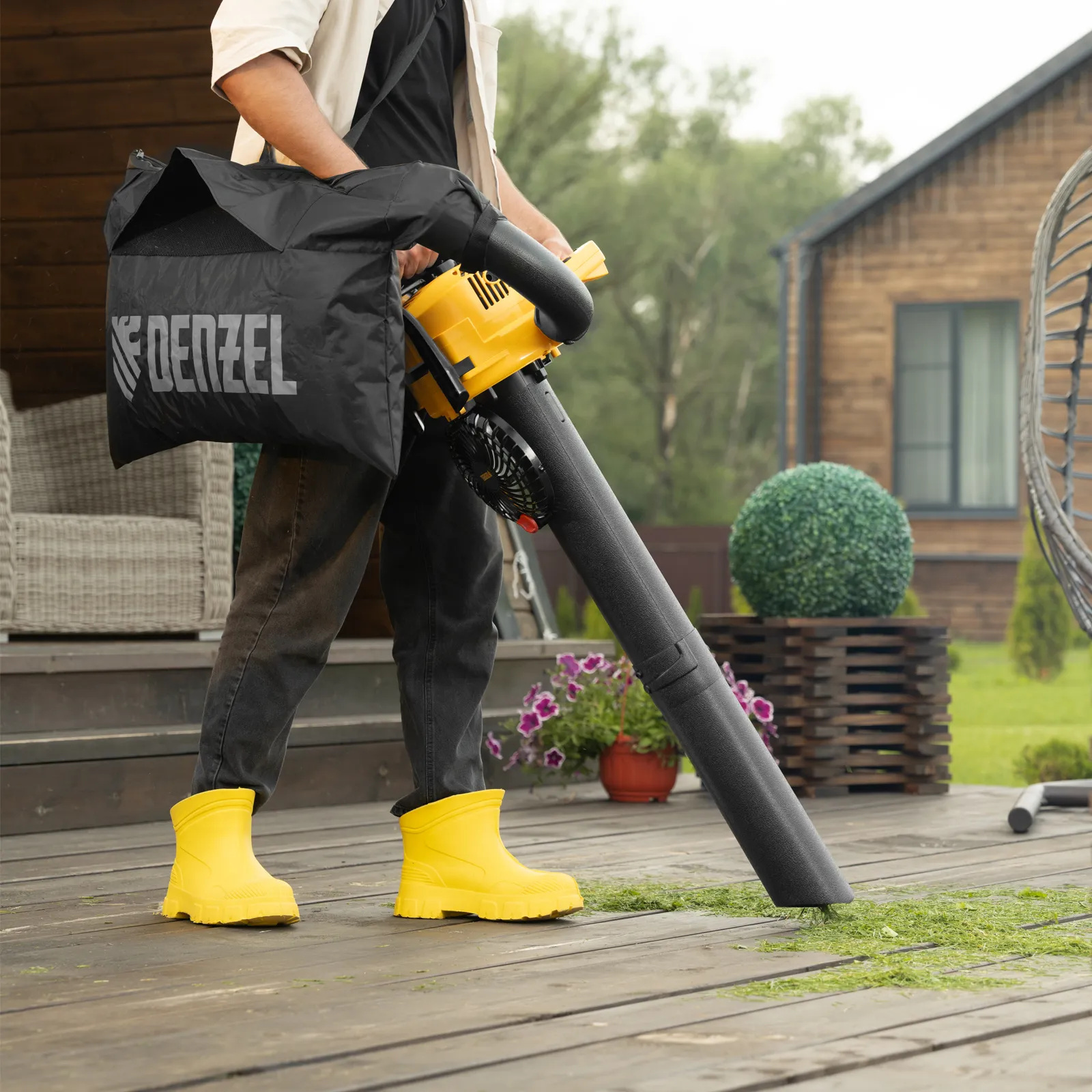 Бензиновая воздуходувка-пылесос Denzel GL-260 57902 с двухтактным двигателем объемом 26 см³ и мощностью 1 л.с. предназначена для очищения территории от листьев и скошенной травы. Скорость потока воздуха 245 км/ч обеспечивает высокую эффективность работы. Техника работает как в режиме обдува, так и всасывания: при этом мусор измельчается в мешок объемом 40 л, входящий в комплект поставки. Такое решение избавляет от необходимости вручную собирать листву и траву после уборки.