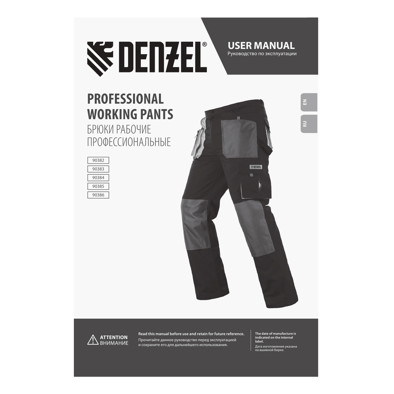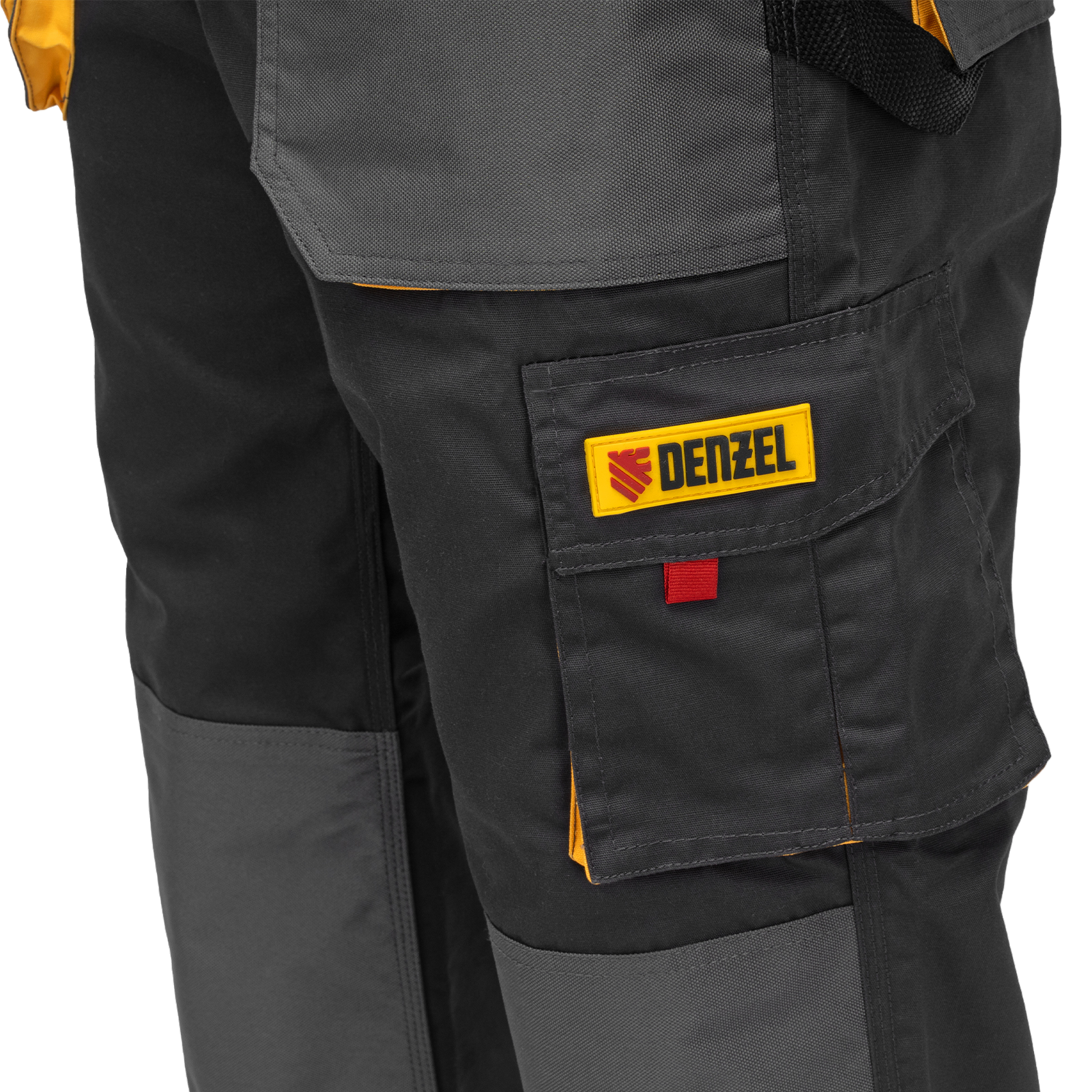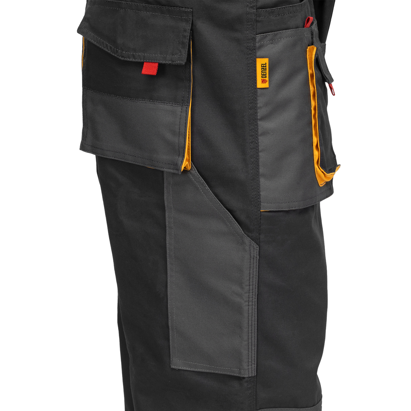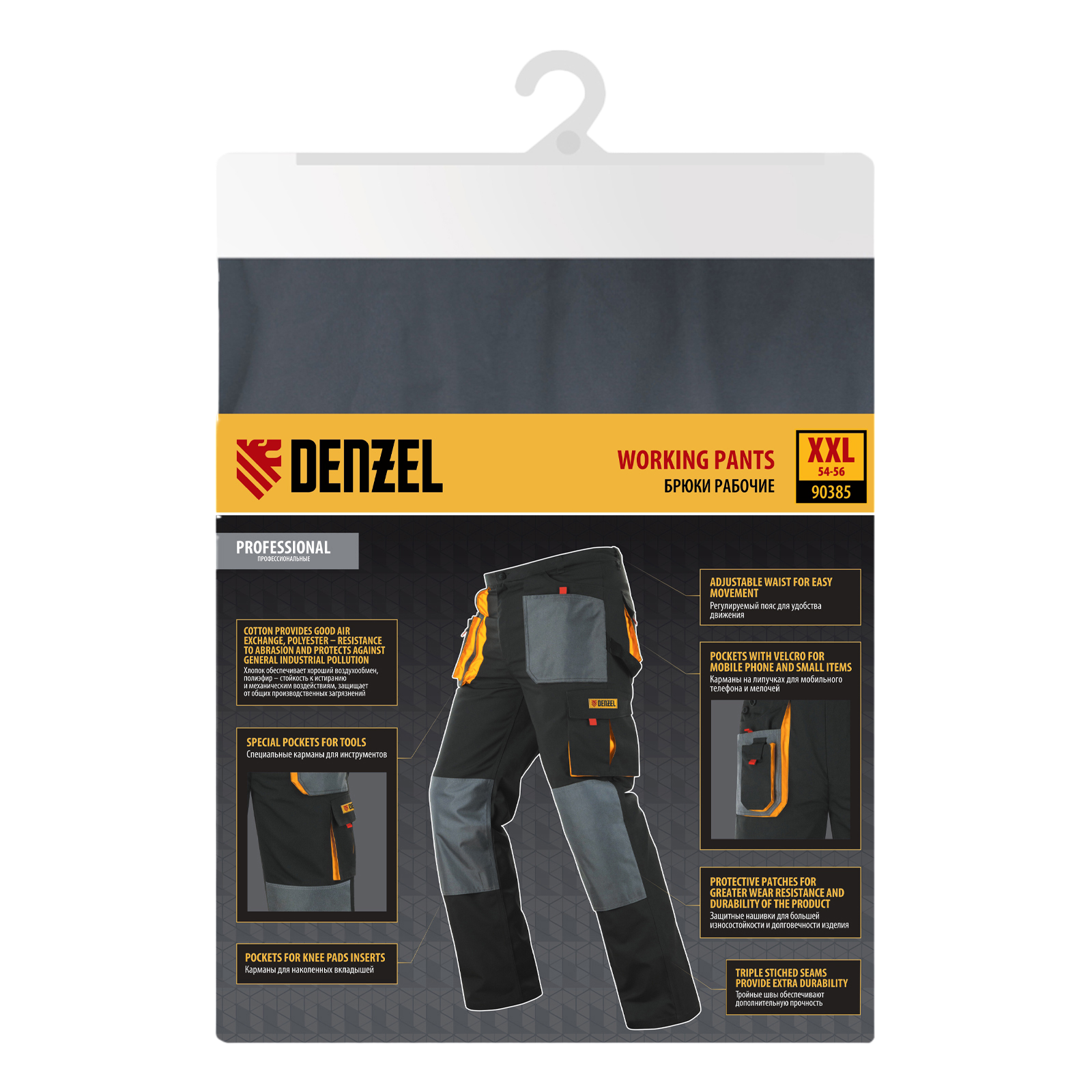 Рабочие брюки Denzel 90385 размера XXL рассчитаны на рост 188-191 см и используются для выполнения профессиональных строительных, ремонтных, сантехнических и производственных работ в теплое время года или в отапливаемом помещении. Защищают пользователя от общих производственных загрязнений, нетоксичной пыли, ветра и незначительных механических воздействий. Изготовлены из ткани плотностью 260 г/м² (65% полиэстер, 35% хлопок). За счет наличия хлопковых волокон в составе ткань хорошо пропускает воздух и приятна на теле, полиэстер обеспечивает устойчивость к истиранию. Брюки выполнены в практичном темно-сером цвете.