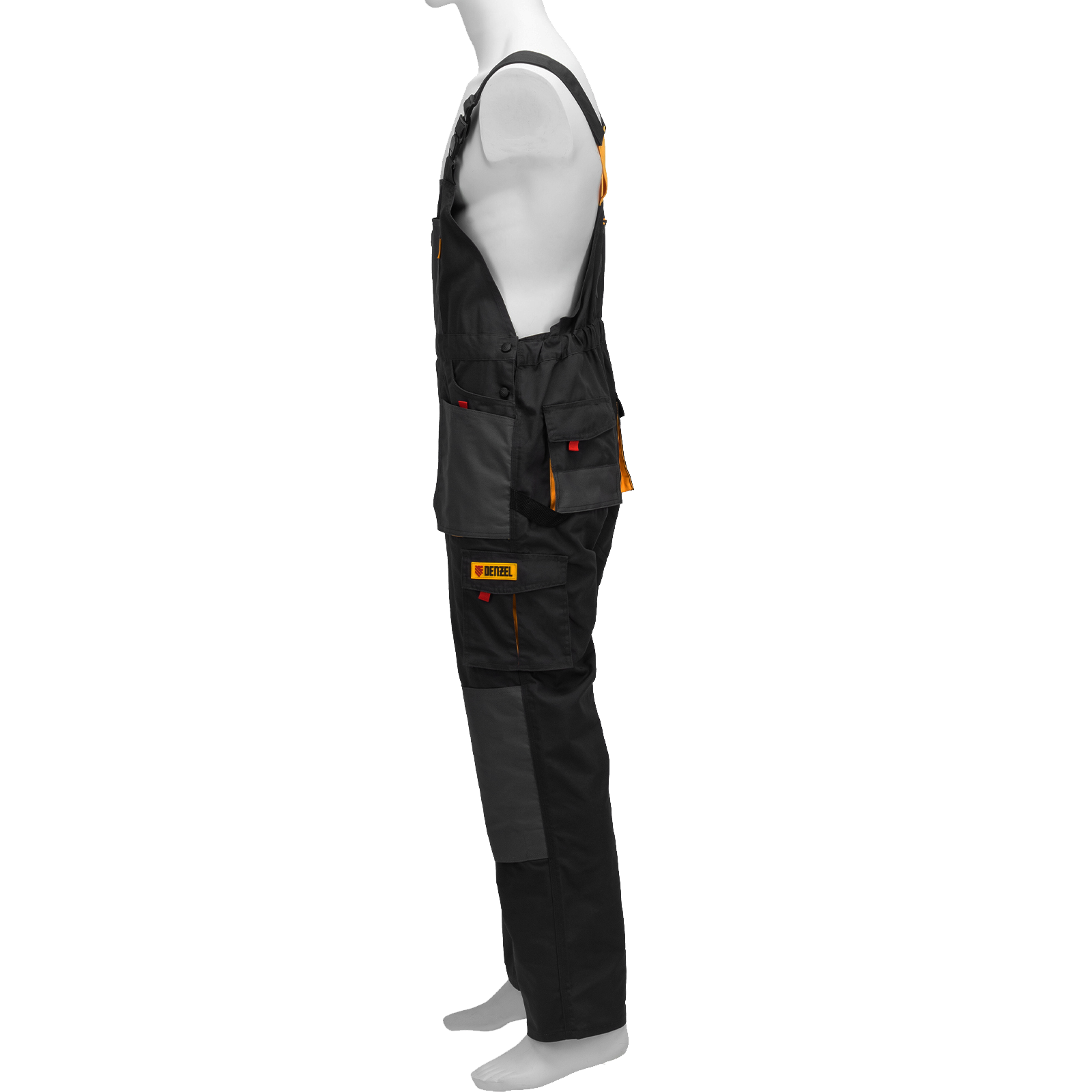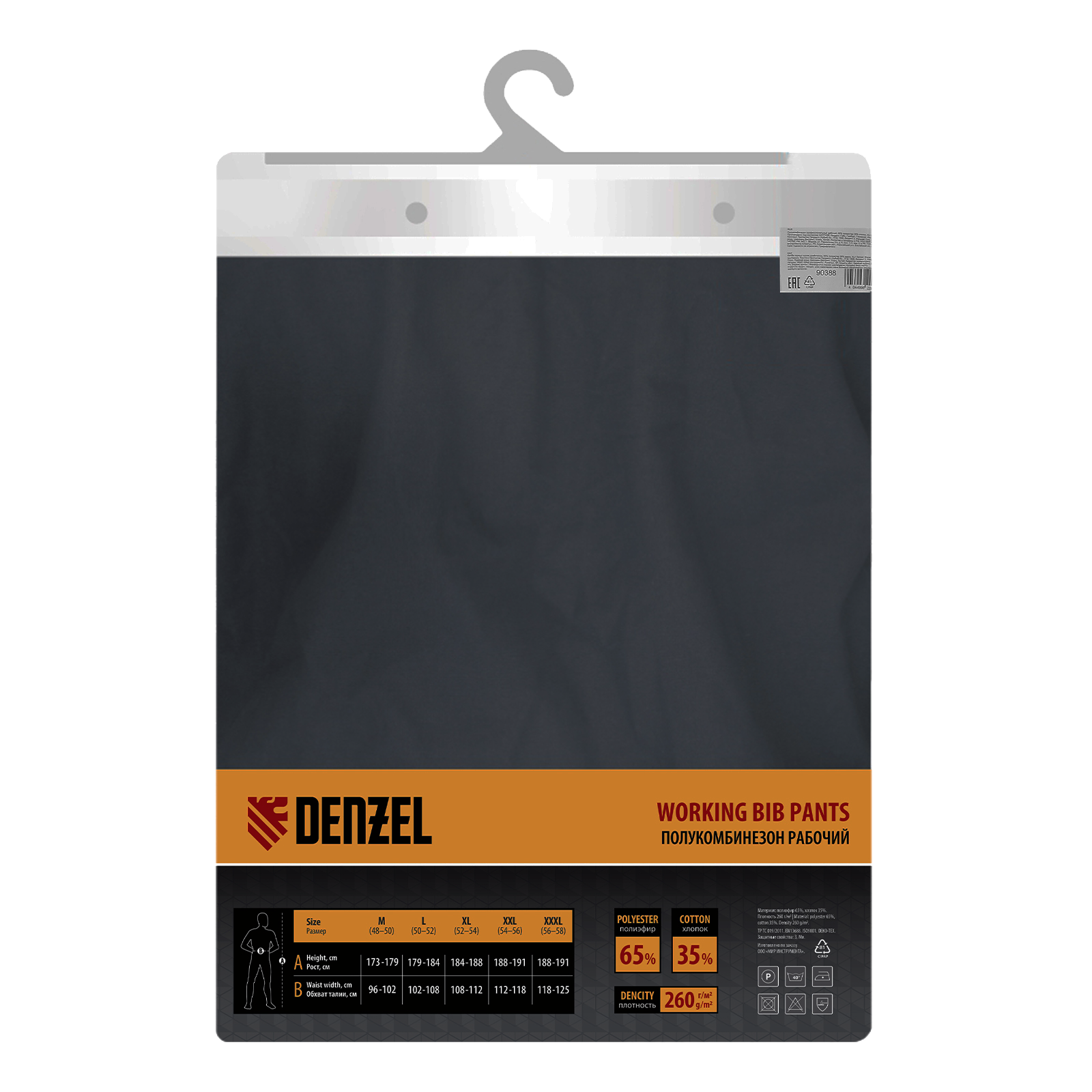 Рабочий полукомбинезон Denzel 90388 размера L рассчитан на рост 179-184 см и используется для выполнения профессиональных строительных, ремонтных и производственных работ в теплое время года или в отапливаемом помещении. Защищает пользователя от общих производственных загрязнений, нетоксичной пыли, ветра и незначительных механических воздействий. Изготовлен из ткани плотностью 260 г/м² (65% полиэстер, 35% хлопок). За счет наличия хлопковых волокон в составе ткань хорошо пропускает воздух и приятна на теле, полиэстер обеспечивает устойчивость к истиранию. Полукомбинезон выполнен в практичном темно-сером цвете.