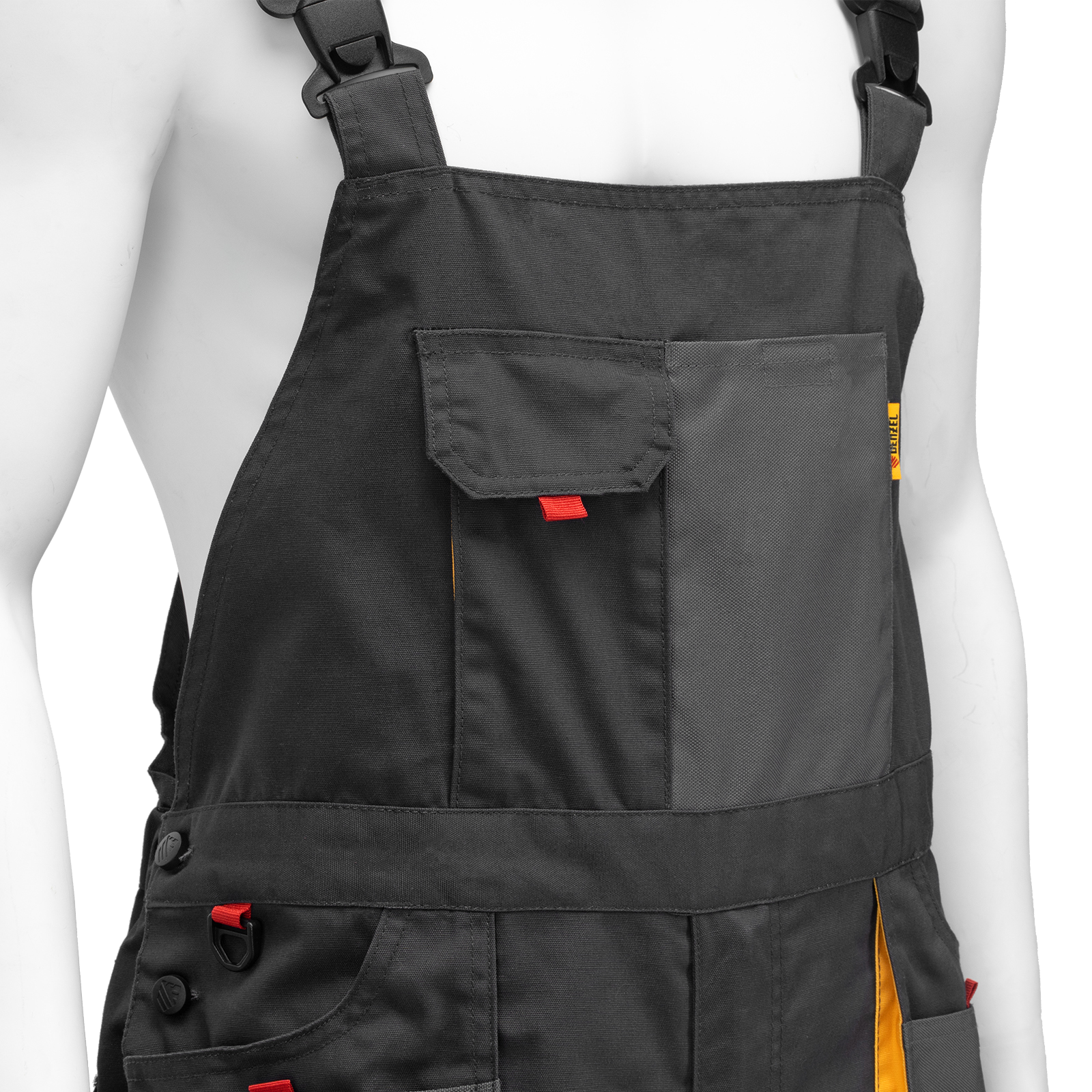 - 11 карманов — полукомбинезон снабжен специальными отделениями для инструментов, а в карманах с «липучками» можно разместить мобильный телефон, крепеж и необходимые мелочи.