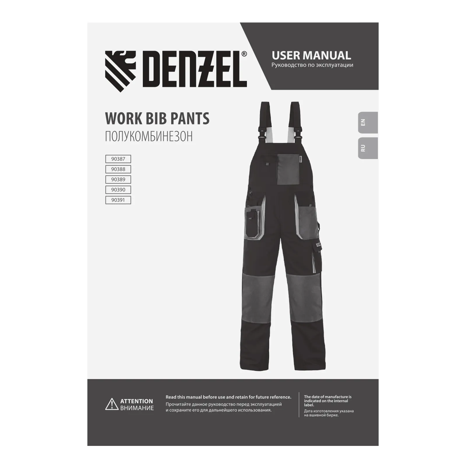 Рабочий полукомбинезон Denzel 90391 размера XXXL рассчитан на рост 188-191 см и используется для выполнения профессиональных строительных, ремонтных и производственных работ в теплое время года или в отапливаемом помещении. Защищает пользователя от общих производственных загрязнений, нетоксичной пыли, ветра и незначительных механических воздействий. Изготовлен из ткани плотностью 260 г/м² (65% полиэфир, 35% хлопок). За счет наличия хлопковых волокон в составе ткань хорошо пропускает воздух и приятна на теле, полиэфир обеспечивает устойчивость к истиранию. Полукомбинезон выполнен в практичном темно-сером цвете.