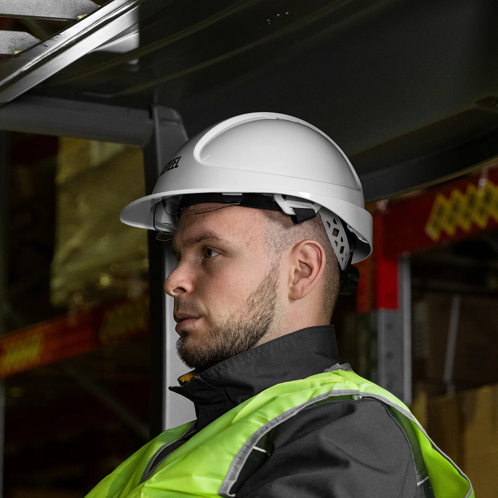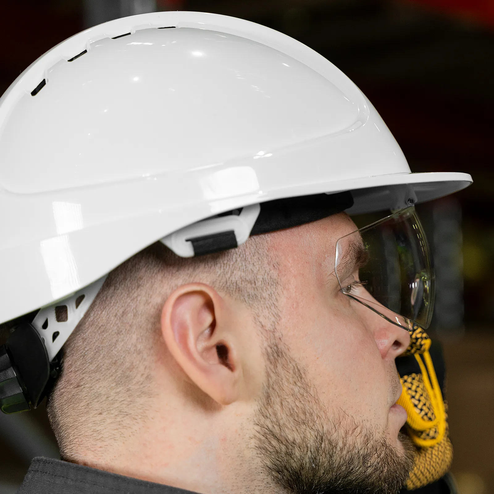 - Простой уход — гладкая, глянцевая поверхность каски препятствует оседанию пыли и легко чистится.