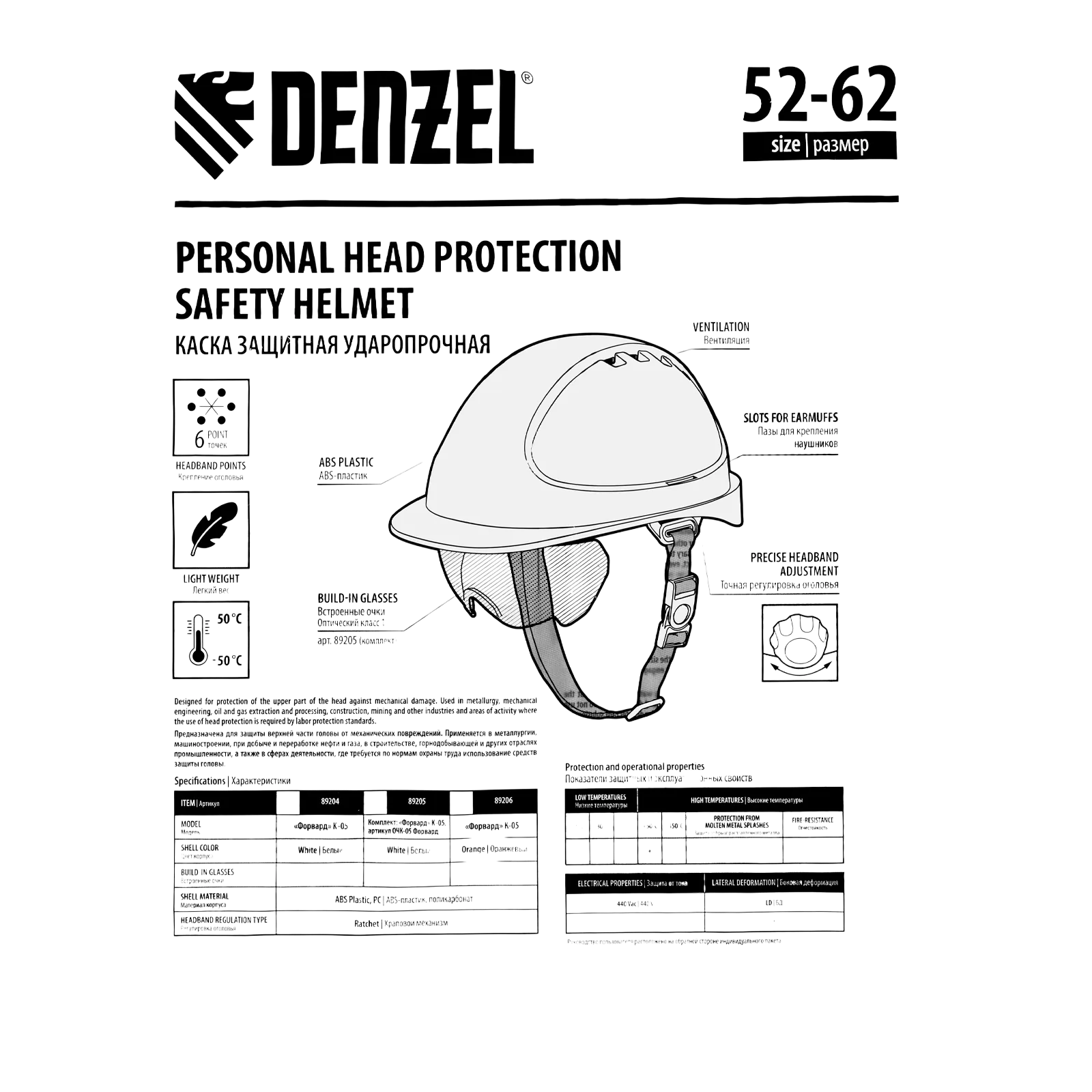 - Возможность использования в любое время года — каска выдерживает температуру от -50 до +50 °C.