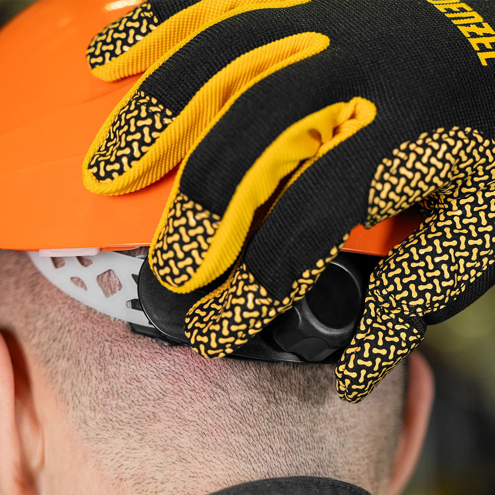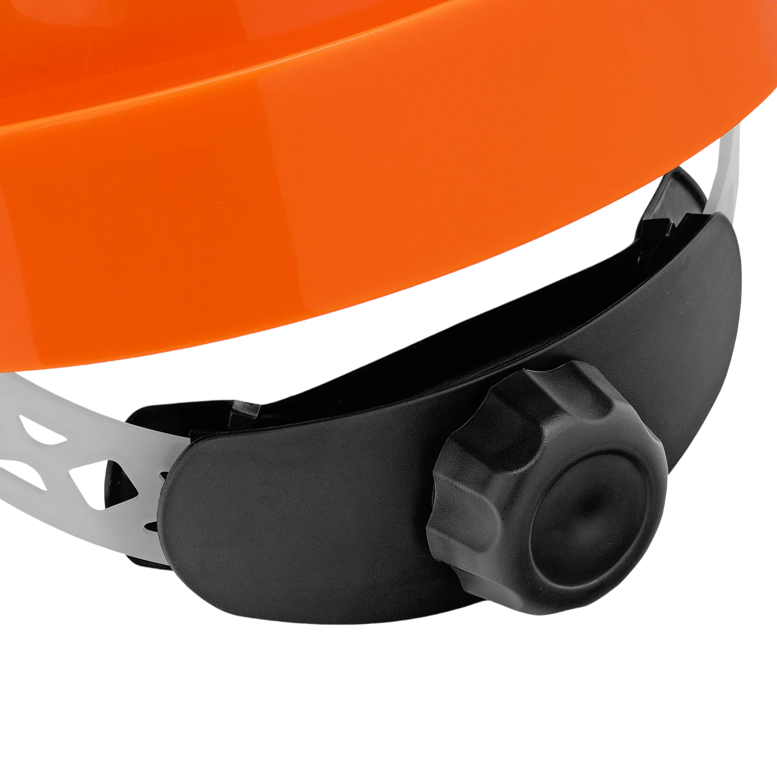 - Удобная посадка — наголовное крепление с храповиком позволяет плавно подгонять и точно регулировать размер оголовья от 52 до 62 см, каска комфортно прилегает к затылочной части головы за счет мягкой эластичной вставки.