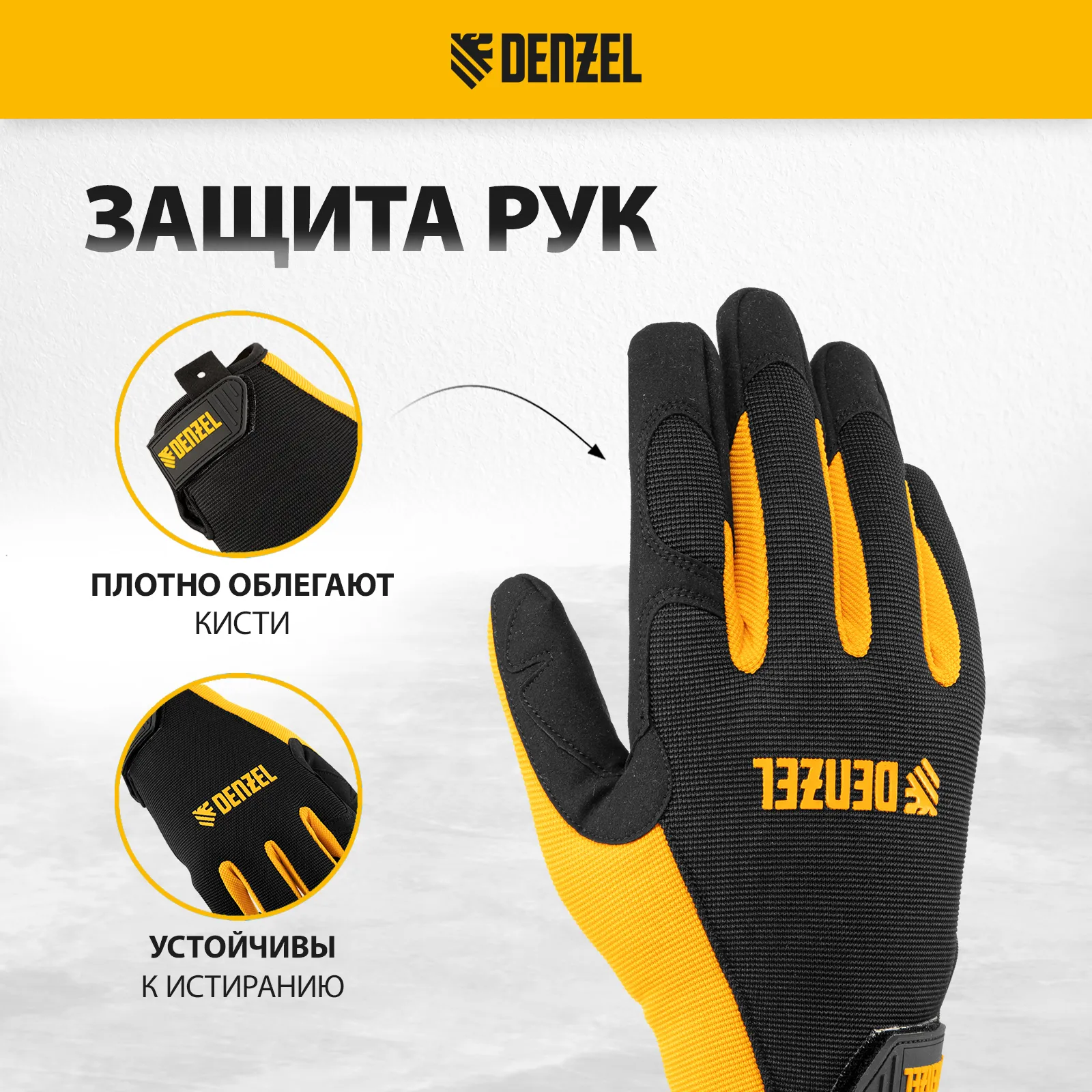 Универсальные перчатки Denzel 67993 размера 9, с манжетами на «липучке», используются для работы со слесарным инструментом. Надежно защищают кожу рук от царапин и мозолей. Пригодятся в мастерской, дома или в гараже.