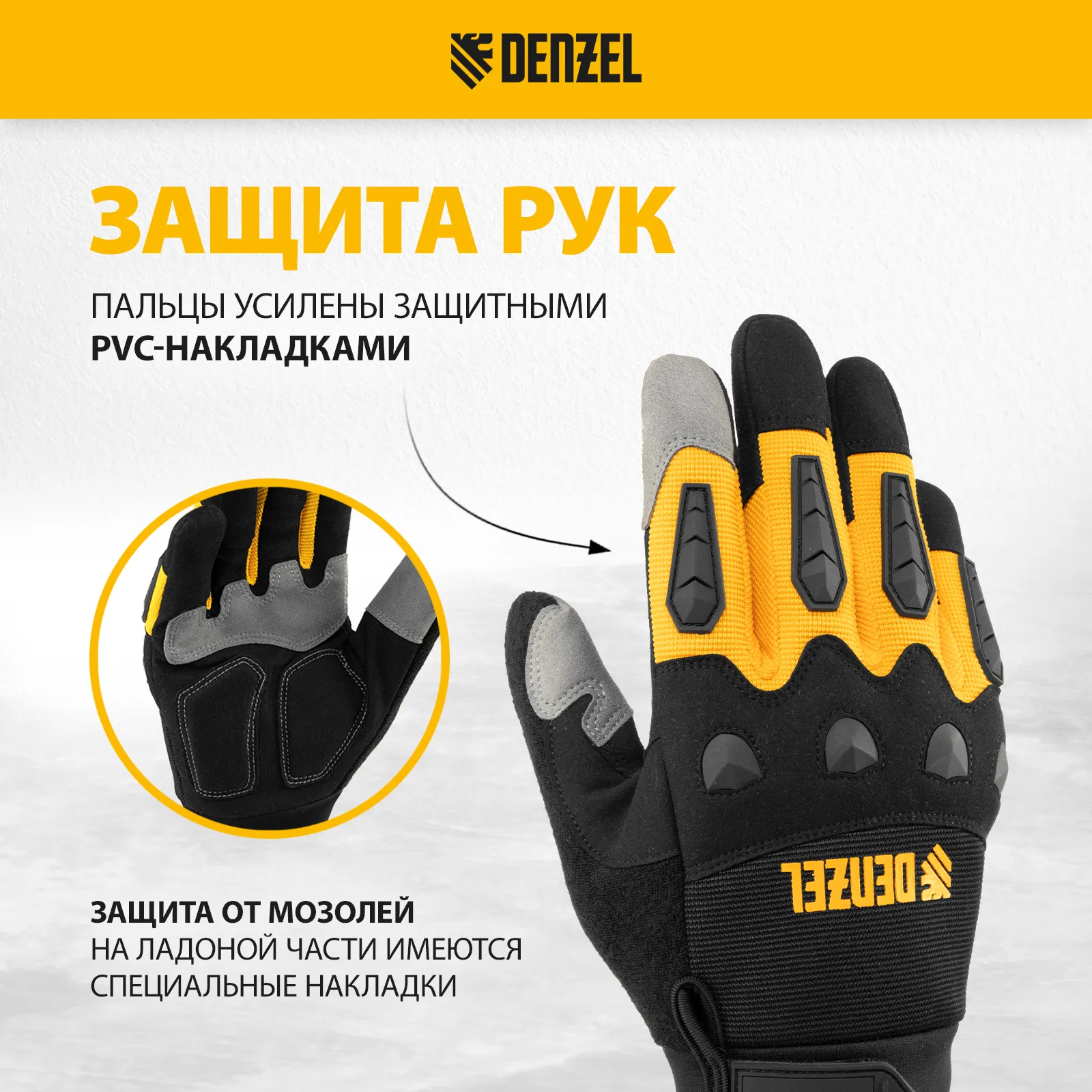 Универсальные усиленные перчатки Denzel 68003 размера 10, с защитными накладками, предотвращают появление царапин и мозолей во время работы с ручным инструментом. Анатомически скроенные, они плотно облегают кисти рук, не сковывая движения пальцев. Перчатки используются при выполнении строительных, ремонтных, слесарных и столярных работ.