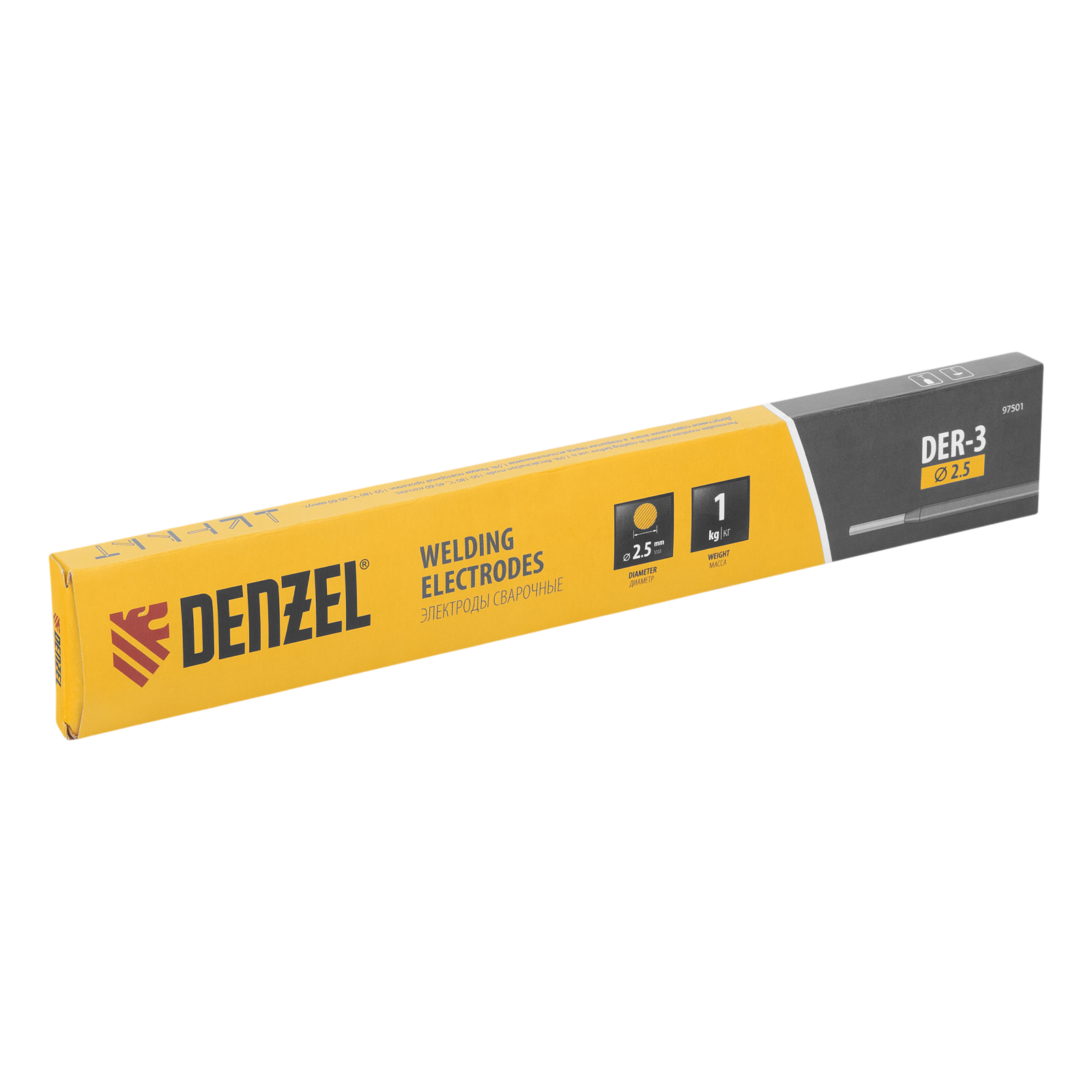 Электроды Denzel 97501 марки DER-3, диаметром 2,5 мм, с рутиловым покрытием синего цвета, 1 кг в упаковке, предназначены для ручной дуговой сварки деталей из углеродистых и низколегированных конструкционных сталей при максимальном токе 140 А. Позволяют получать соединения, устойчивые к вибрациям и воздействию агрессивных сред. Толщина обмазки выше, чем у аналогичных электродов других торговых марок, что обеспечивает высокое качество шва. Электроды используются в нефтегазовой промышленности, судо- и машиностроении, для проведения ремонтных работ, в том числе с резервуарами под давлением. Пригодятся также в быту.