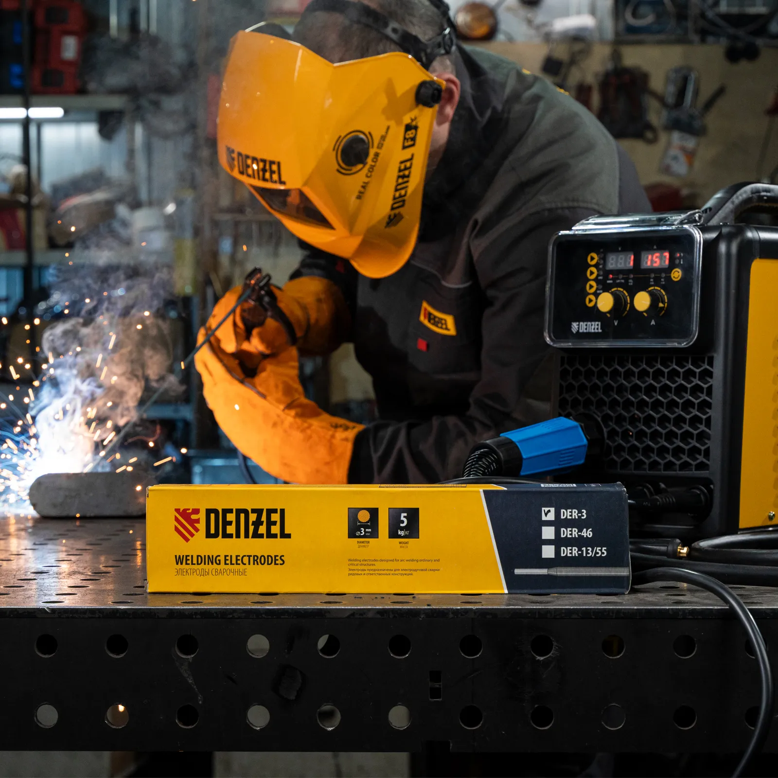 Электроды Denzel DER-3 97511 диаметром 3 мм, с рутиловым покрытием синего цвета, 5 кг в упаковке, предназначены для ручной дуговой сварки деталей из углеродистых и низколегированных конструкционных сталей при максимальном токе 140 А. Подходят для заготовок толщиной 3-5 мм. Позволяют формировать неповоротные стыки, что важно для проведения ремонтных работ с резервуарами под давлением. Сварной шов устойчив к появлению дефектов: пор, трещин и шлаковых включений. Электроды применяются в нефтегазовой, судо- и машиностроительной промышленности, пригодятся также в быту.