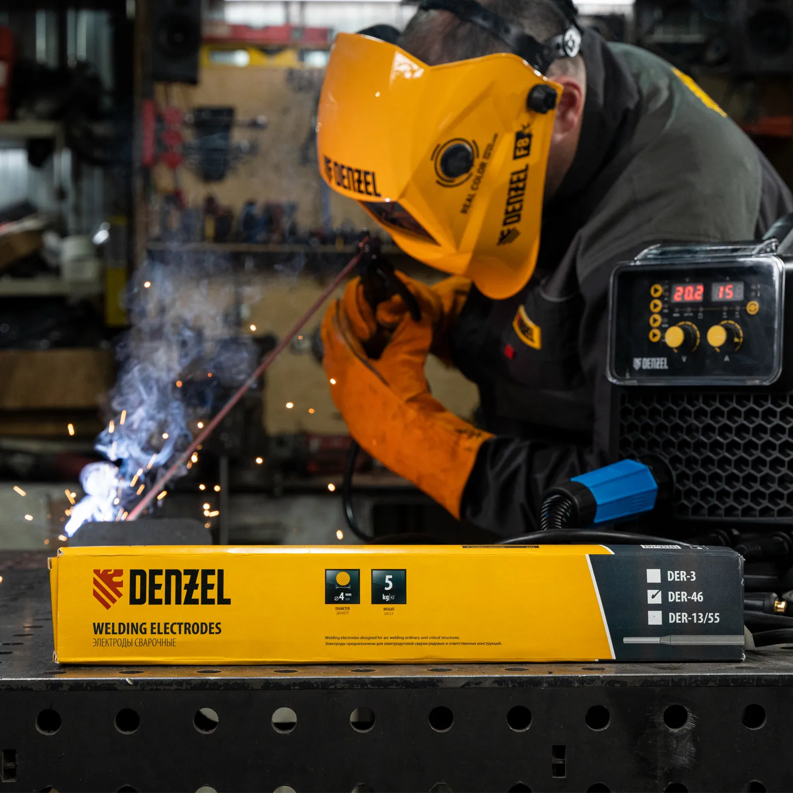 Электроды Denzel DER-46 97517 диаметром 4 мм, с рутиловым покрытием красного цвета, 5 кг в упаковке, предназначены для ручной дуговой сварки деталей из углеродистых сталей и низколегированных конструкционных сталей при максимальном токе 200 А. Подходят для заготовок толщиной до 5 мм. Удобны для работы короткими швами, т.к. обеспечивают быстрый первичный и повторный поджиг дуги. Электроды подходят для создания нахлестных, угловых и стыковых соединений в рядовых конструкциях, потолочных и вертикальных швов, оптимальны для сварки газовых и водопроводных труб с низким давлением.