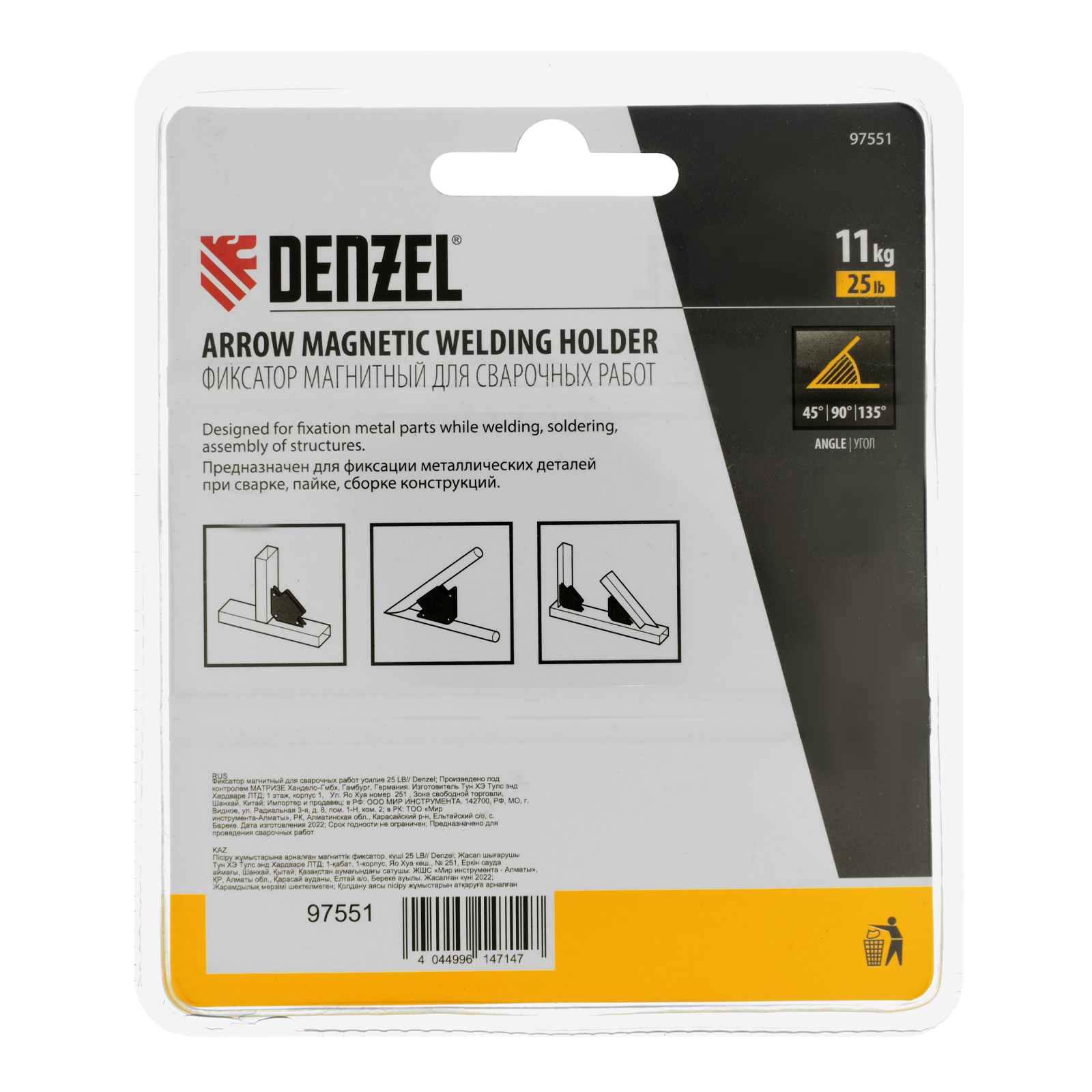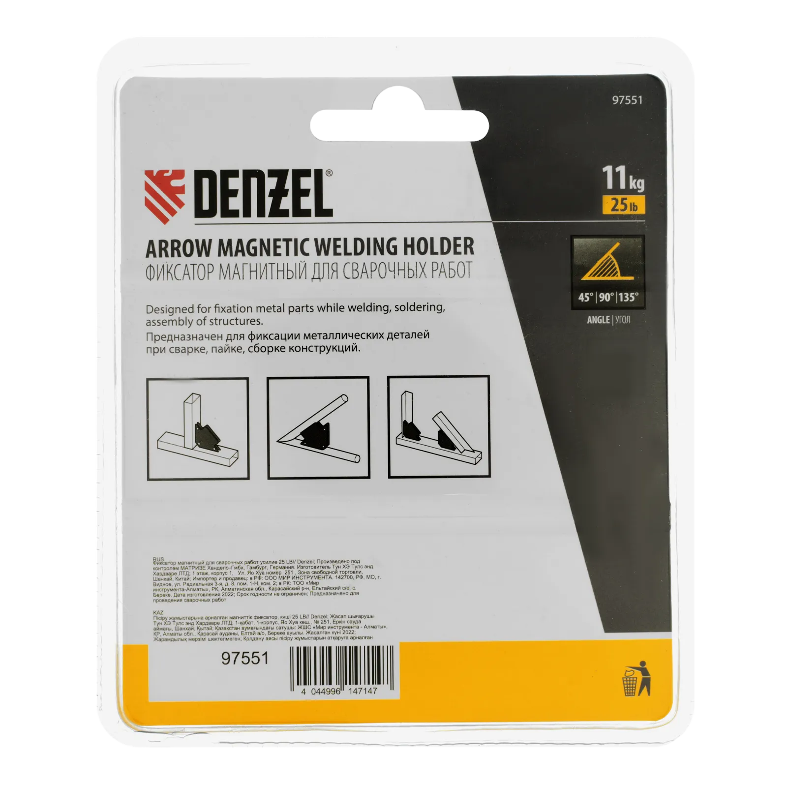 Магнитный фиксатор Denzel 25 LB 97551 значительно упрощает проведение сварочных и паяльных работ с металлическими профилями, уголками, трубами прямоугольной и круглой формы, пластинами и другим типом металла. Он позволяет быстро и легко зафиксировать конструкцию весом до 11 кг под необходимым углом и работать без риска ее падения или смещения.