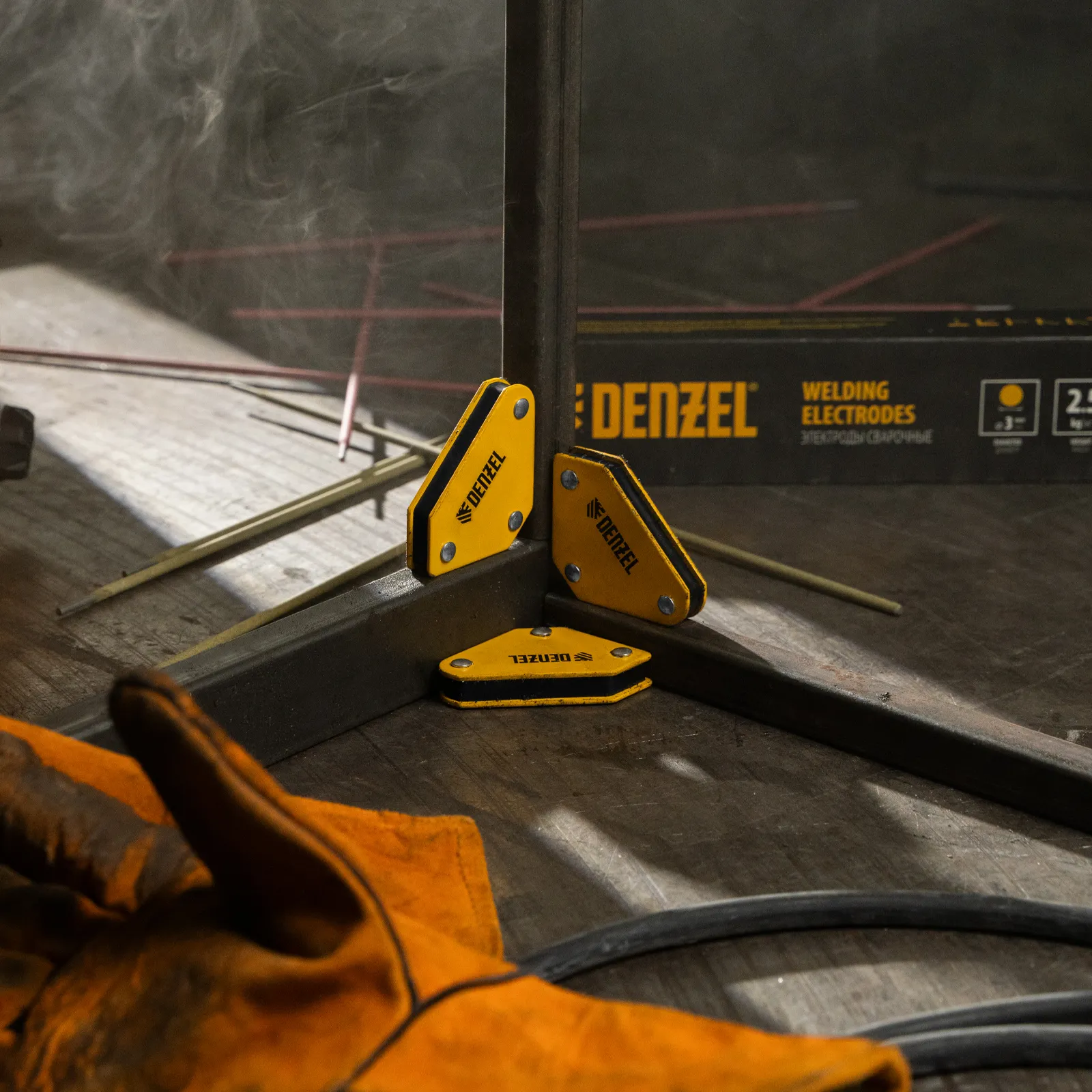 Набор из 4 магнитных фиксаторов для сварочных работ Denzel 97555 идеально подходит для выстраивания небольших металлических конструкций. Уголки обеспечивают надежную фиксацию деталей весом до 4 кг при выполнении сварочных и паяльных работ, поэтому работать можно в одиночку без чьей-либо помощи. При одновременном использовании всех фиксаторов из набора можно выстроить сразу 4 точных угла конструкции.