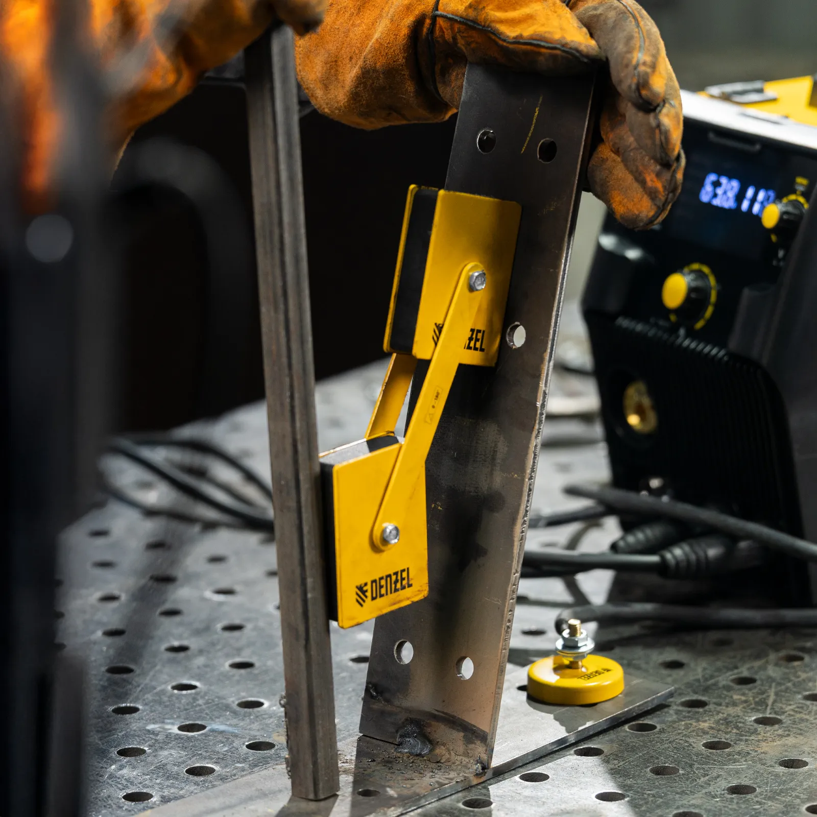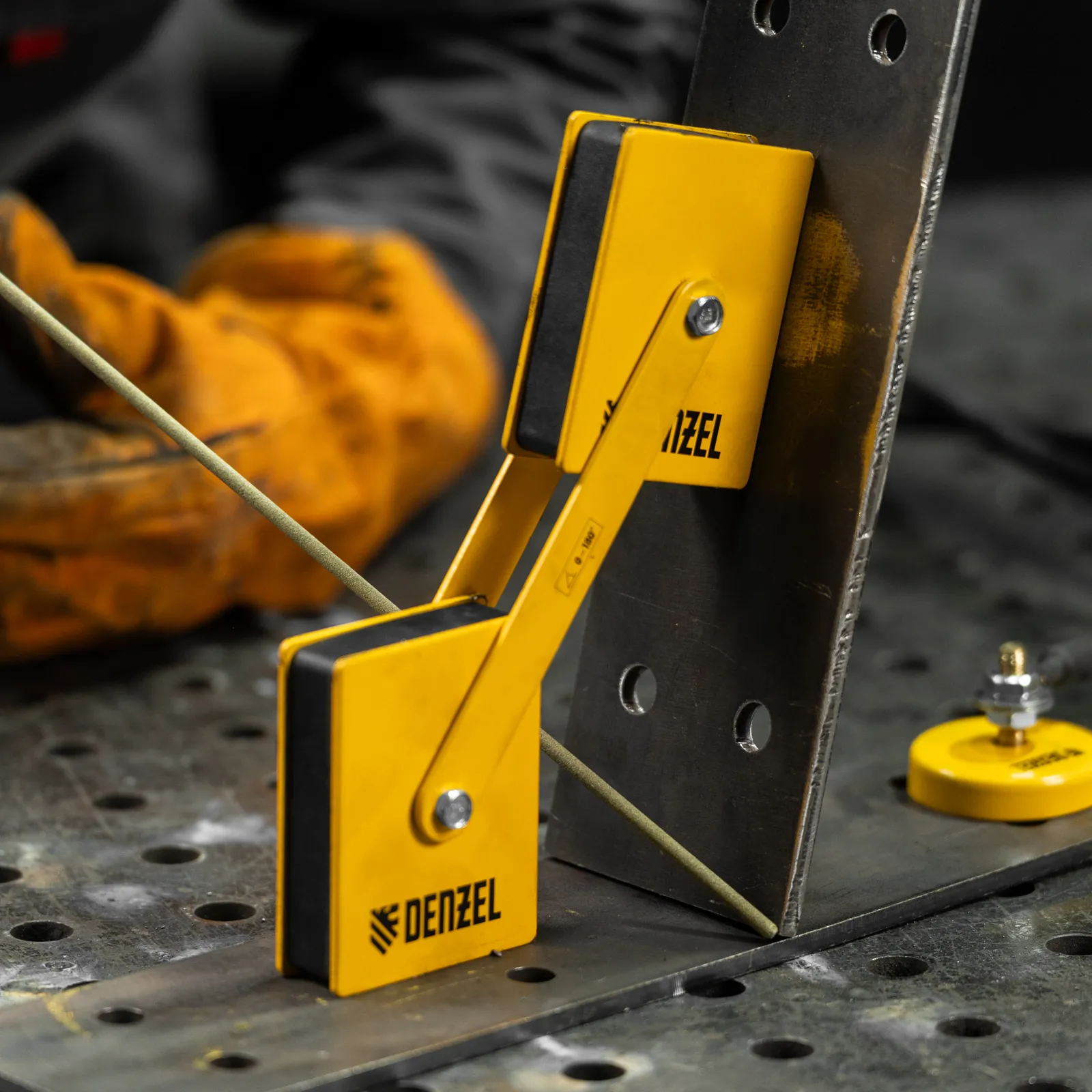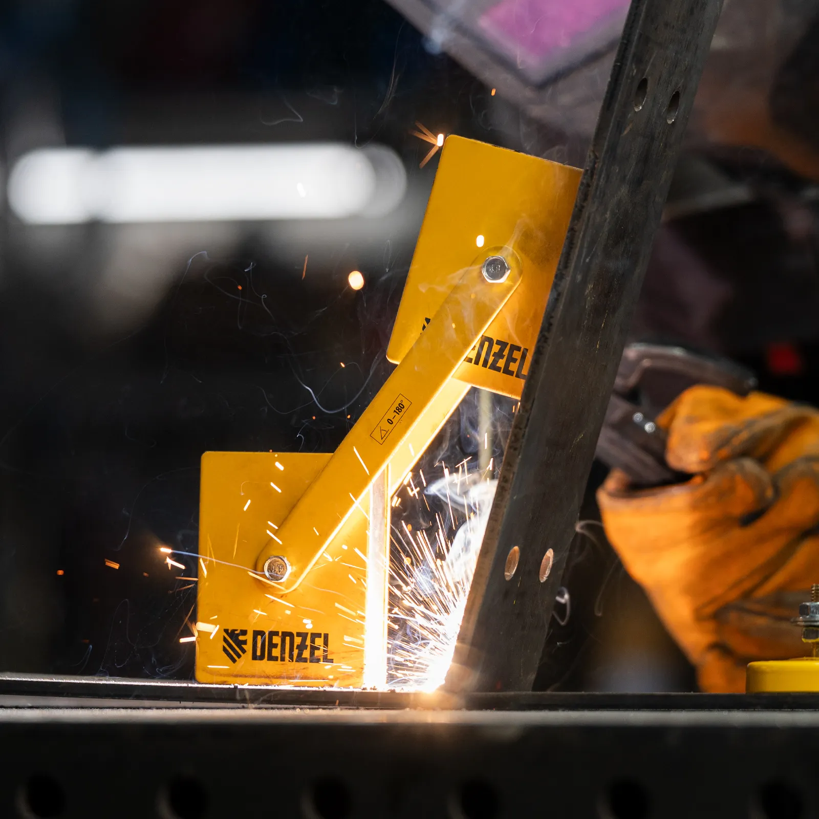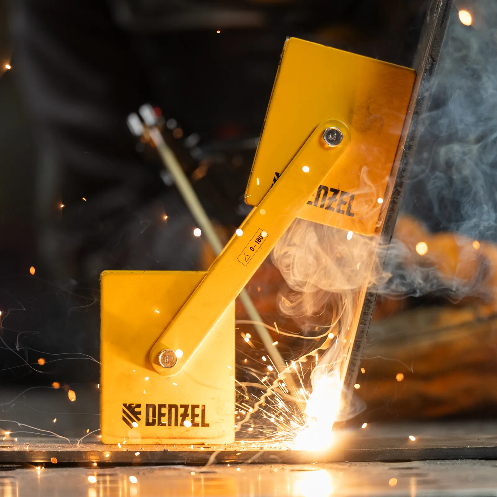Фиксатор магнитный регулируемый Denzel 97565 состоит из 2 частей, каждая из которых удерживает металлические предметы с усилием 50 LB (23 кг), и используется при проведении сварочных работ. Позволяет точно позиционировать заготовки под любым углом в диапазоне 0-180° и удобен для работы со сложными конструкциями. Обеспечивает высокое качество сварки, т.к. исключает смещение свариваемых элементов во время работы.