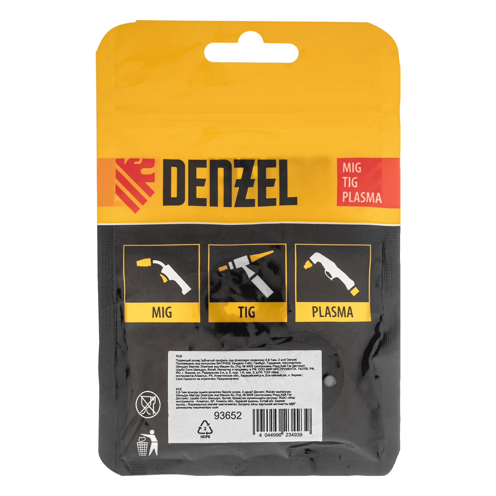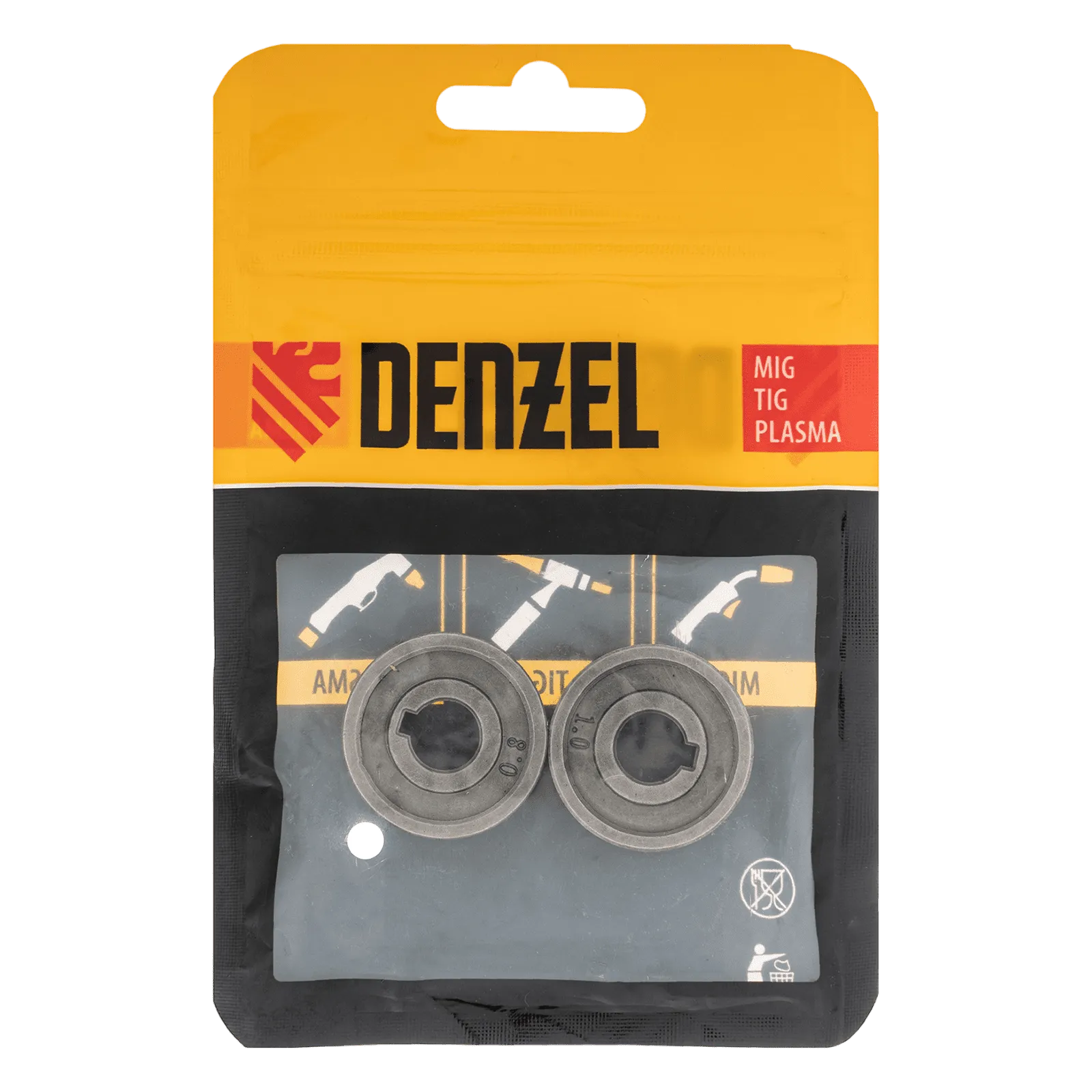 Подающий ролик Denzel 93652 с зубчатым профилем, 2 шт. в упаковке, — элемент конструкции сварочного аппарата, предназначенный для протягивания флюсовой проволоки диаметром 0,8-1 мм. Совместим с моделями Denzel 94313, 94314, 94361, а также со сварочными полуавтоматами других торговых марок.