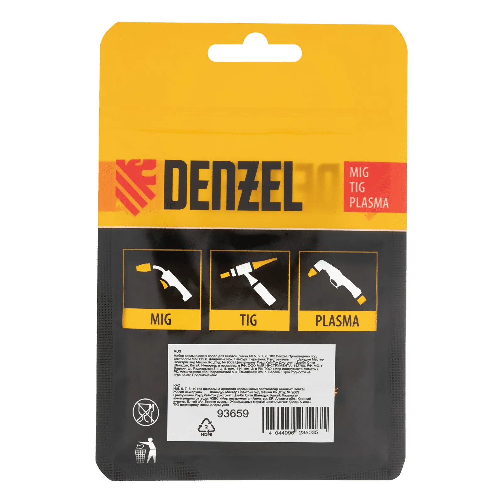 Набор керамических сопел Denzel 93659 для газовой линзы включает в себя оснастку № 5, 6, 7, 8, 10, предназначенную для формирования потока защитного газа во время проведения сварочных работ. Предотвращает поступление кислорода к свариваемому материалу и повышает качество сварного шва. Сопла совместимы с TIG-горелками Denzel 93643, 93644, а также с моделями других торговых марок с аналогичным посадочным разъемом.