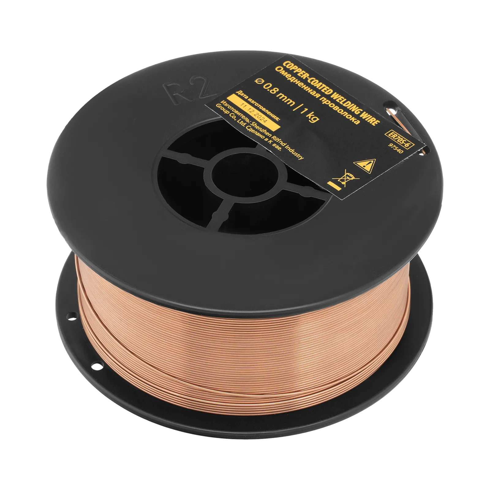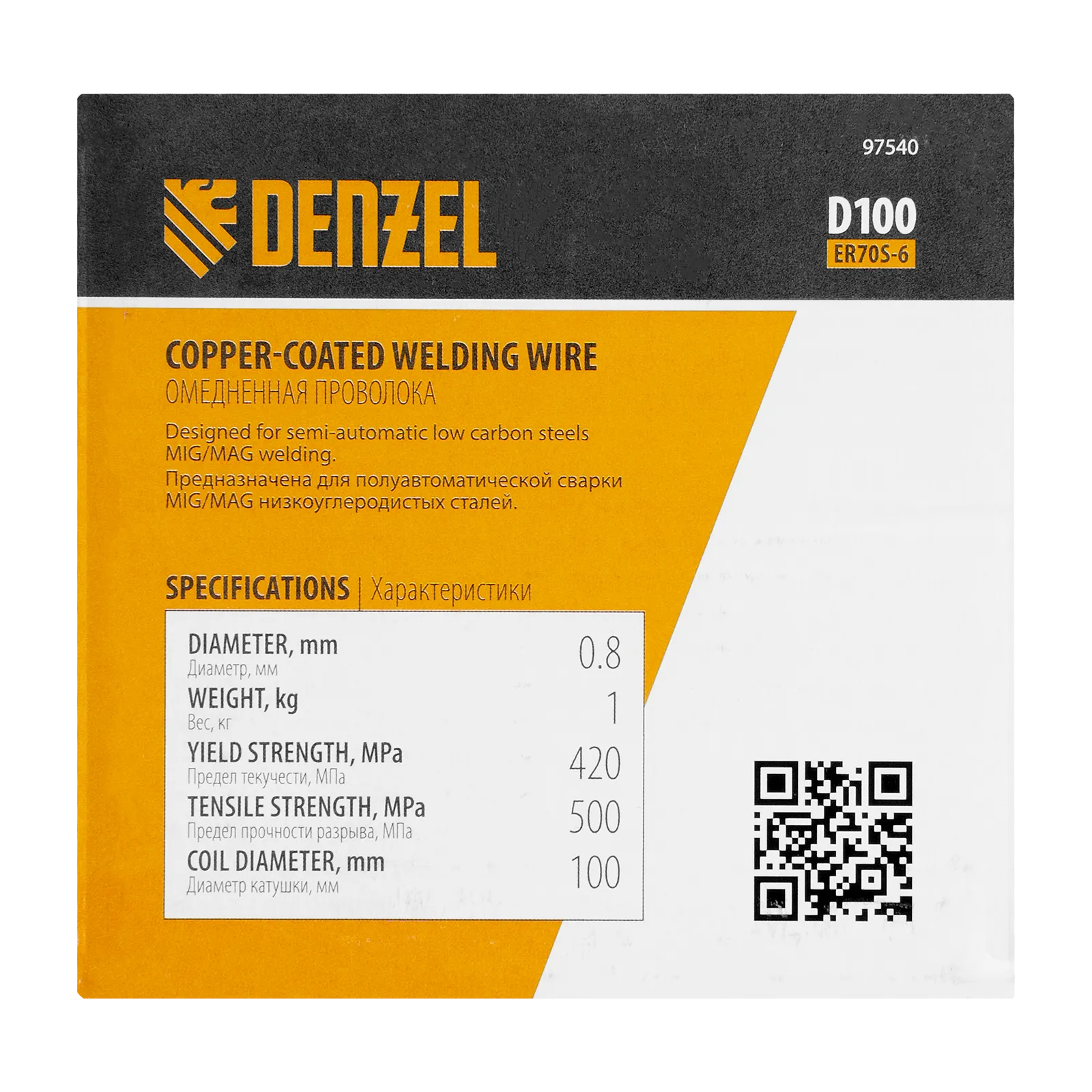 Омедненная проволока Denzel ER70S-6 97540 диаметром 0,8 мм и весом 1 кг, на катушке типа D100, предназначена для полуавтоматической сварки MIG/MAG углеродистых и низколегированных сталей в среде защитных газов. Необходима профессиональным сварщикам, пригодится также частному мастеру.