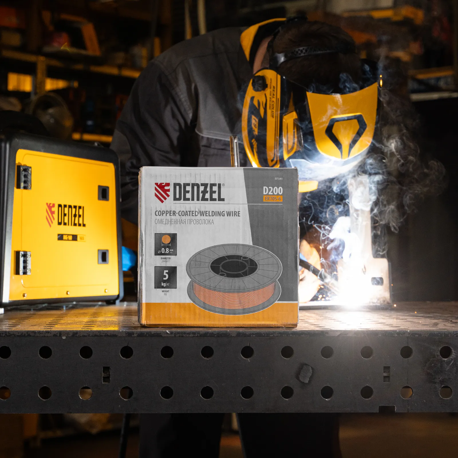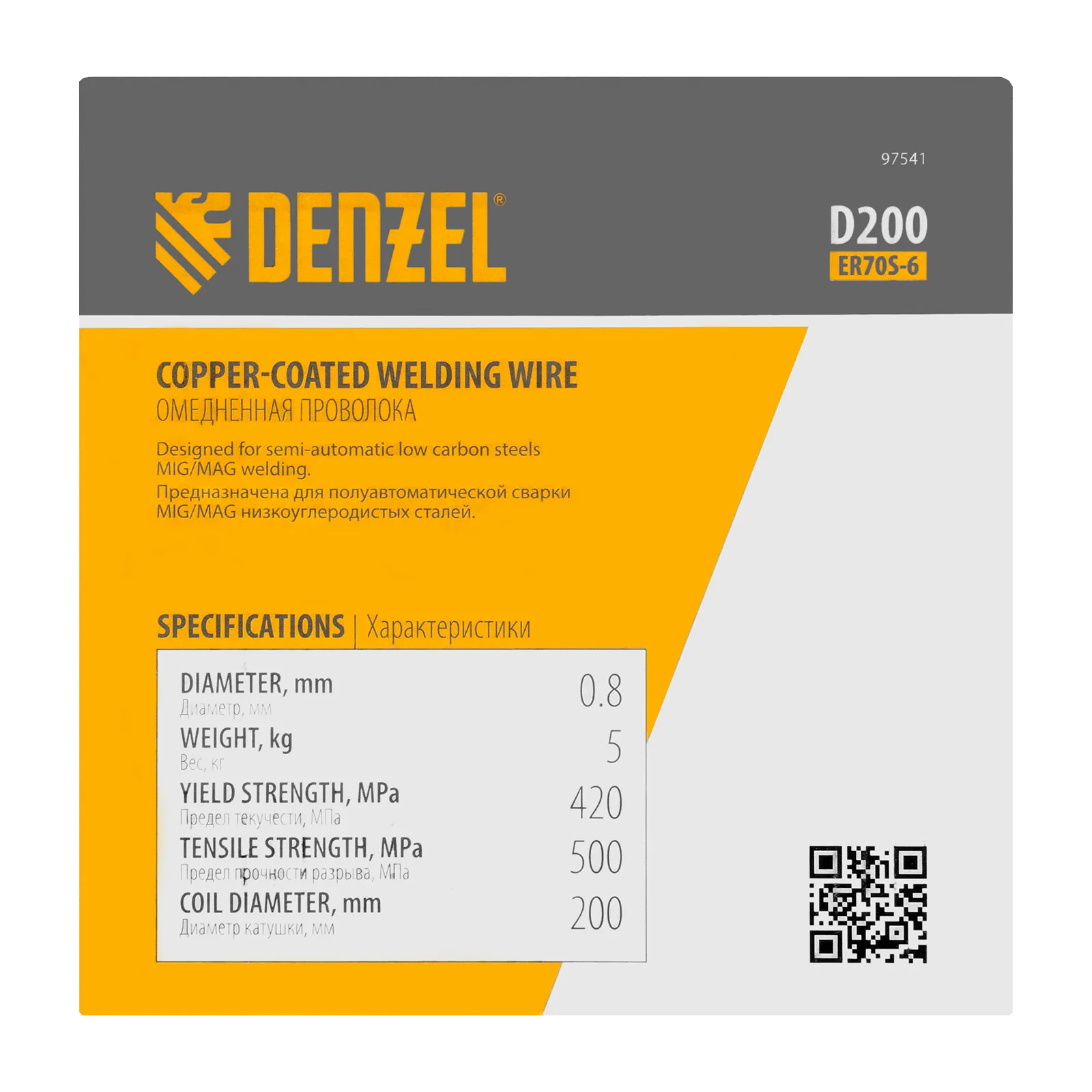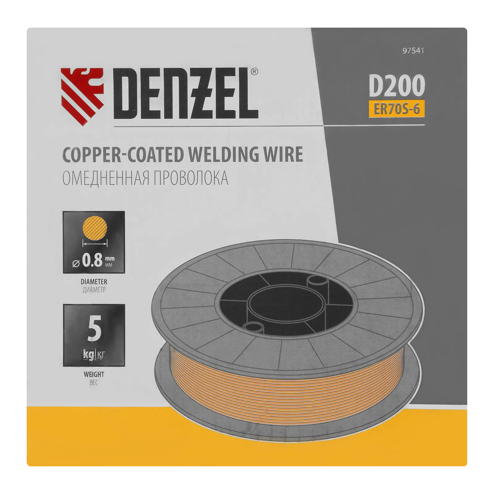Омедненная проволока Denzel ER70S-6 97541 диаметром 0,8 мм и весом 5 кг, на катушке типа D200, предназначена для полуавтоматической сварки MIG/MAG углеродистых и низколегированных сталей в среде защитных газов. Необходима профессиональным сварщикам, пригодится также частному мастеру.