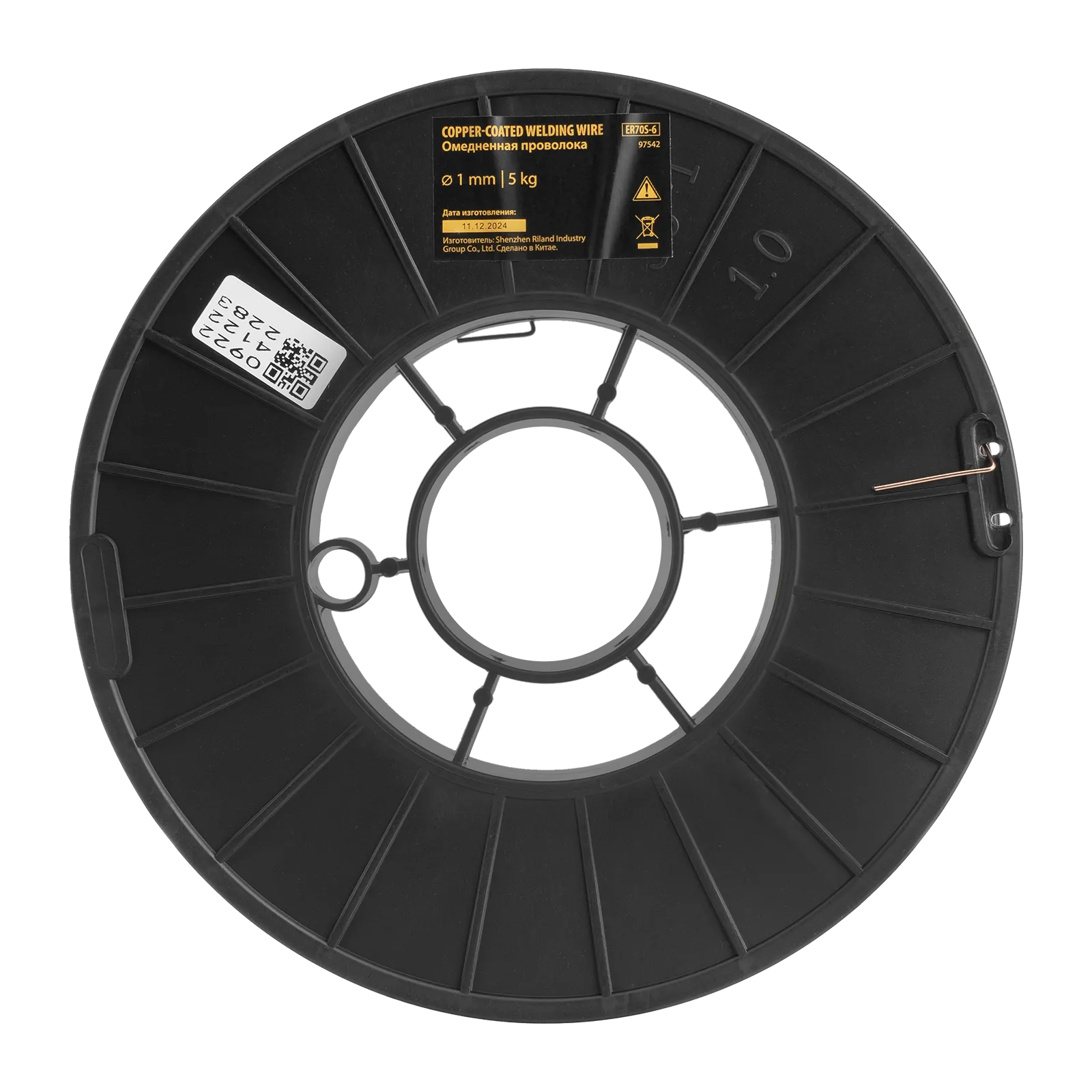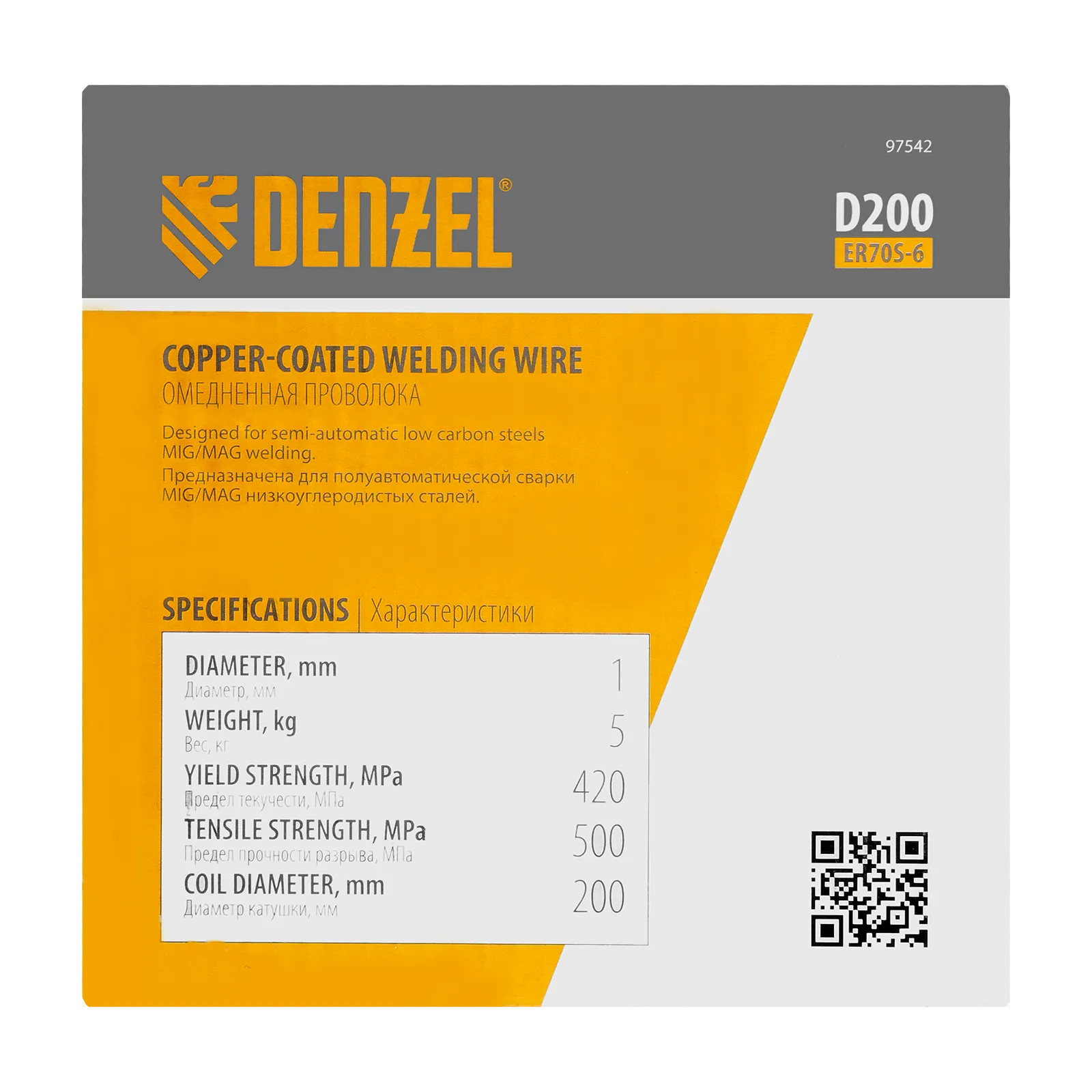 Омедненная проволока Denzel ER70S-6 97542 диаметром 1 мм и весом 5 кг, на катушке типа D200, предназначена для полуавтоматической сварки MIG/MAG углеродистых и низколегированных сталей в среде защитных газов. Необходима профессиональным сварщикам, пригодится также частному мастеру.