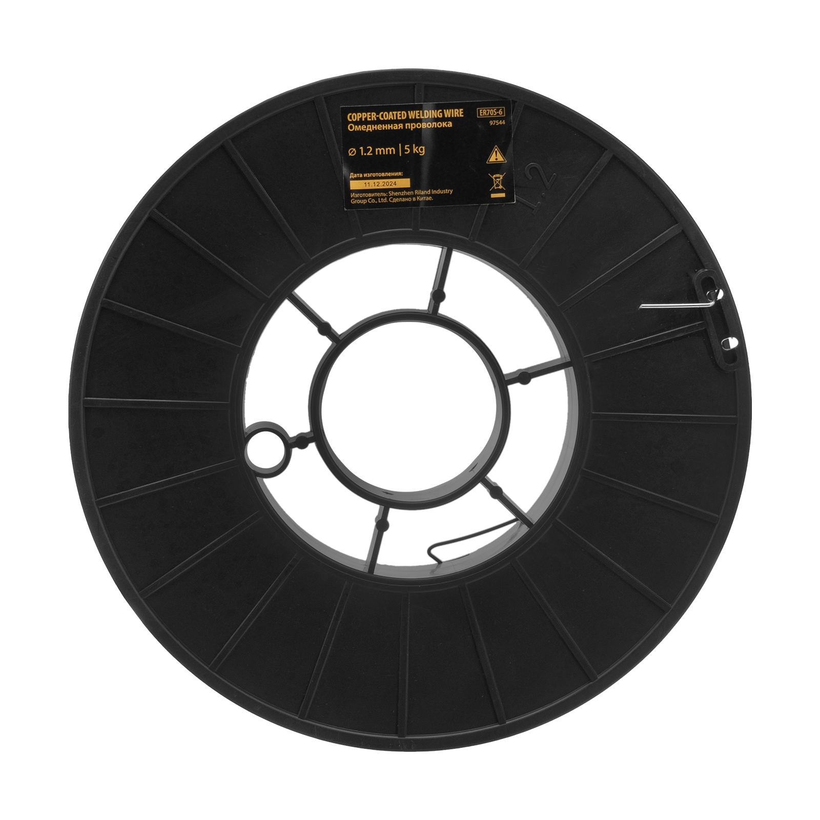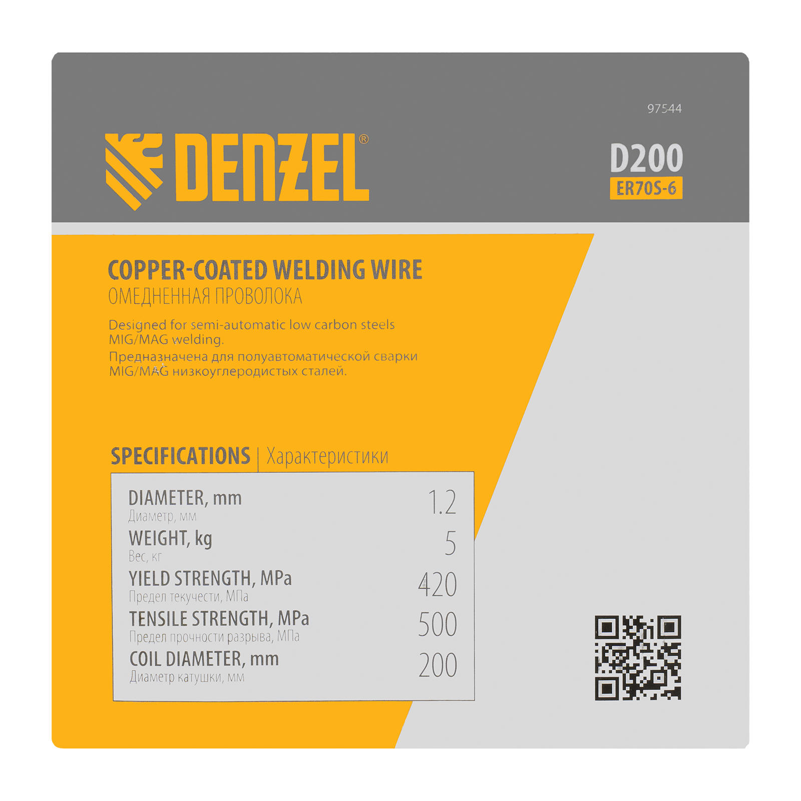 Омедненная проволока Denzel ER70S-6 97544 диаметром 1,2 мм и весом 5 кг, на катушке типа D200, предназначена для полуавтоматической сварки MIG/MAG углеродистых и низколегированных сталей в среде защитных газов. Необходима профессиональным сварщикам, пригодится также частному мастеру.