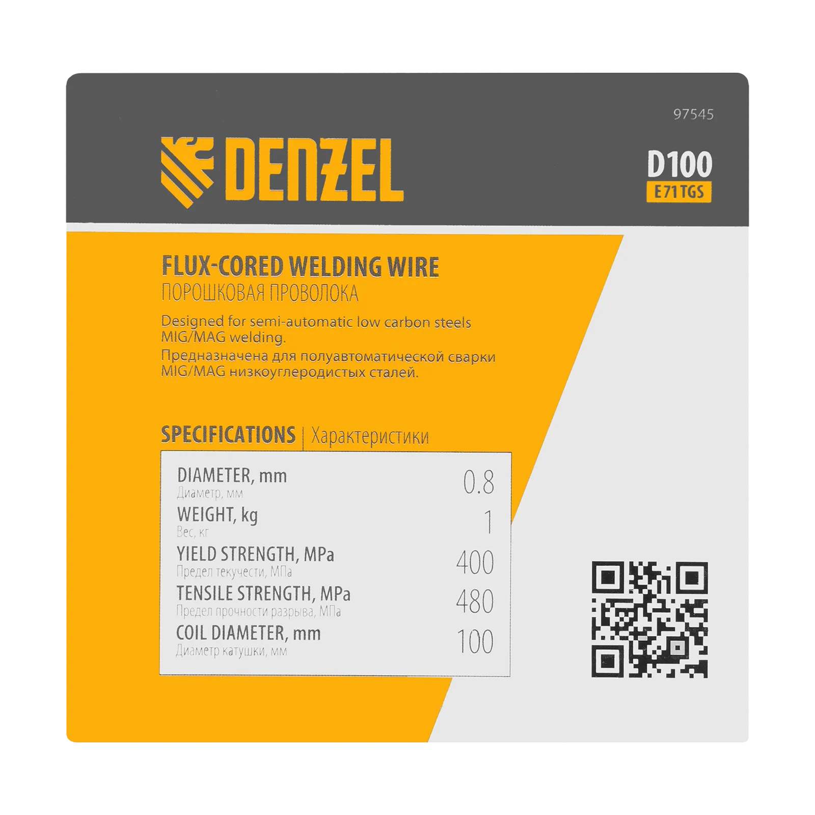 Порошковая проволока Denzel E71TGS 97545 диаметром 0,8 мм и весом 1 кг, на катушке типа D100, предназначена для полуавтоматической сварки MIG/MAG углеродистых и низколегированных сталей без среды защитных газов. Необходима профессиональным сварщикам, пригодится также частному мастеру.