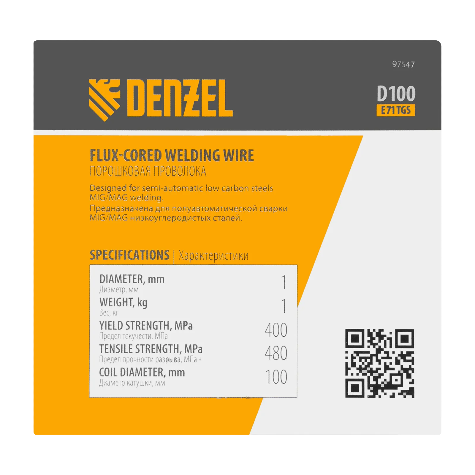 Порошковая проволока Denzel E71TGS 97547 диаметром 1 мм и весом 1 кг, на катушке типа D100, предназначена для полуавтоматической сварки MIG/MAG углеродистых и низколегированных сталей без среды защитных газов. Необходима профессиональным сварщикам, пригодится также частному мастеру.