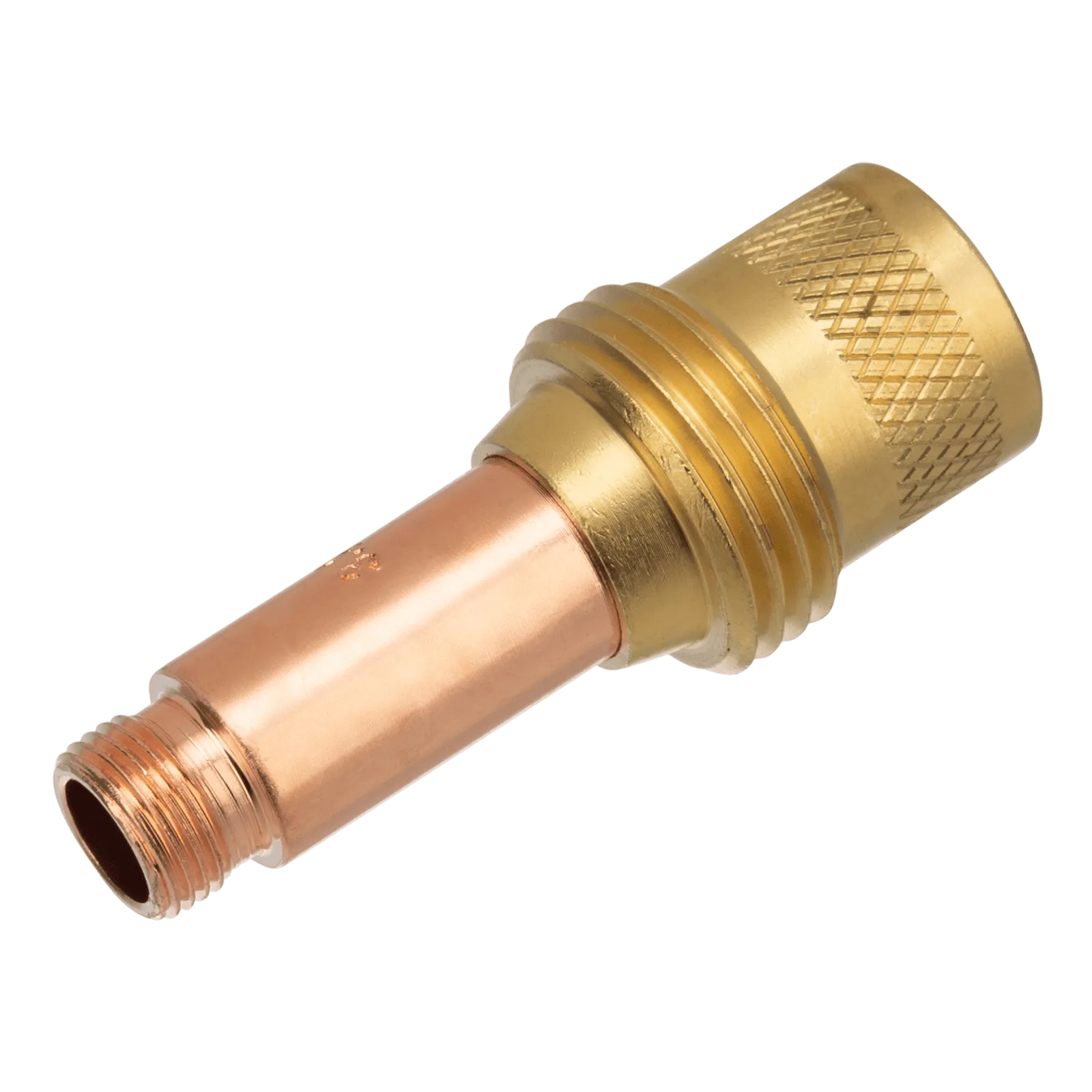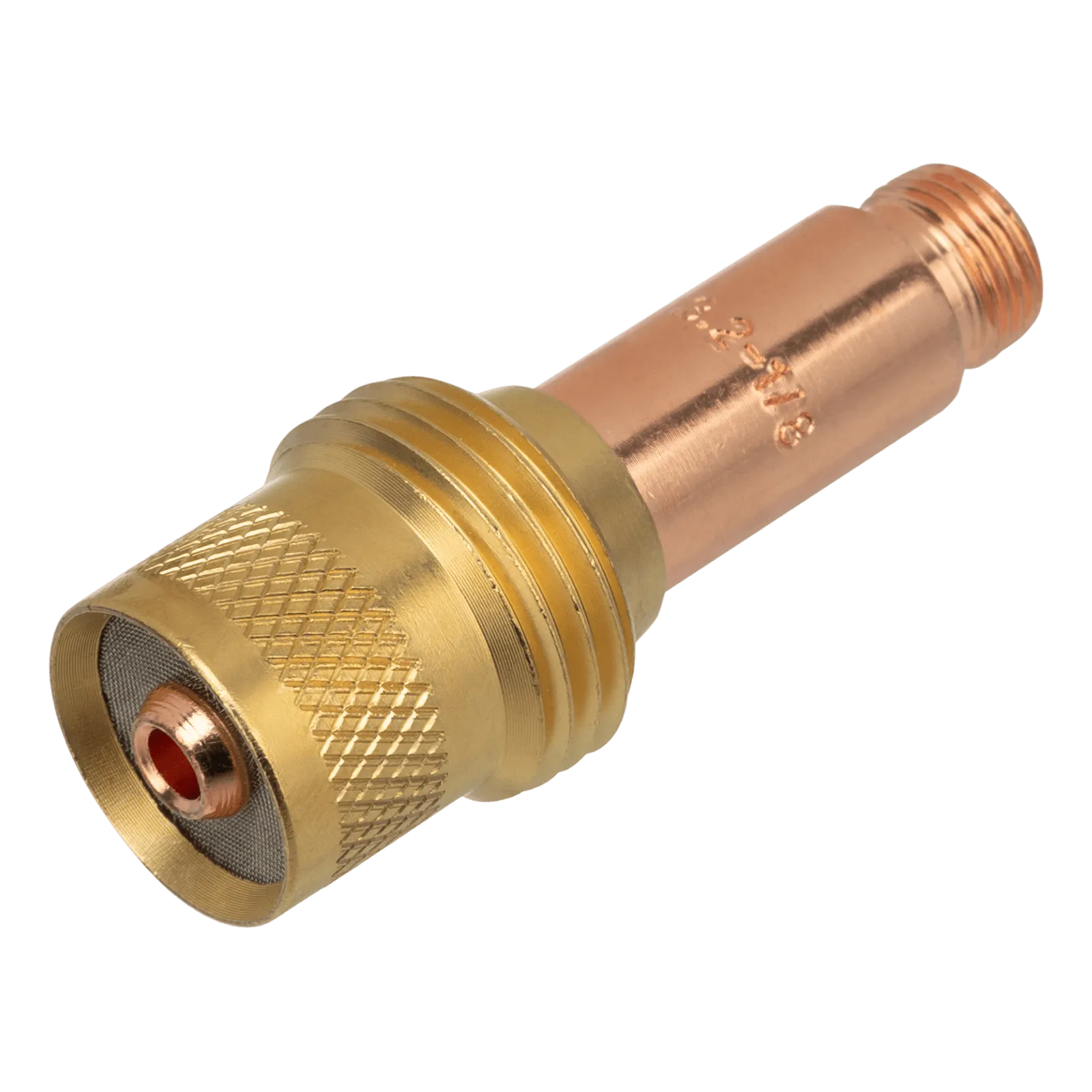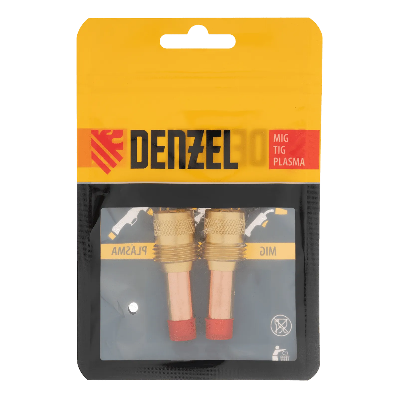 Держатель цанги Denzel 93658 входит в набор из 2 шт. и надежно фиксирует в сопле газовой горелки цангу с электродом диаметром 2,4 мм. Обеспечивает более равномерное распределение защитного газа в зоне сварки, чем при использовании стандартного цангодержателя. Используется для аргонодуговой сварки и совместим со сварочными горелками TIG 93643, 93644, а также может устанавливаться на модели других торговых марок с аналогичным посадочным разъемом.