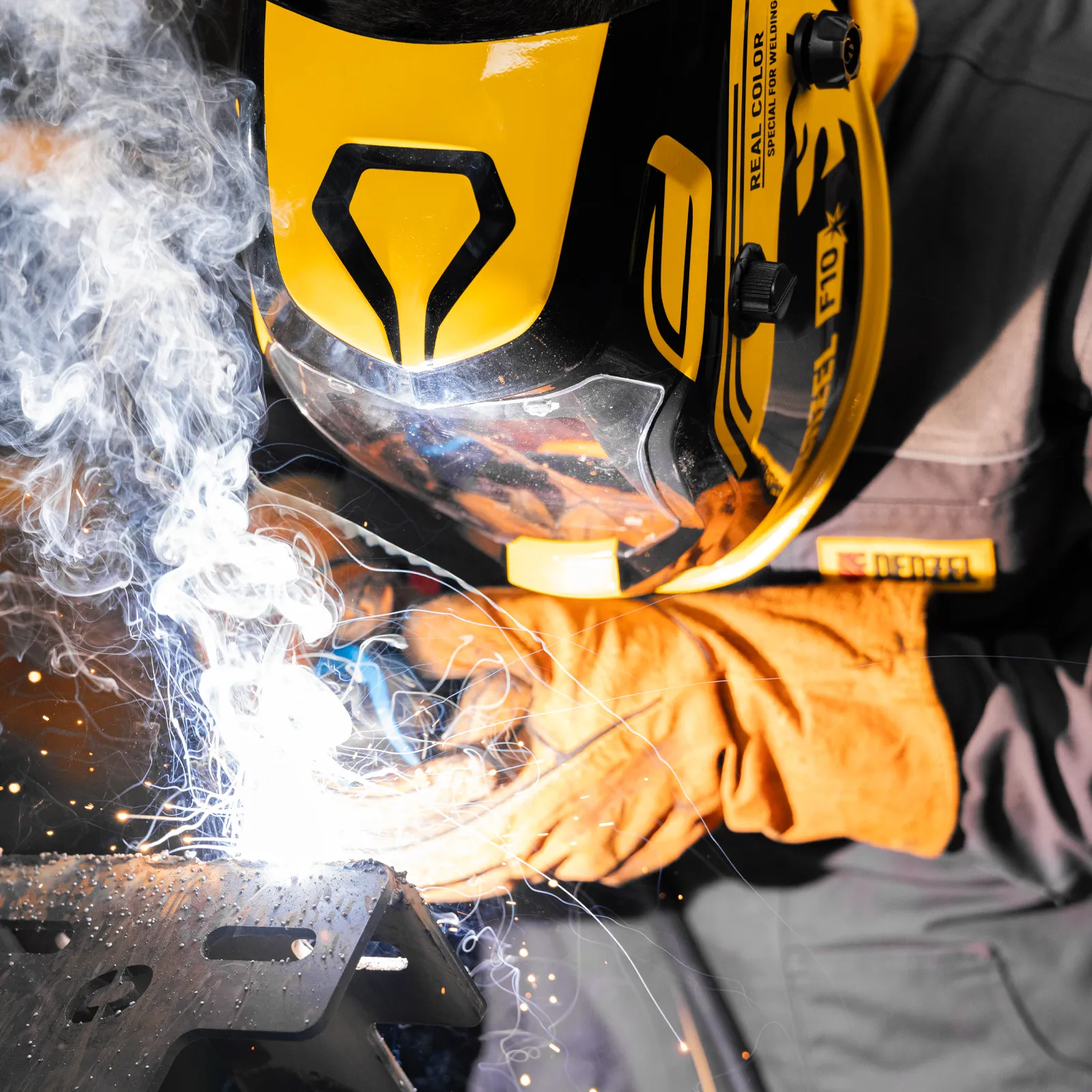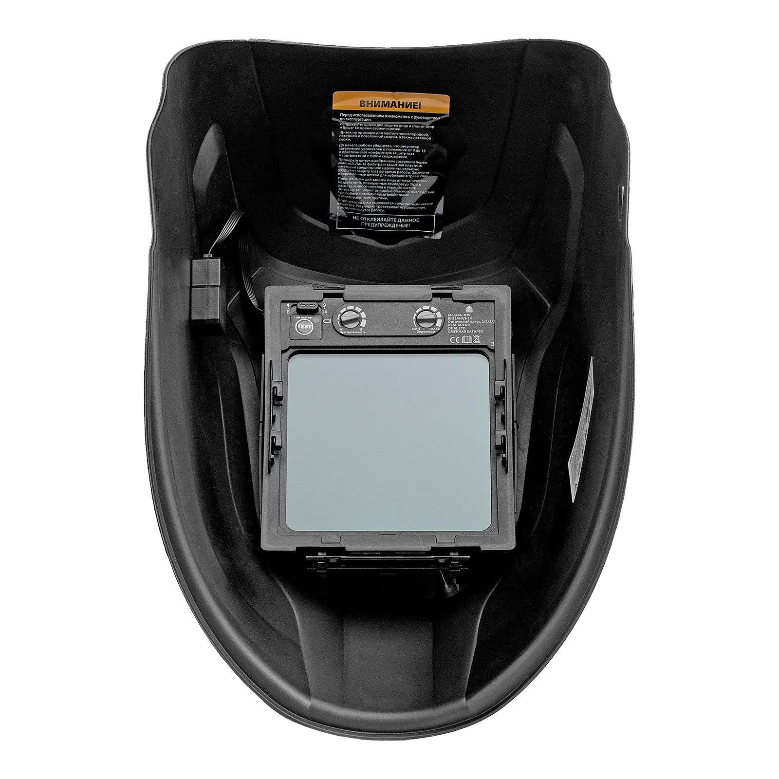 - Точная настройка рабочих параметров — можно переключаться между 2 диапазонами затемнения, а также вручную устанавливать степень затемнения в зависимости от режима сварки.