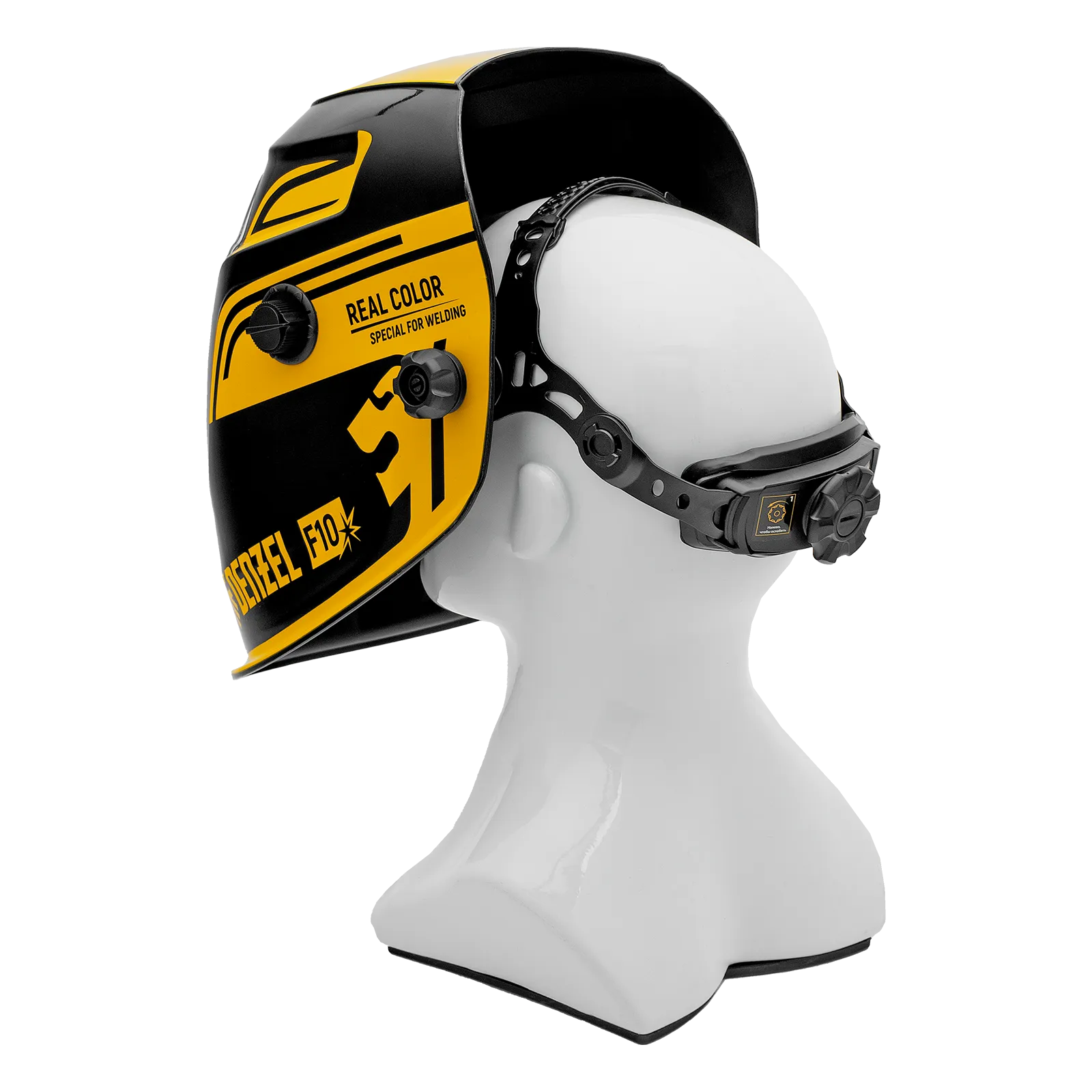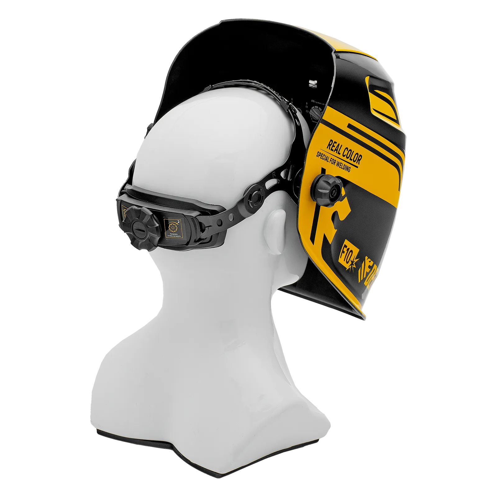 - Эргономичность — щиток оснащен поворотной системой крепления вверх/вниз: при подъеме маски центр тяжести автоматически смещается для максимального комфорта во время использования.