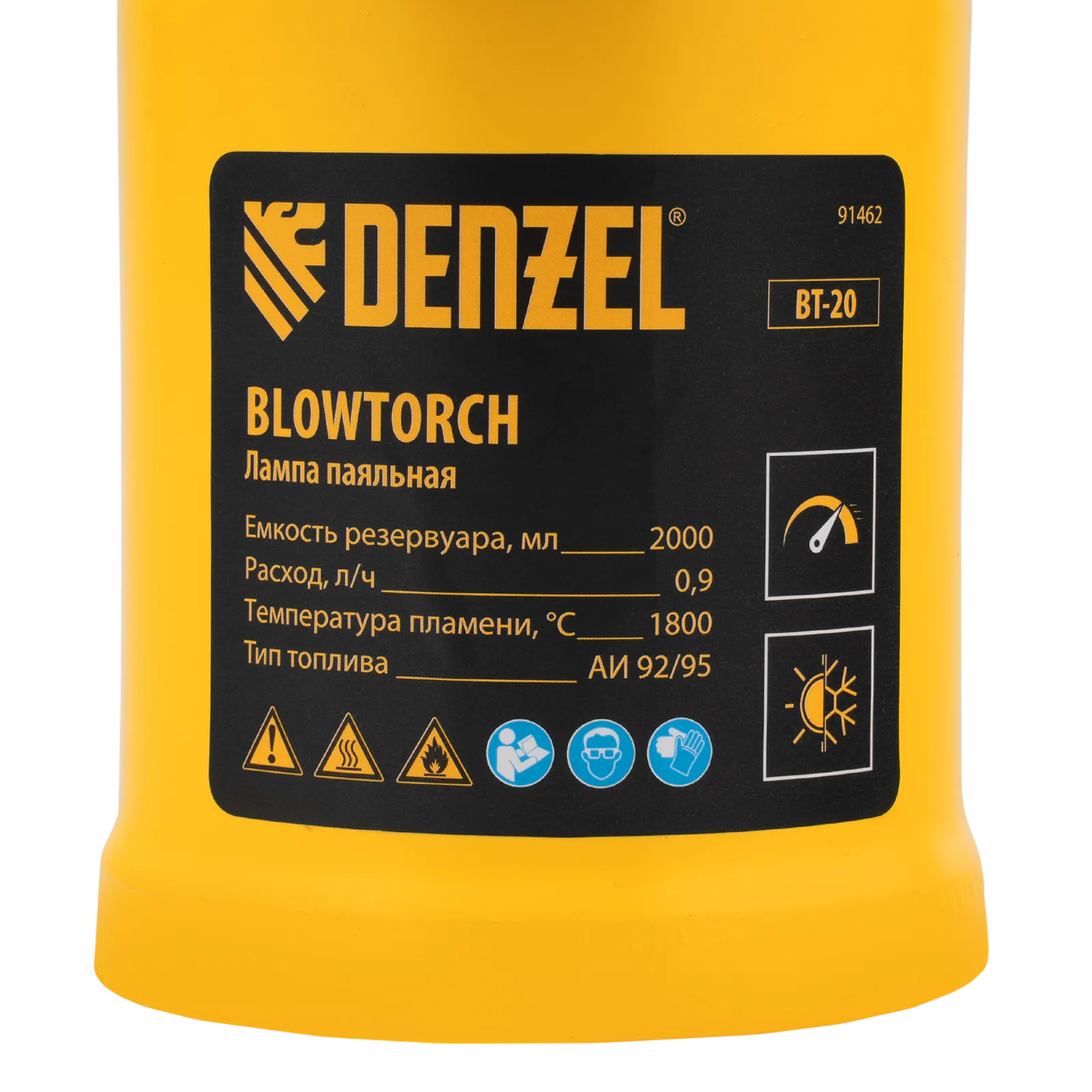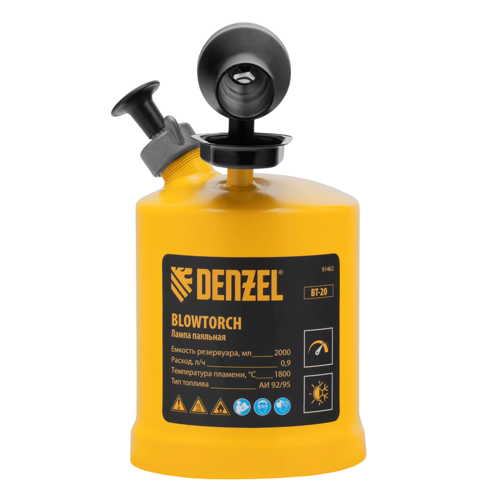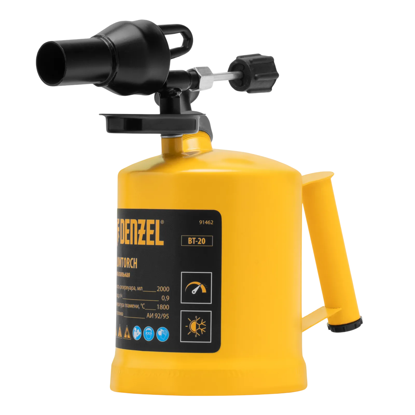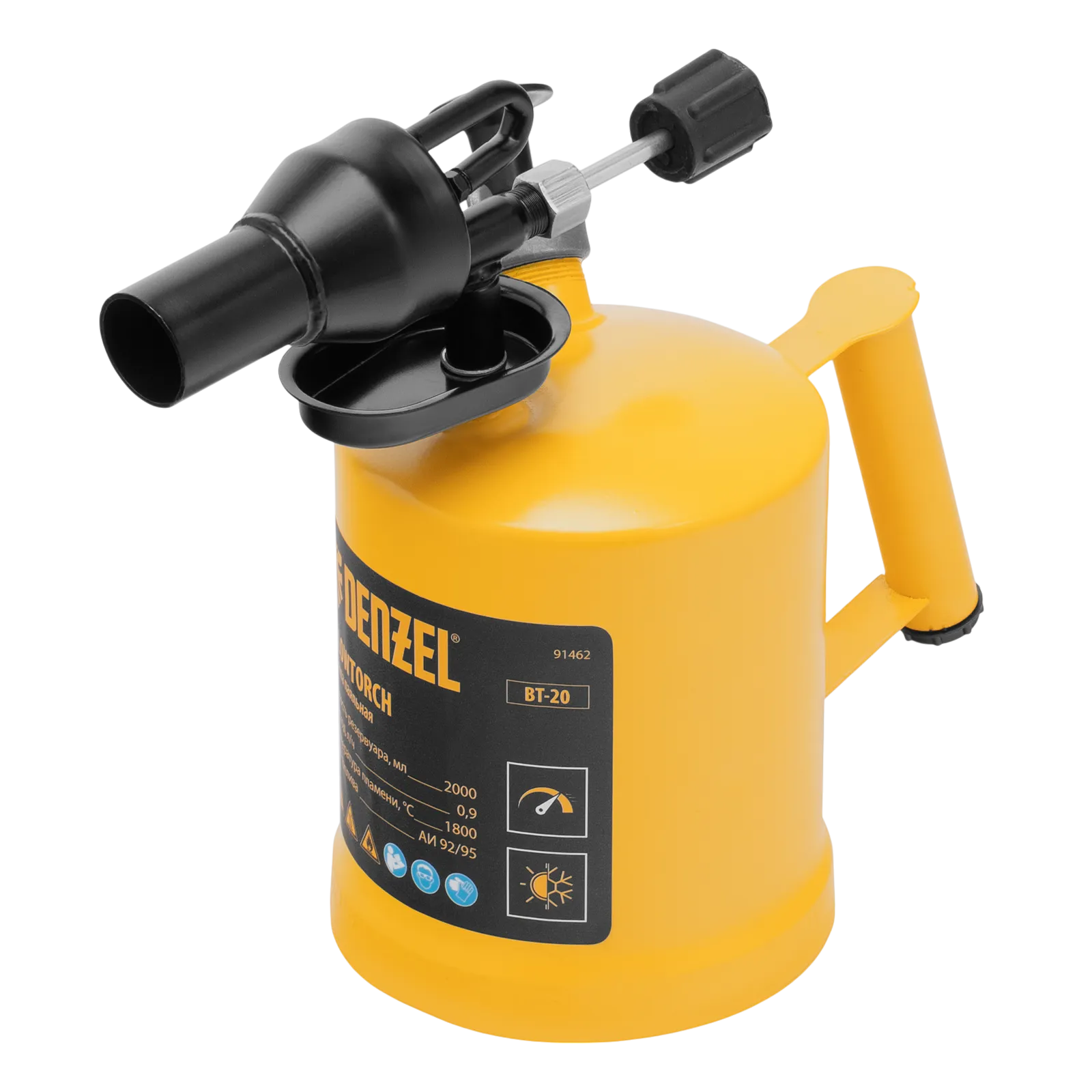 Паяльная лампа Denzel BT-20 91462 с баком объемом 2 л предназначена для нагрева поверхностей при помощи открытого направленного пламени. Полной заправки (1,5 л топлива) хватает больше чем на час работы при расходе 0,9 л/ч. Воздушный насос и форсунка высокого давления обеспечивают эффективную подачу топлива к эжектору. Лампа стабильно работает даже в ветреную погоду. Используется при выполнении ремонтных и демонтажных работ: пайки, сварки, ослаблении заклинивших резьбовых соединений, опаливании древесины, снятии лакокрасочных покрытий и других термических работ. Пригодится для обогрева двигателя. Также будет полезна в сельском хозяйстве и в быту.