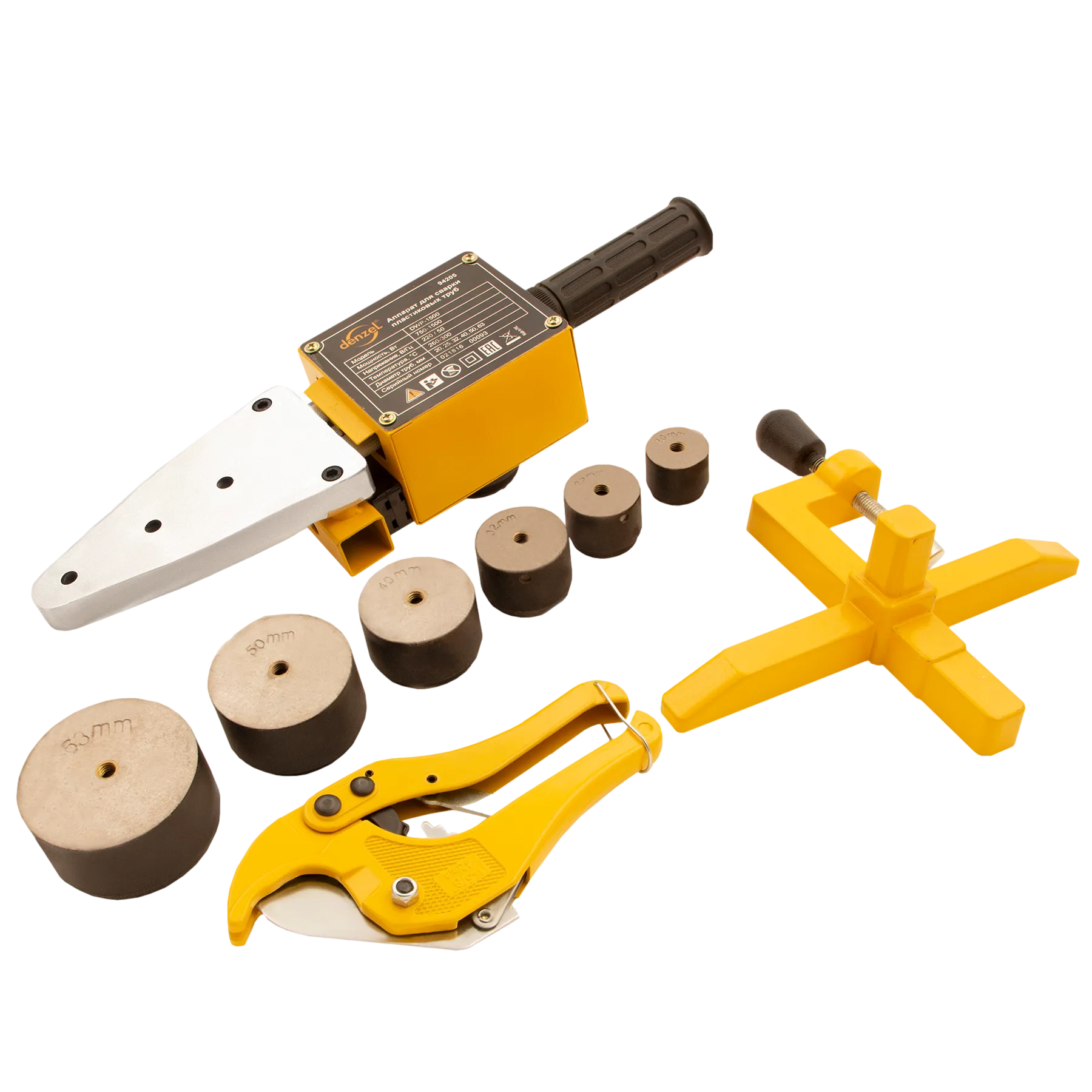 Аппарат для сварки пластиковых труб Denzel DWP-1500 94205 мощностью 1500 Вт предназначен для соединения полипропиленовых и полиэтиленовых труб диаметром 20, 25, 32, 40, 50 и 63 мм при нагреве до 260-300 °C. Незаменим во время ремонта и прокладки систем горячего и холодного водоснабжения, отопления, при проведении сантехнических работ с канализационными трубами и т.д. Питается от однофазной бытовой сети 220 В и имеет простой принцип работы, поэтому оптимален для использования в квартире и частном доме.