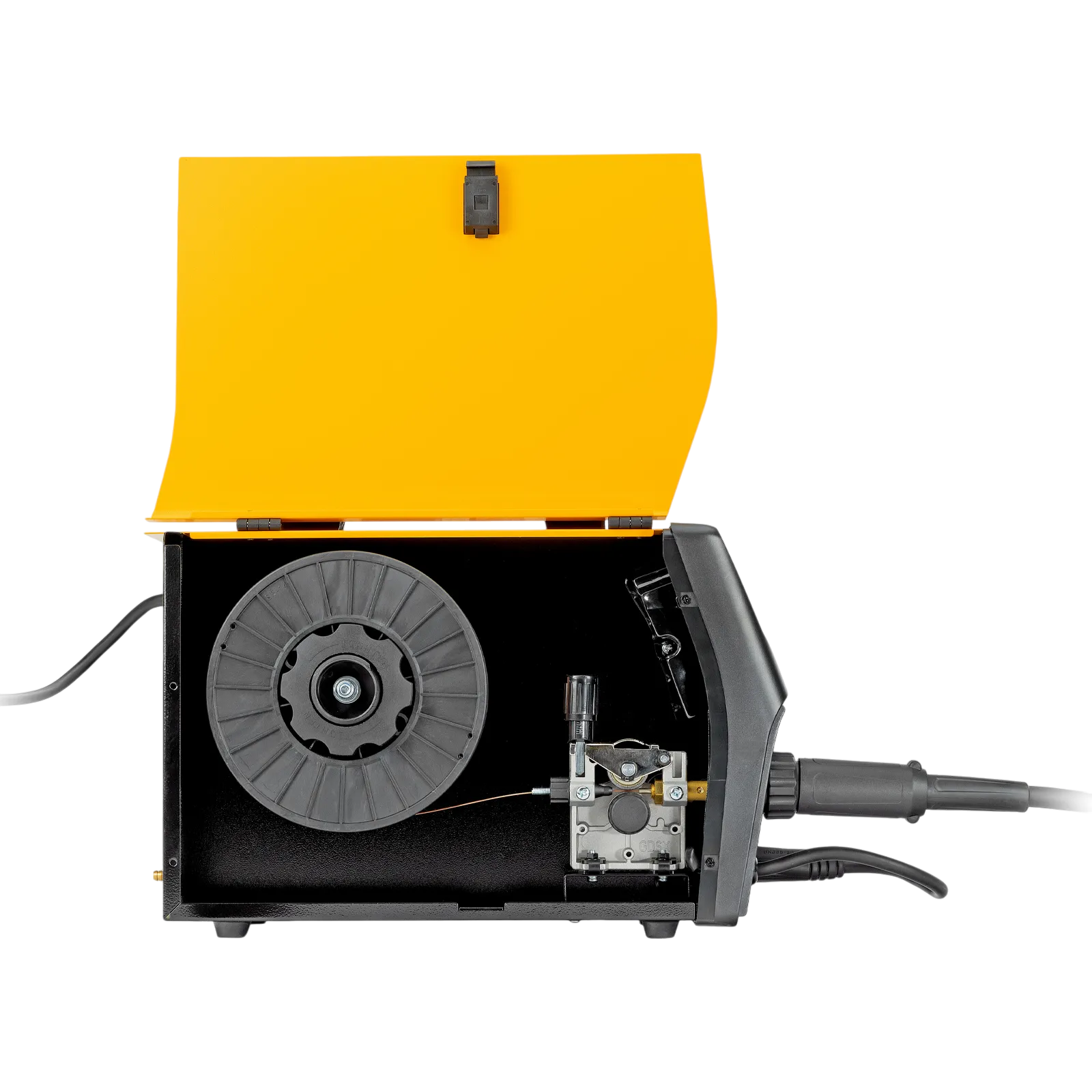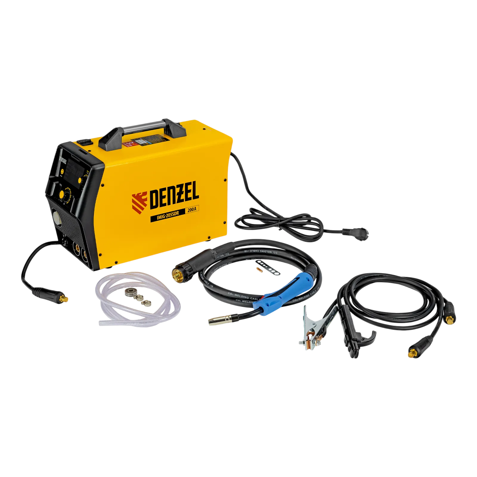 - Продуманная комплектация — аппарат поставляется с горелкой MIG, газовым шлангом и сварочными проводами (с электрододержателем и зажимом «земля»).