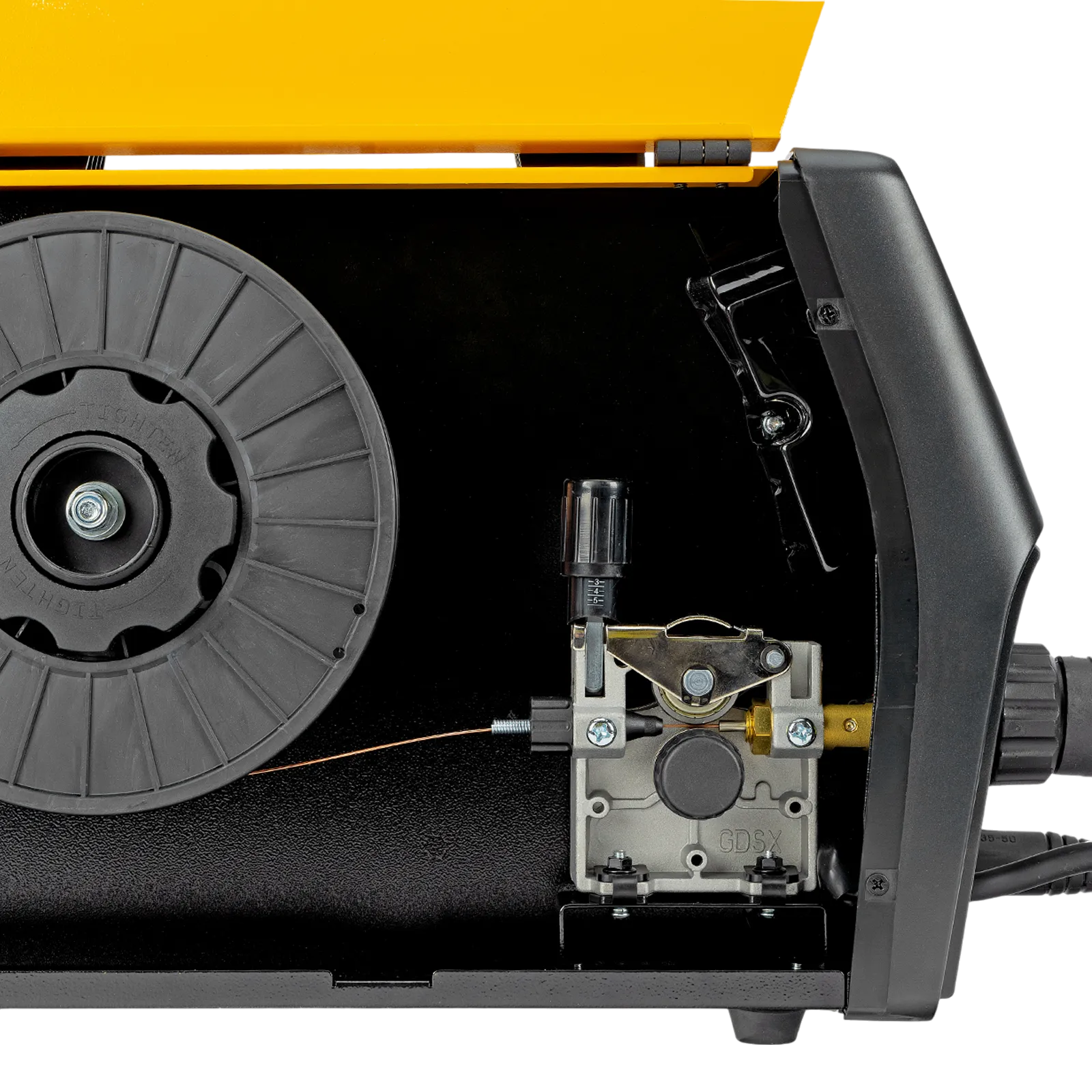 - Работа на удалении от аппарата и в труднодоступных местах — предусмотрена возможность использования горелки со встроенной катушкой сварочной проволоки (Spool gun).