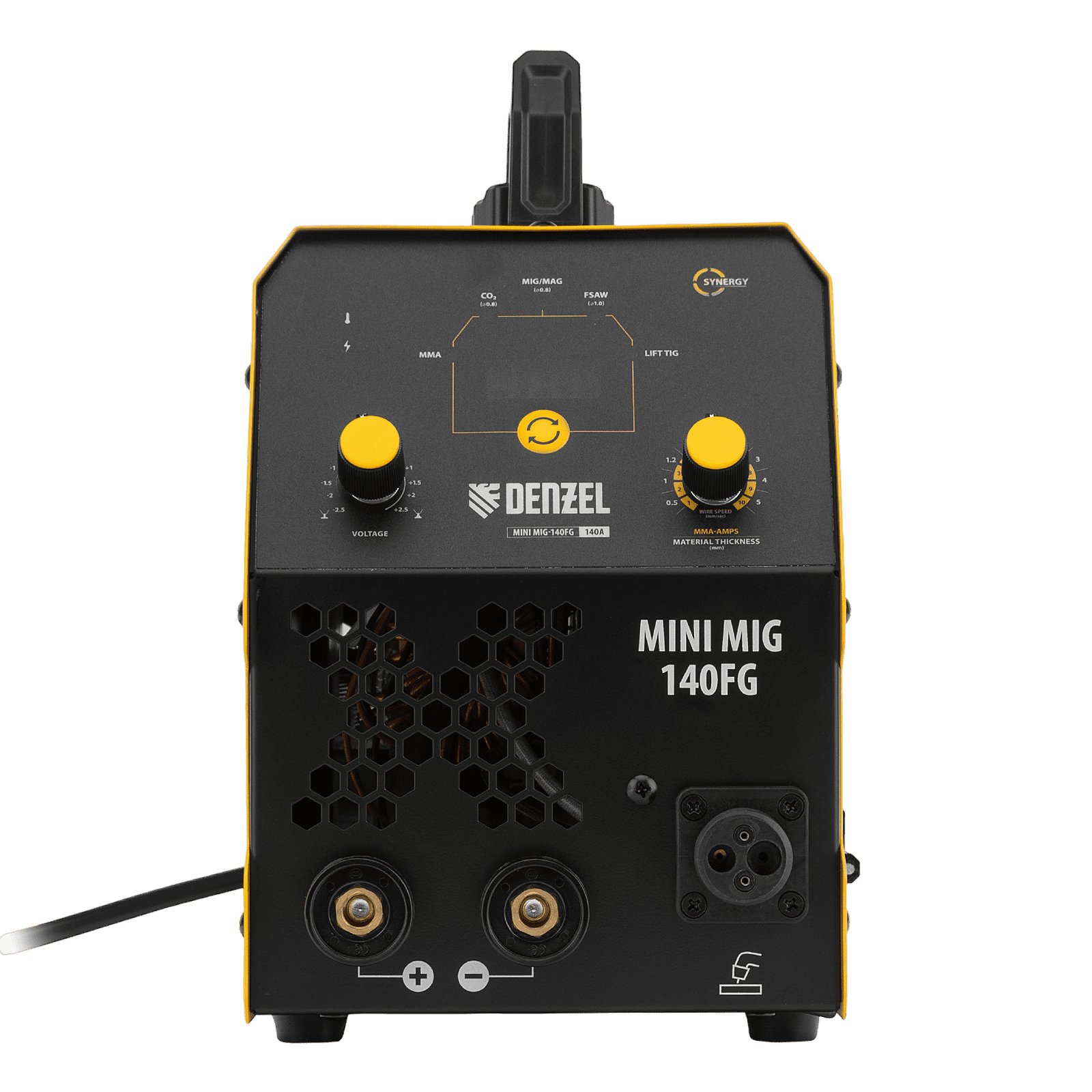 Инверторный аппарат полуавтоматической сварки Denzel Mini MIG-140FG 94322 с продолжительностью включения 60% работает с максимальным сварочным током 140 А. Используется для сварки сталей и черных металлов. Применение передовой инверторной технологии IGBT обеспечивает высокие эксплуатационные качества аппарата и его стабильную работу на протяжении длительного времени. Устройство будет полезно в быту и профессиональной сфере.