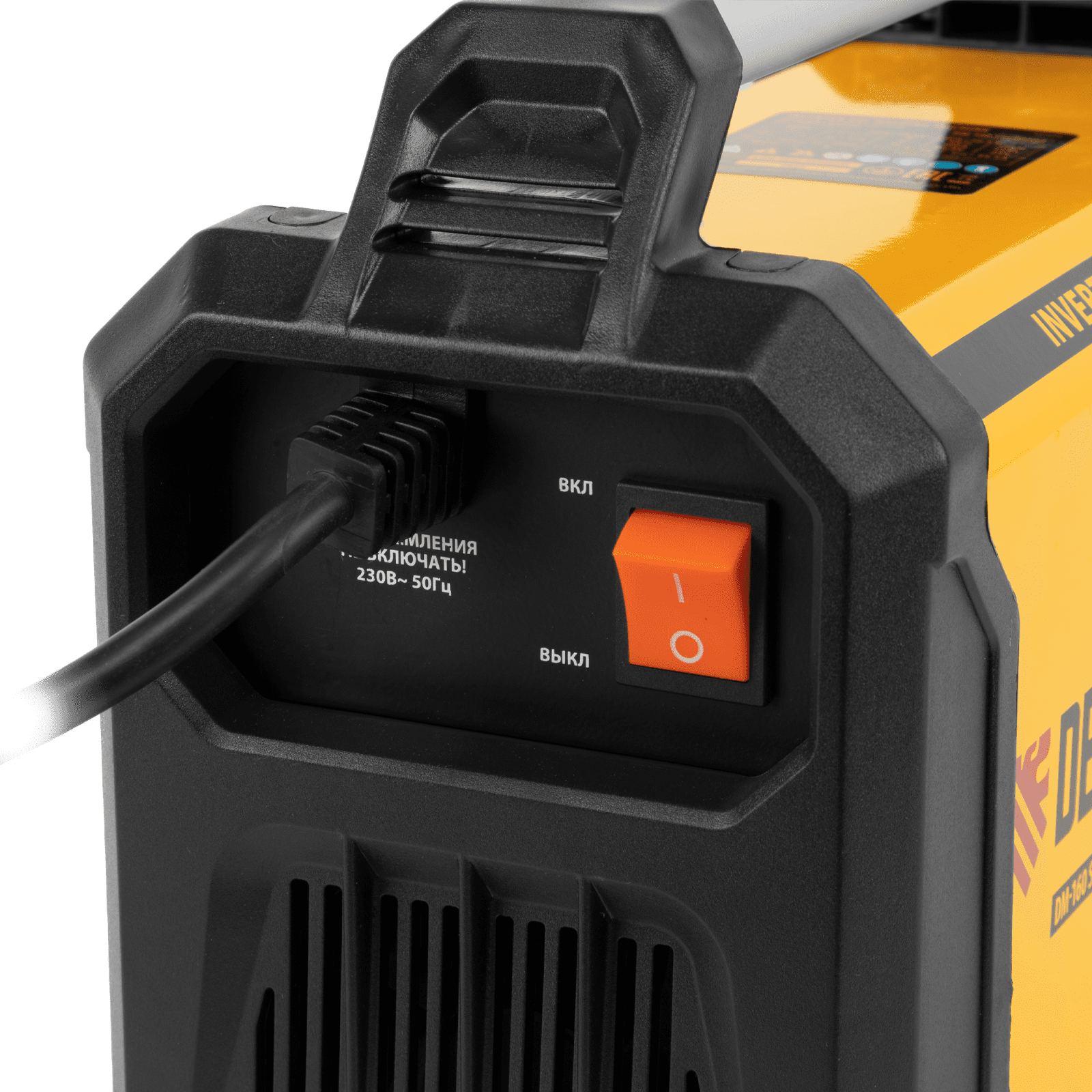 - Контроль рабочих параметров — на панели управления имеется цифровой дисплей, отображающий текущее значение сварочного тока.