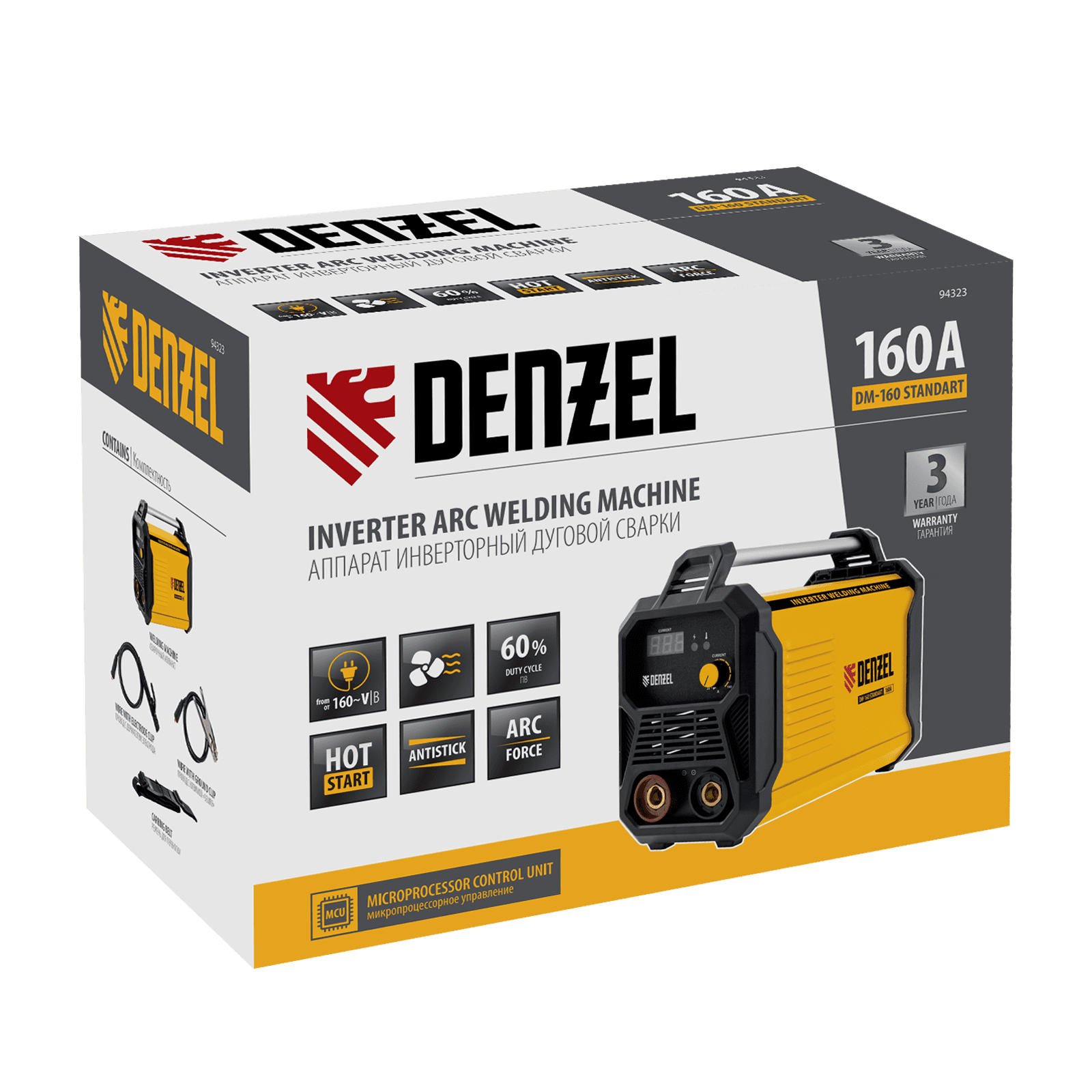 Инверторный аппарат дуговой сварки Denzel DM-160 Standart 94323 работает с максимальным сварочным током 160 А, имеет продолжительность включения 60% и позволяет сваривать конструкции из низкоуглеродистой стали электродами диаметром до 3,2 мм. Обеспечивает бесперебойную работу даже при нестабильном напряжении. Устройство пригодится сотрудникам коммунальных служб, также будет полезно в быту.