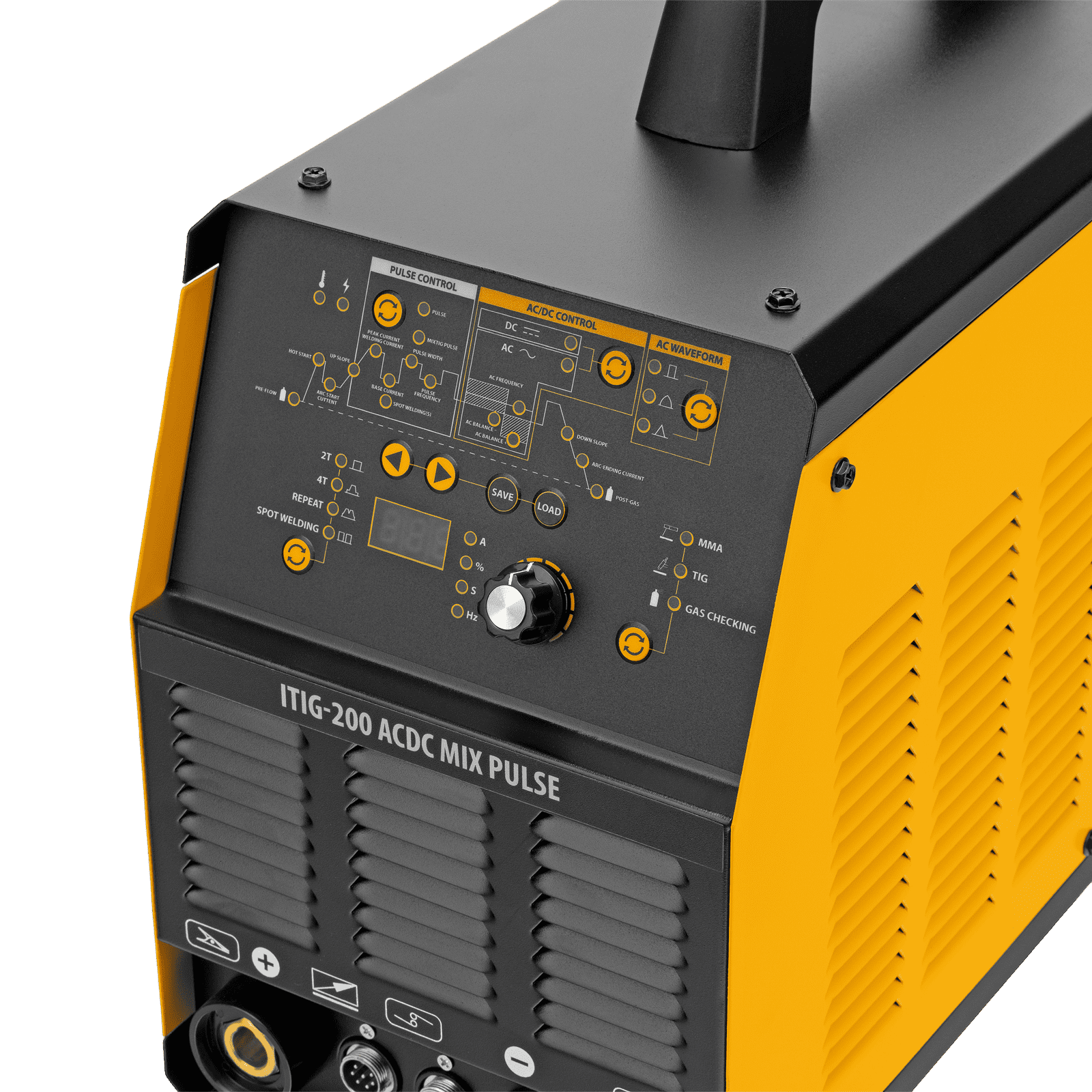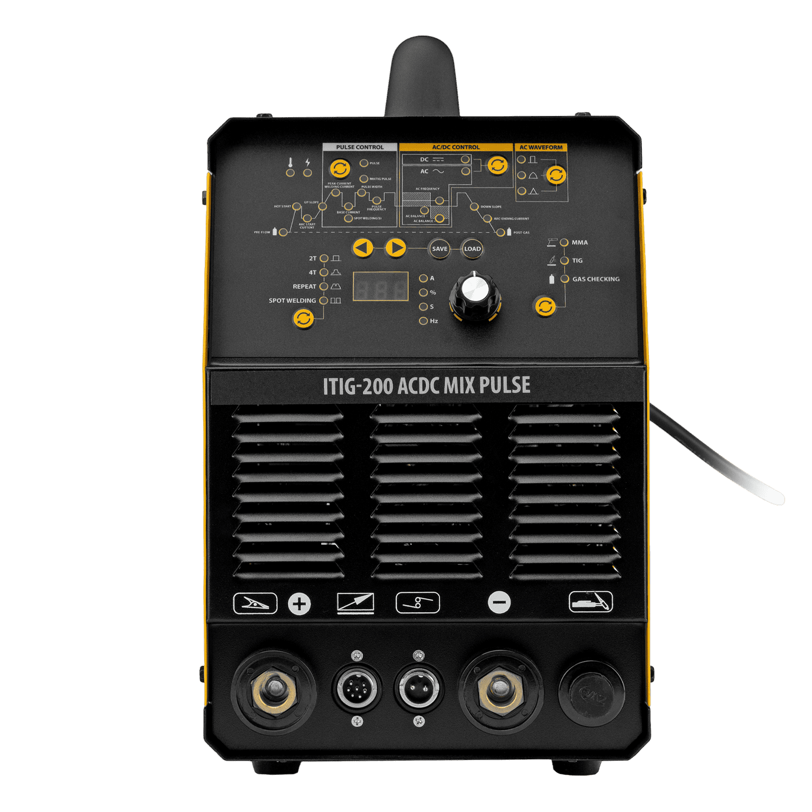 Основные функции;Выбор режима TIG-сварки: ;Repeat — быстрое возобновление сварки без начального этапа циклограммы. ;Spot Welding — сварка в течение коротких отрезков времени от 0,1 до 10 секунд, удобная для сварки тонких и чувствительных к нагреву материалов.;Pulse — позволяет лучше контролировать тепловложение, чтобы избежать перегрева и проплавления свариваемых деталей.;Режим MIXTIG для сварки на переменном токе АС — чередование фаз переменного и постоянного тока. В фазе переменного тока происходит разрушение оксидной пленки на поверхности заготовки, фаза постоянного тока обеспечивает глубокое проплавление детали.;Возможность настройки формы волны переменного тока в зависимости от конкретной задачи:;Прямоугольная волна — обеспечивает глубокое проплавление, быстрые скорости прохода и стабильную сварочную дугу.;Синусоидальная волна — классическая форма волны. Дуга мягкая, обладает эффектом широкого, но в то же время неглубокого расплавления основного металла.;Треугольная волна — обеспечивает эффективность пиковой токовой нагрузки при уменьшении общего подвода тепла, а также быстрое образование сварочной ванны. Ограничивает подводимую теплоту и уменьшает степень деформации сварочного шва. Хорошо подходит для сварки тонкого алюминия, также обеспечивает лучшую очистку при анодном окислении.;Гибкая настройка всех параметров автоматизированного цикла сварки в широком диапазоне значений: