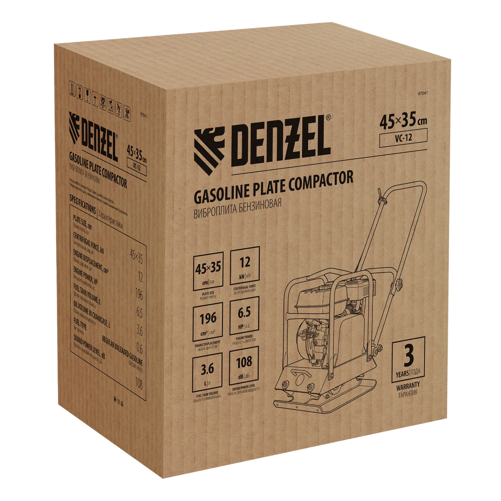 Виброплита бензиновая Denzel VC-12 97041 с основанием размером 45 х 35 см, оснащена двигателем объемом 196 см3 и воздействует на поверхность с центробежной силой 12 кН. Применяется для уплотнения грунта, песка, щебня, гравия, а также укладки тротуарной плитки. Ровная рабочая поверхность обеспечивает высокое качество выполняемых работ. Виброплита может использоваться на строительной площадке, при оформлении ландшафта на загородном участке, в процессе обустройства детских площадок и т.д.