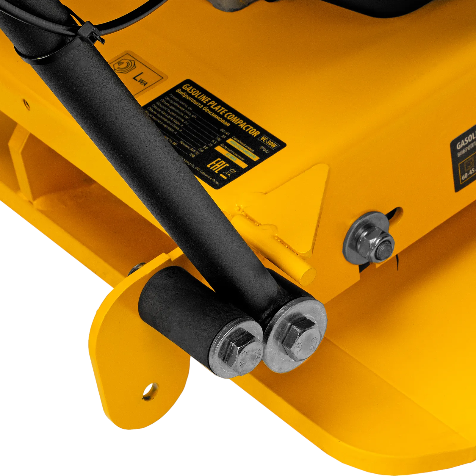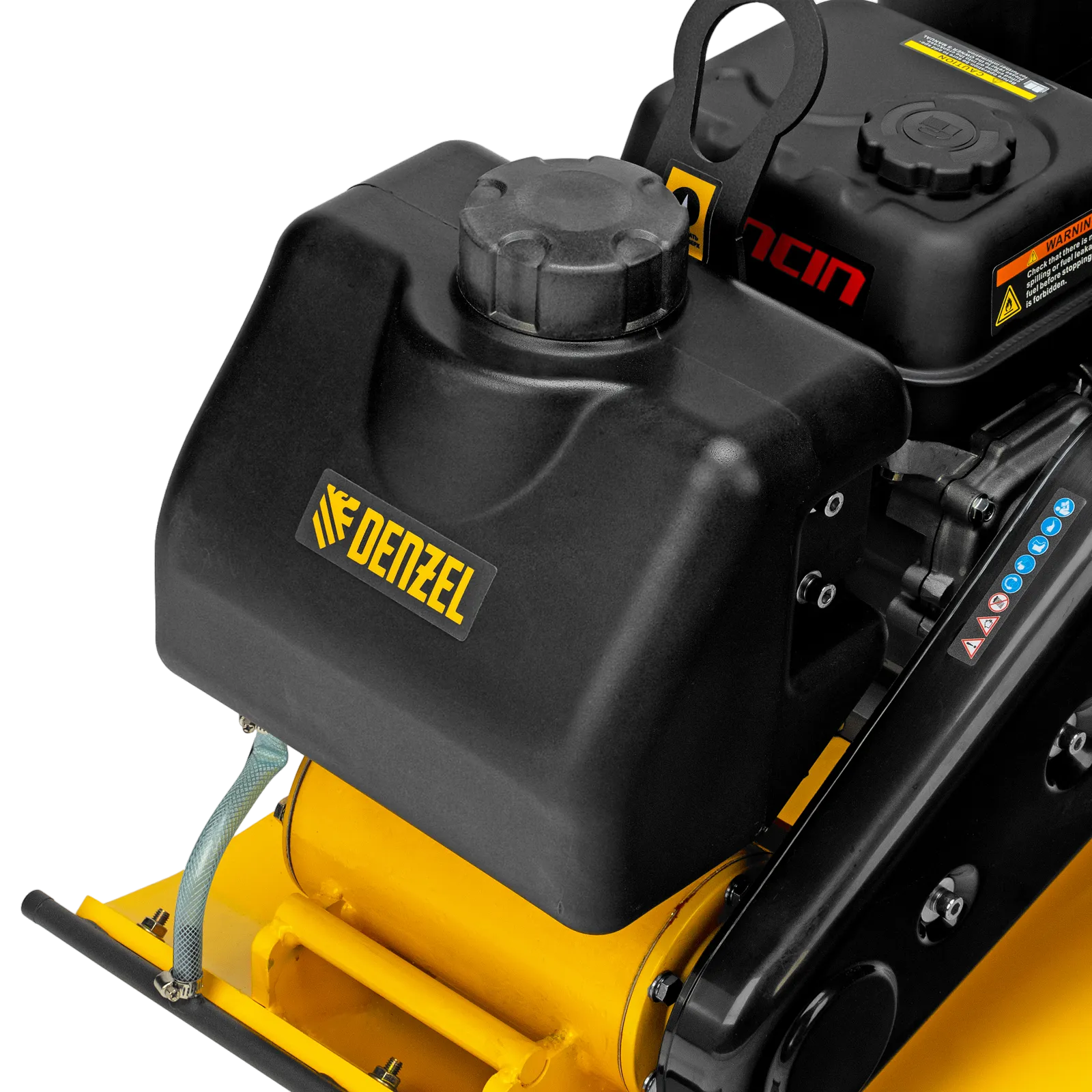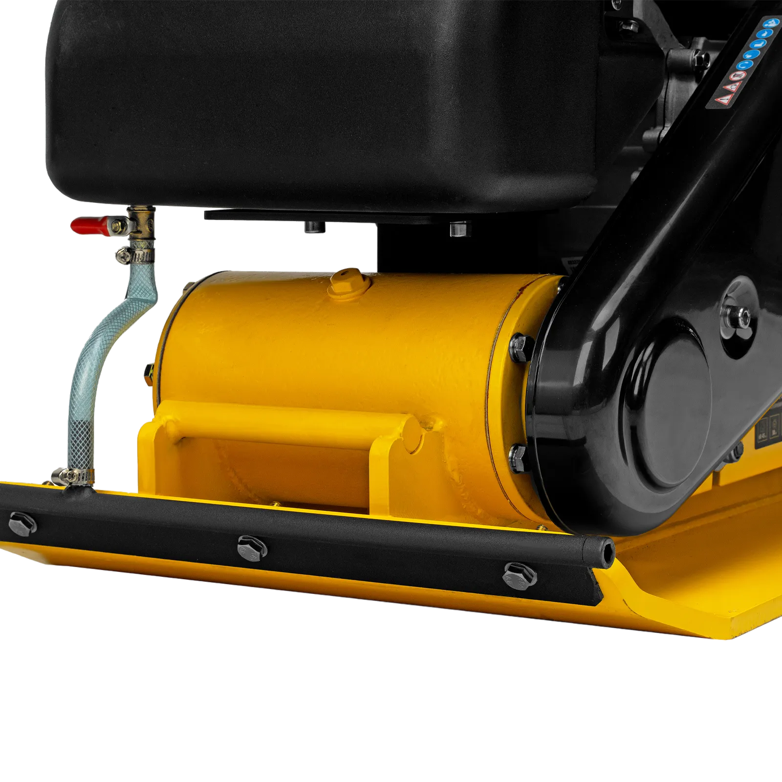 - Удобная работа с горячим асфальтом и липкими смесями — на виброплите установлен бак для воды, орошение уплотняемого покрытия предотвращает его налипание на основание плиты.